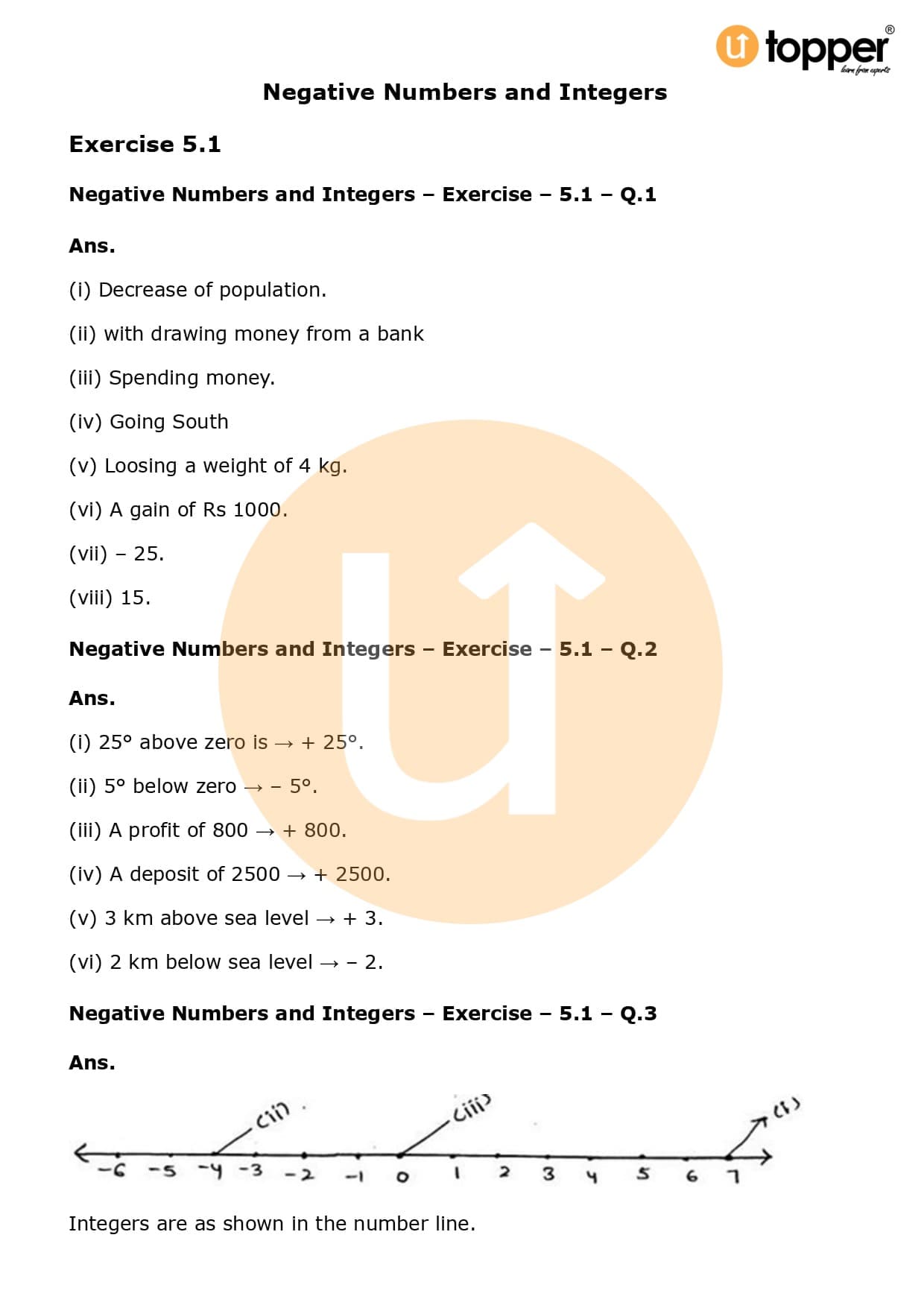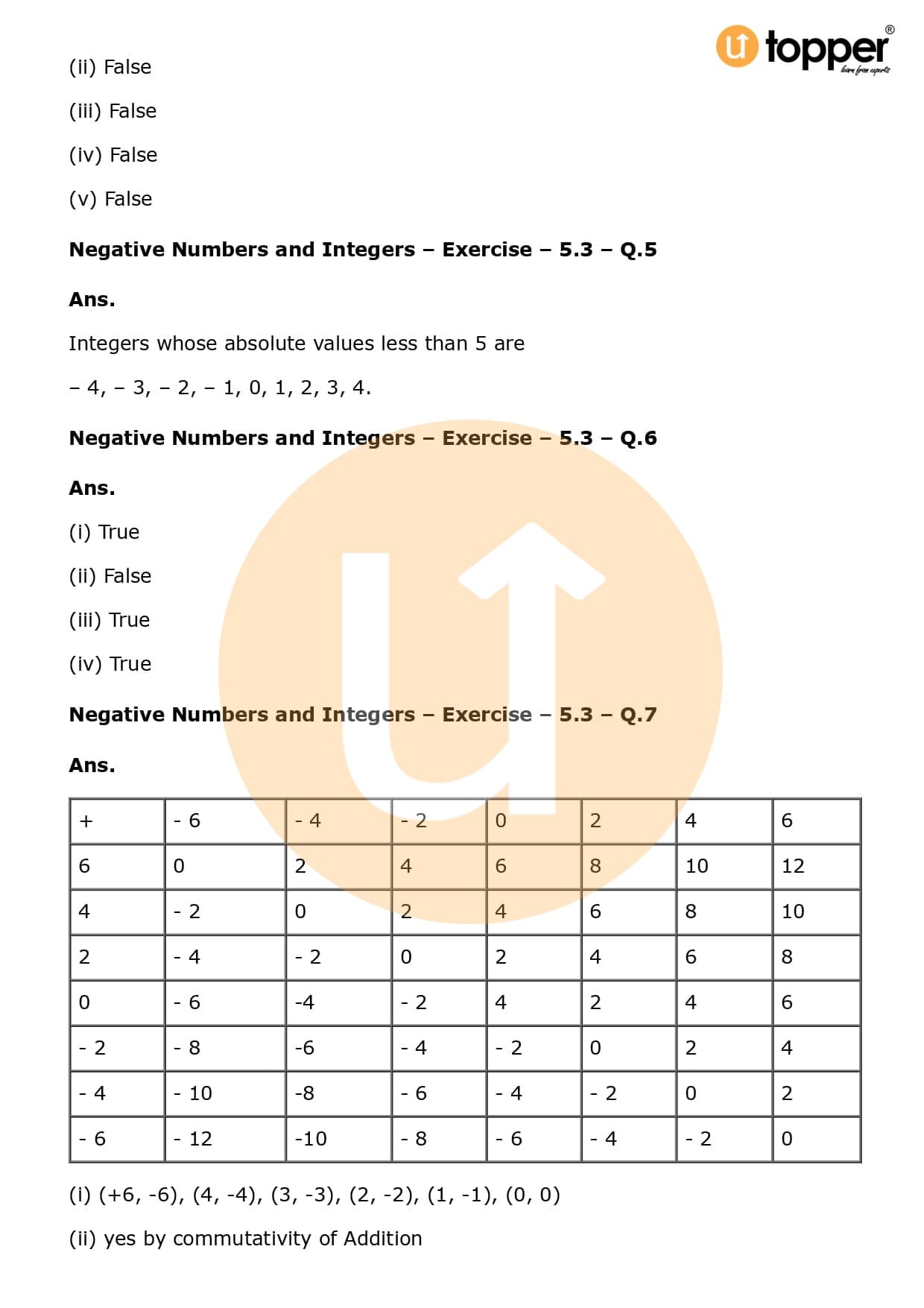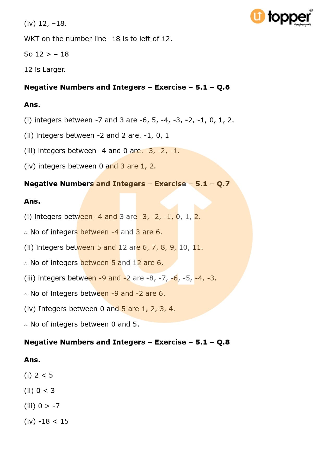 RD Sharma Class 6 Maths Chapter 5 Negative Numbers and Integers Solutions PDF Download