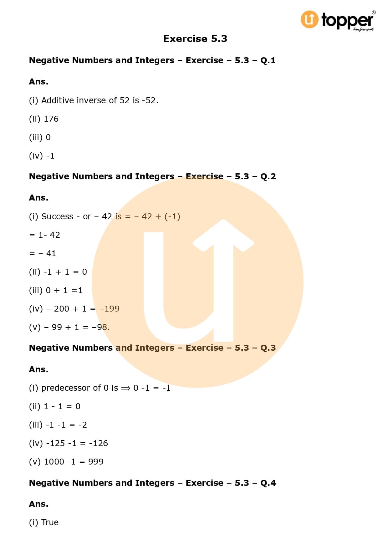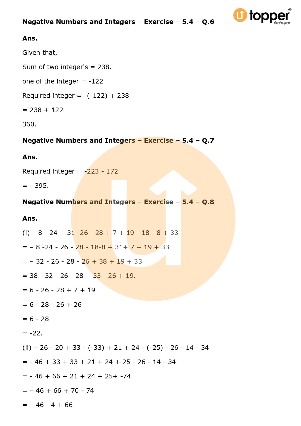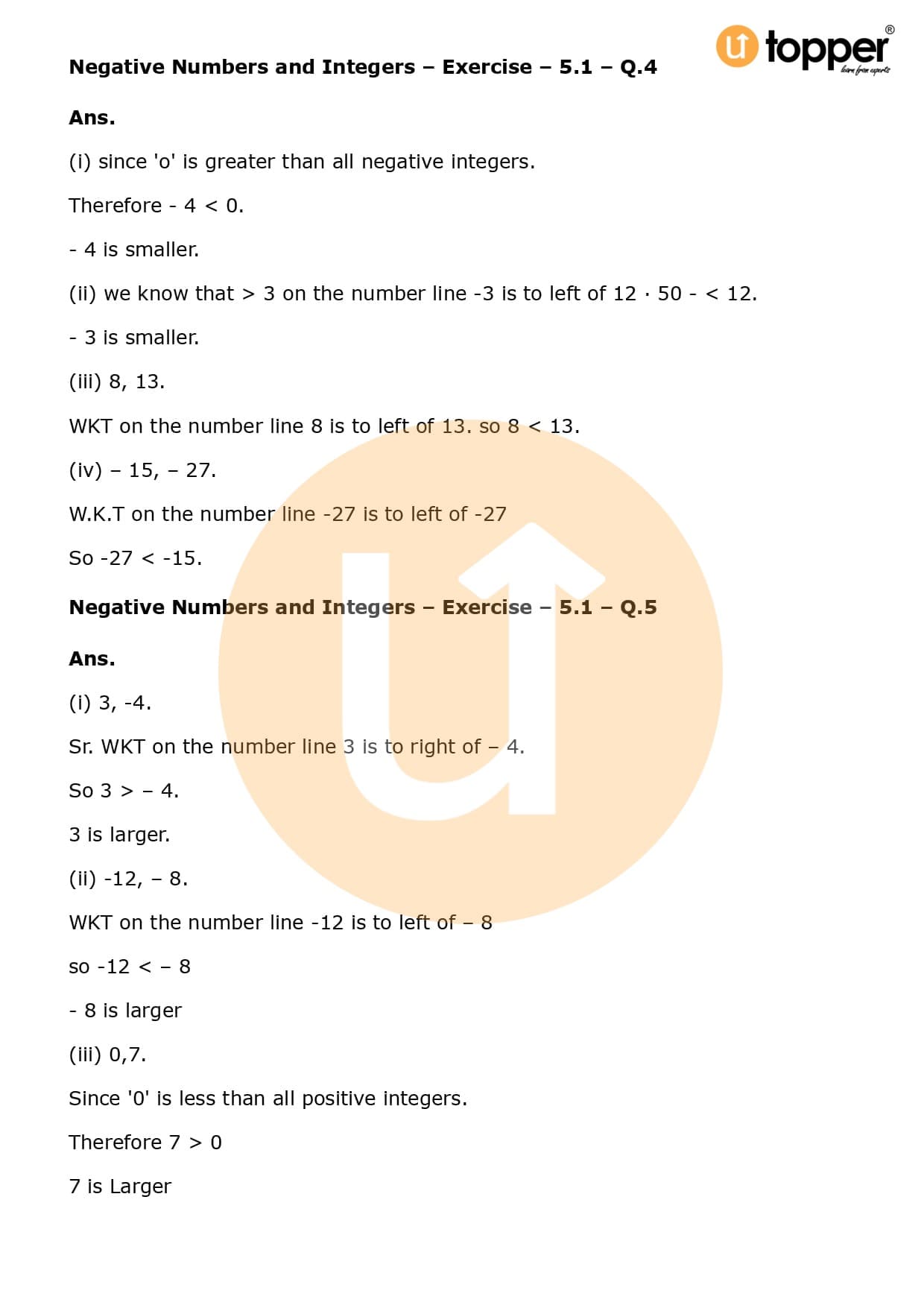 RD Sharma Class 6 Maths Chapter 5 Negative Numbers and Integers Solutions PDF Download