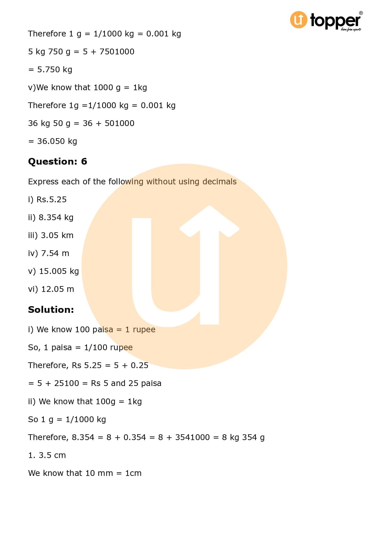 RD Sharma Class 6 Maths Chapter 7 Decimals Solutions PDF Download