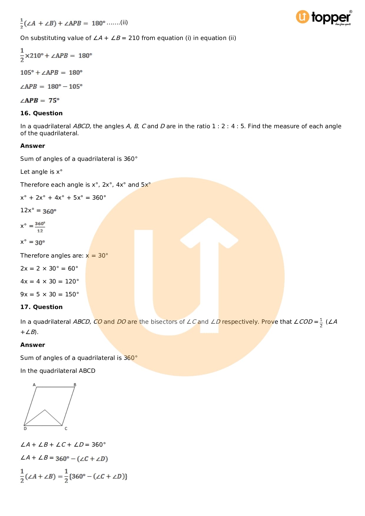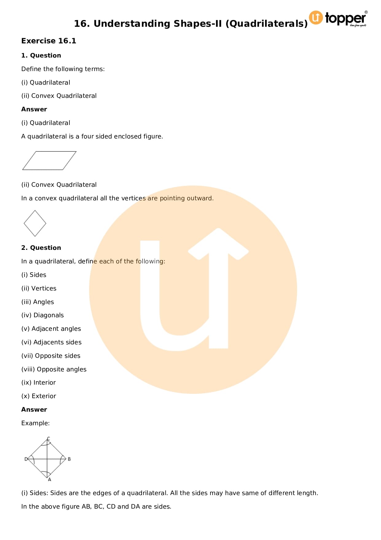 Download the latest version of RD Sharma Solutions for Class 8 Maths Chapter 16 Understanding Shapes II (Quadrilaterals) PDF at Utopper. It provides step by step Solution PDF. You can download RD Sharma Maths Solutions with a free PDF download option, which includes chapter wise solutions. All the questions in RD Sharma Solutions have been solved and explained by expert mathematics teachers as per the CBSE Board guidelines. By studying these Maths Solutions, you can easily get good marks in the CBSE board exams.