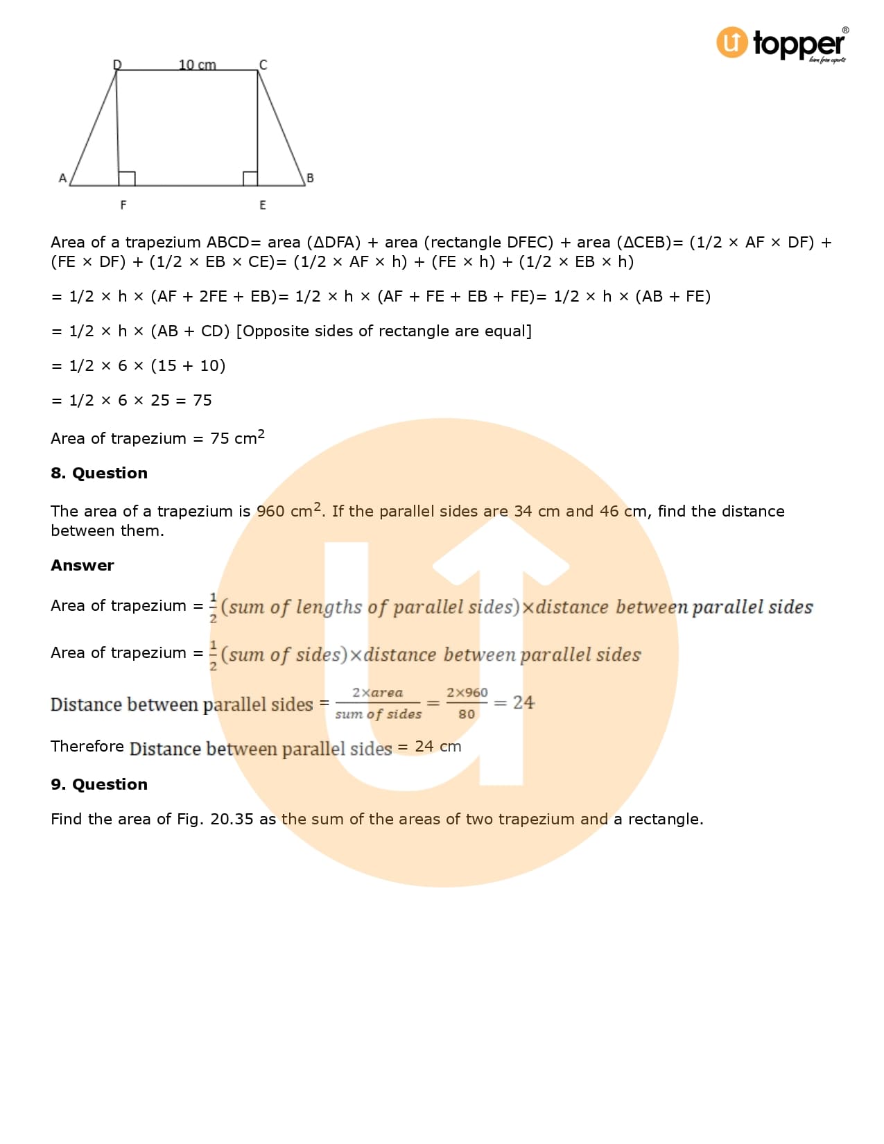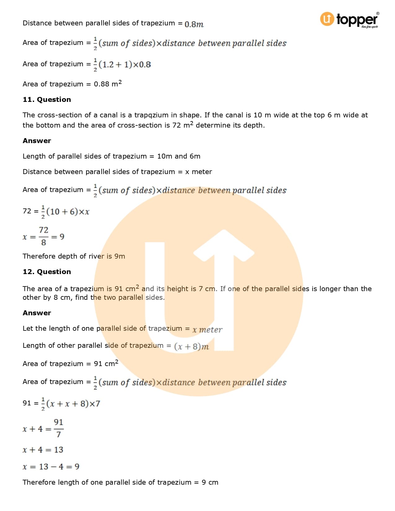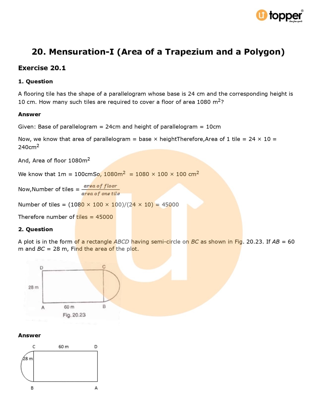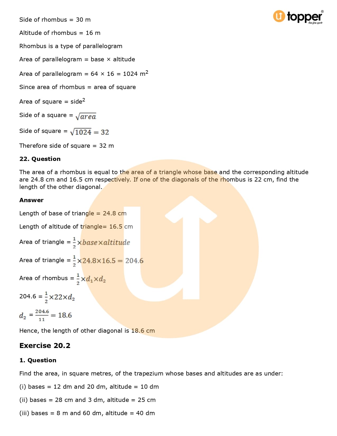 Download the latest version of RD Sharma Solutions for Class 8 Maths Chapter 20 Mensuration I (Area of a Trapezium and a Polygon) PDF at Utopper. It provides step by step Solution PDF. You can download RD Sharma Maths Solutions with a free PDF download option, which includes chapter wise solutions. All the questions in RD Sharma Solutions have been solved and explained by expert mathematics teachers as per the CBSE Board guidelines. By studying these Maths Solutions, you can easily get good marks in the CBSE board exams.