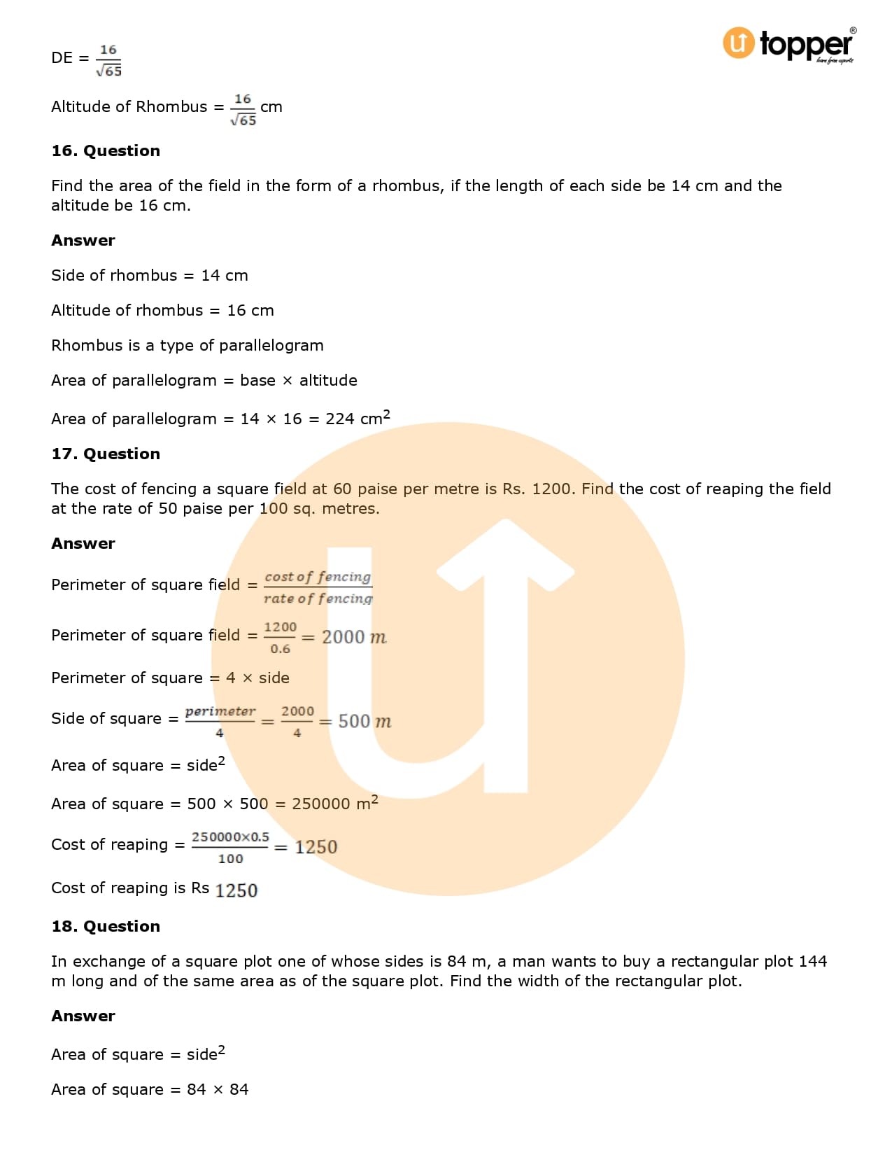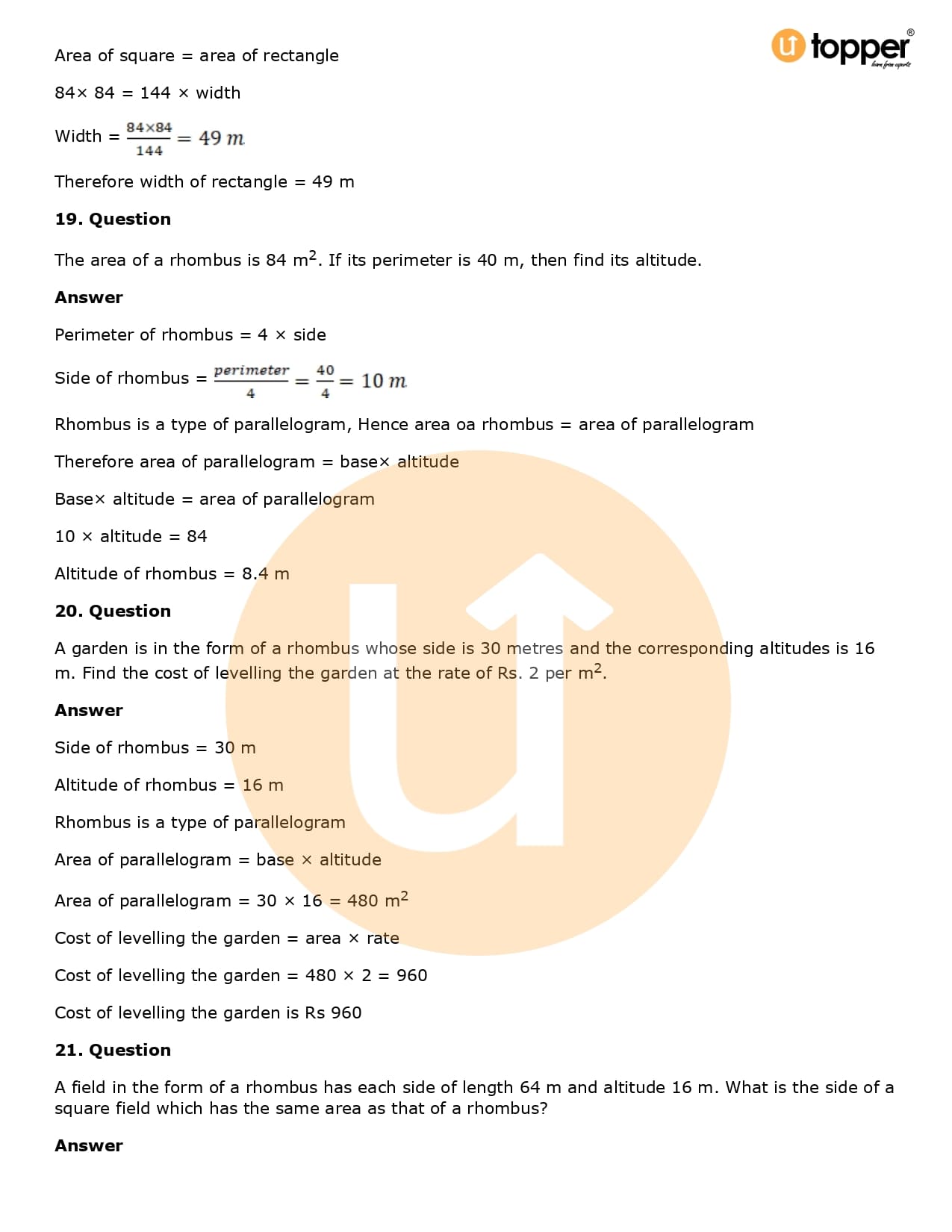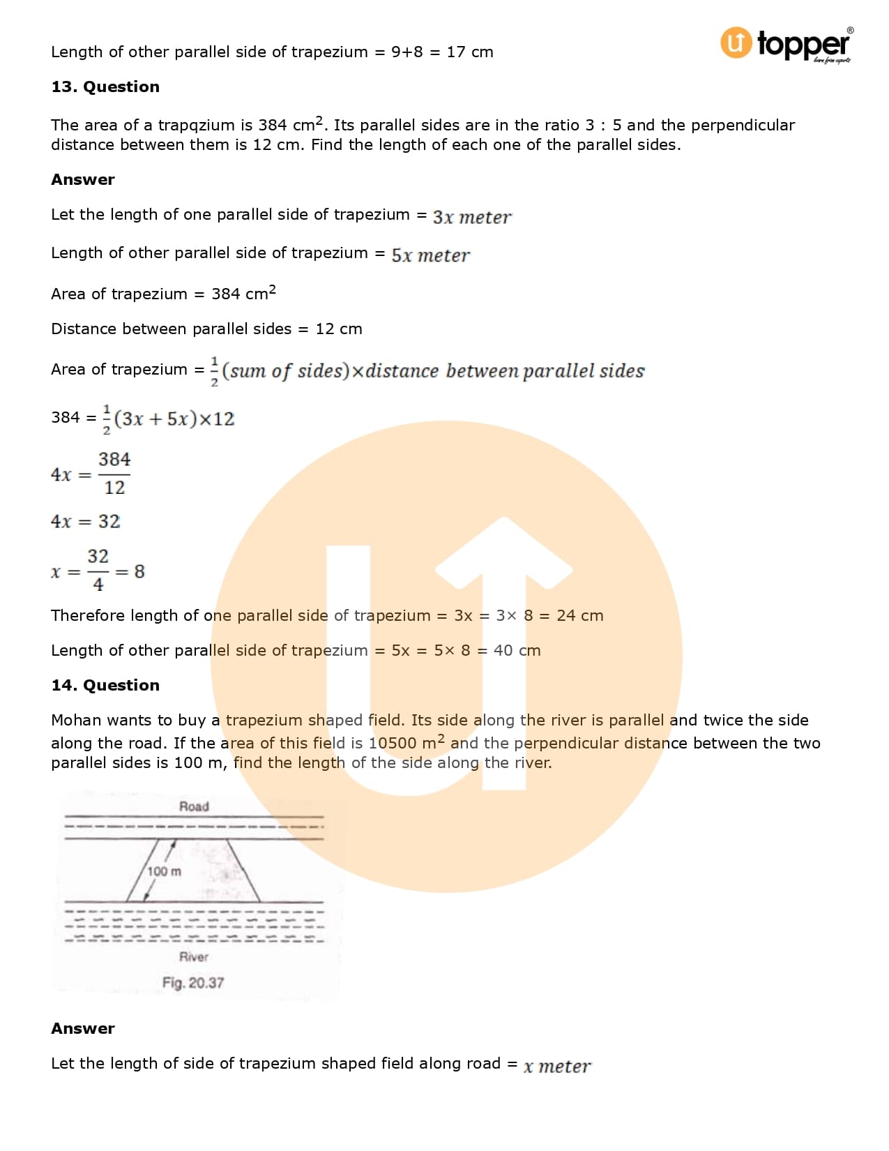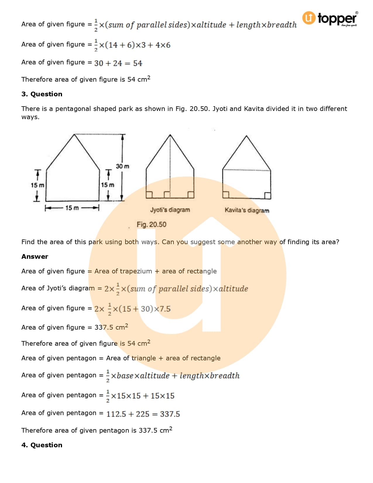 Download the latest version of RD Sharma Solutions for Class 8 Maths Chapter 20 Mensuration I (Area of a Trapezium and a Polygon) PDF at Utopper. It provides step by step Solution PDF. You can download RD Sharma Maths Solutions with a free PDF download option, which includes chapter wise solutions. All the questions in RD Sharma Solutions have been solved and explained by expert mathematics teachers as per the CBSE Board guidelines. By studying these Maths Solutions, you can easily get good marks in the CBSE board exams.