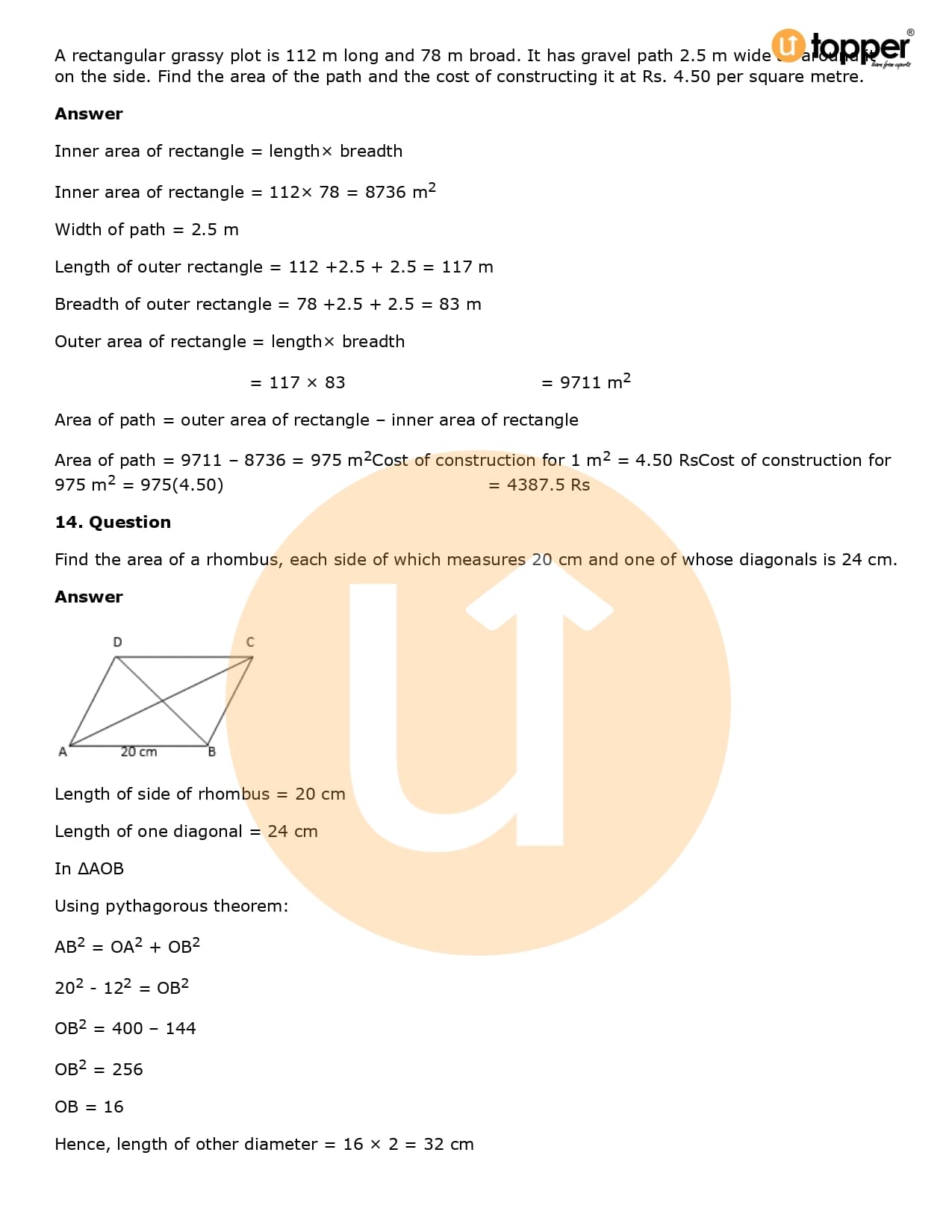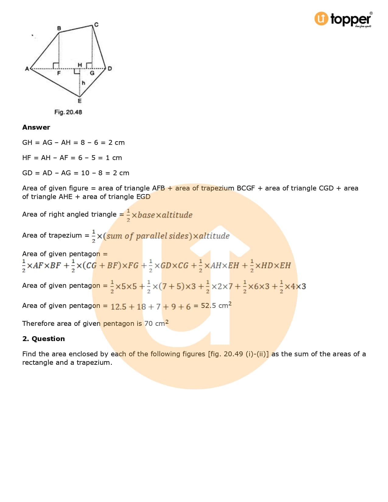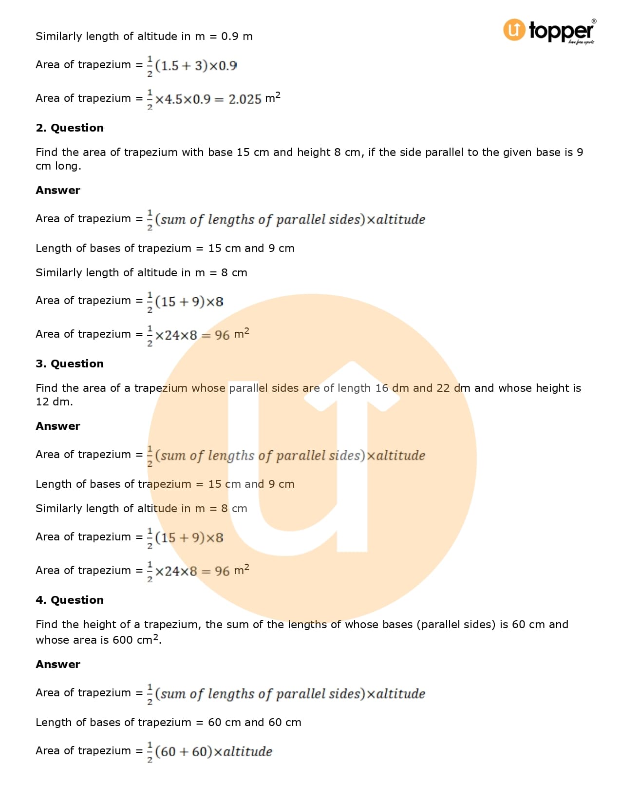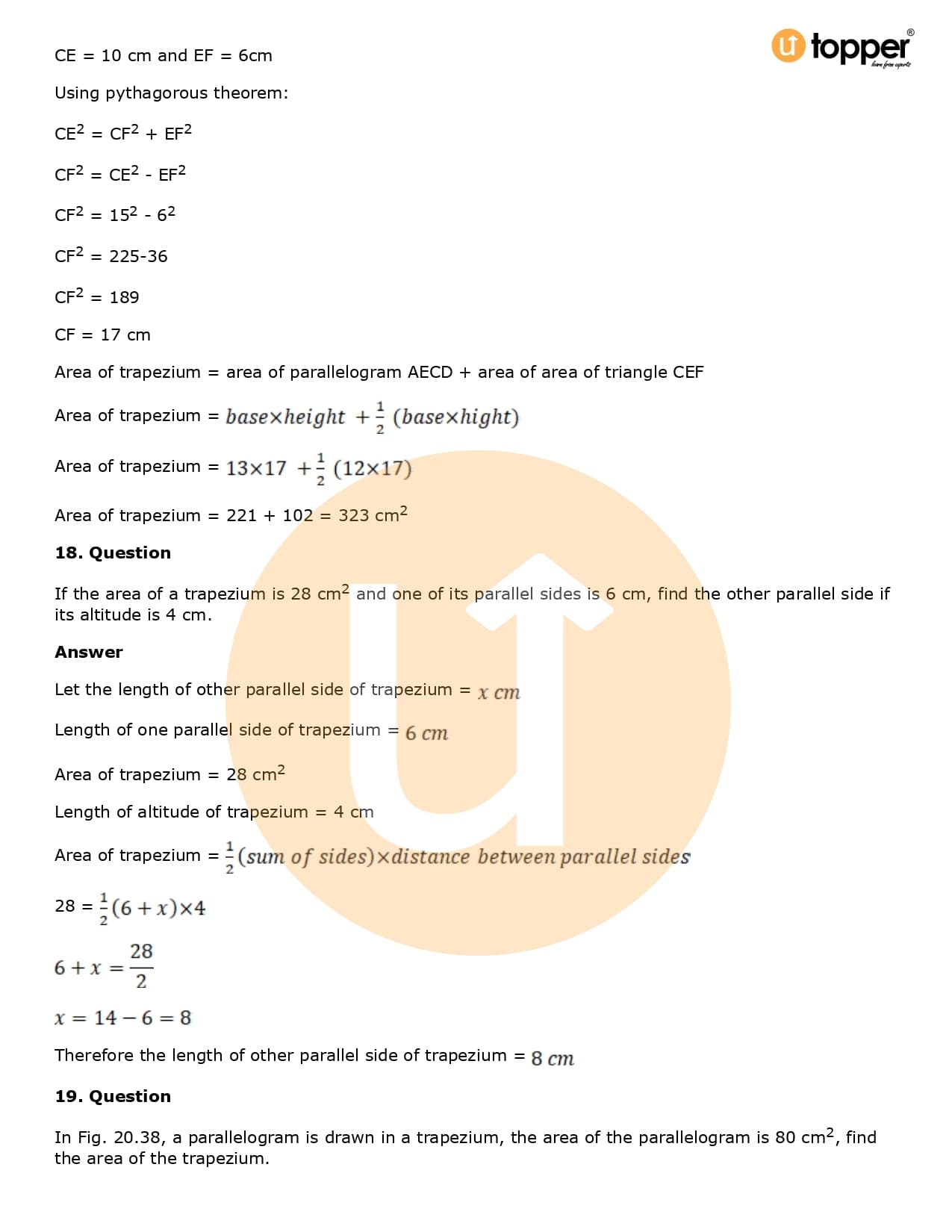 Download the latest version of RD Sharma Solutions for Class 8 Maths Chapter 20 Mensuration I (Area of a Trapezium and a Polygon) PDF at Utopper. It provides step by step Solution PDF. You can download RD Sharma Maths Solutions with a free PDF download option, which includes chapter wise solutions. All the questions in RD Sharma Solutions have been solved and explained by expert mathematics teachers as per the CBSE Board guidelines. By studying these Maths Solutions, you can easily get good marks in the CBSE board exams.