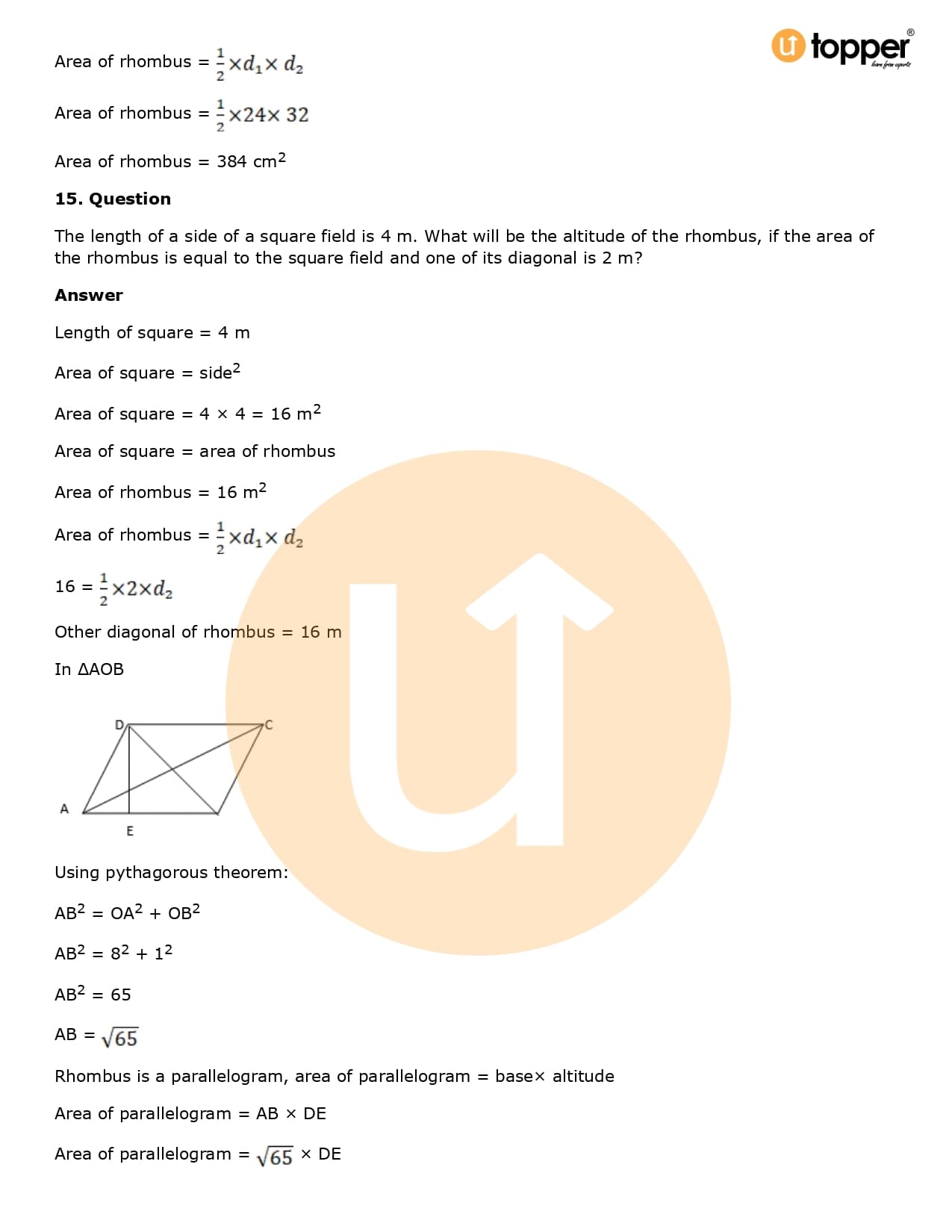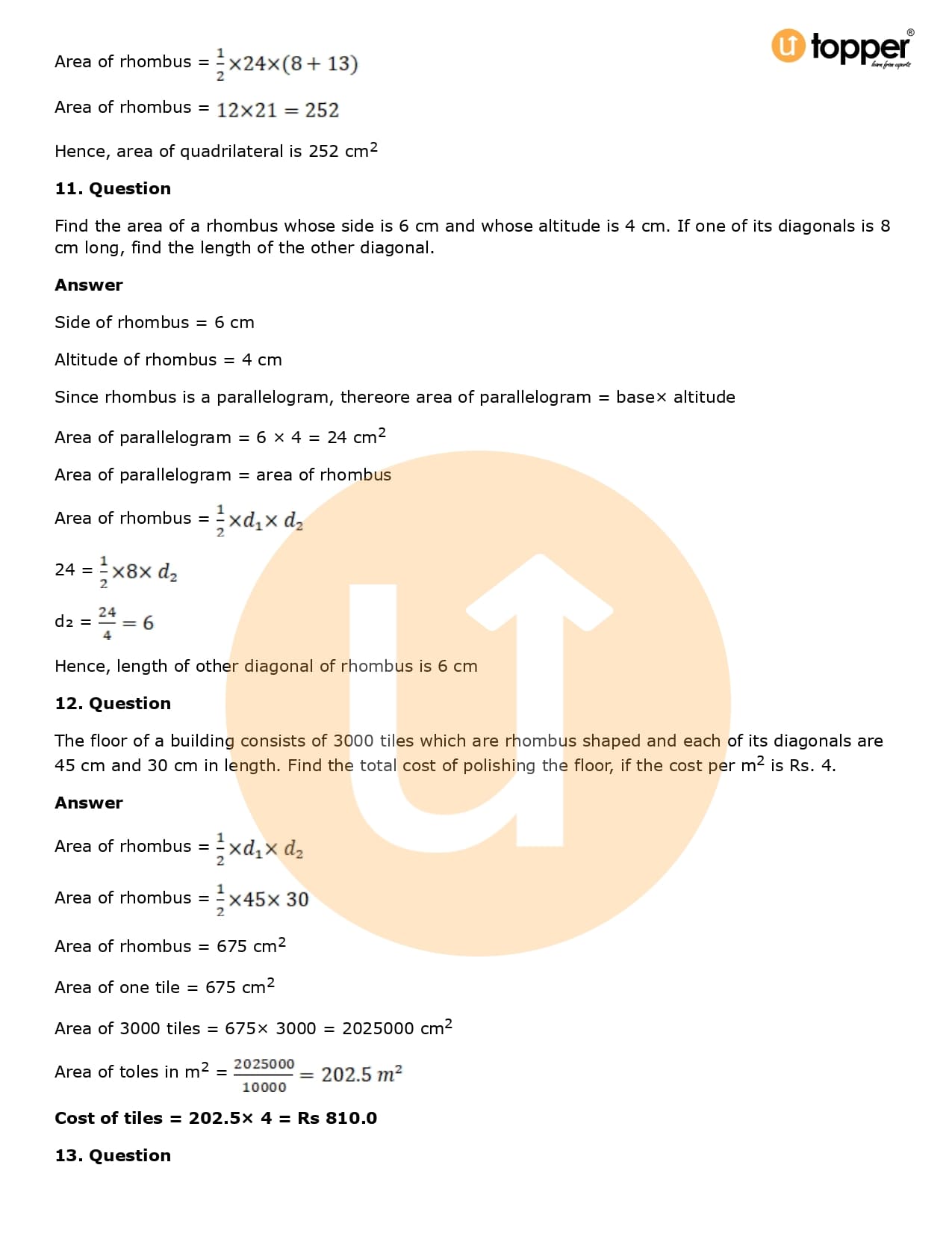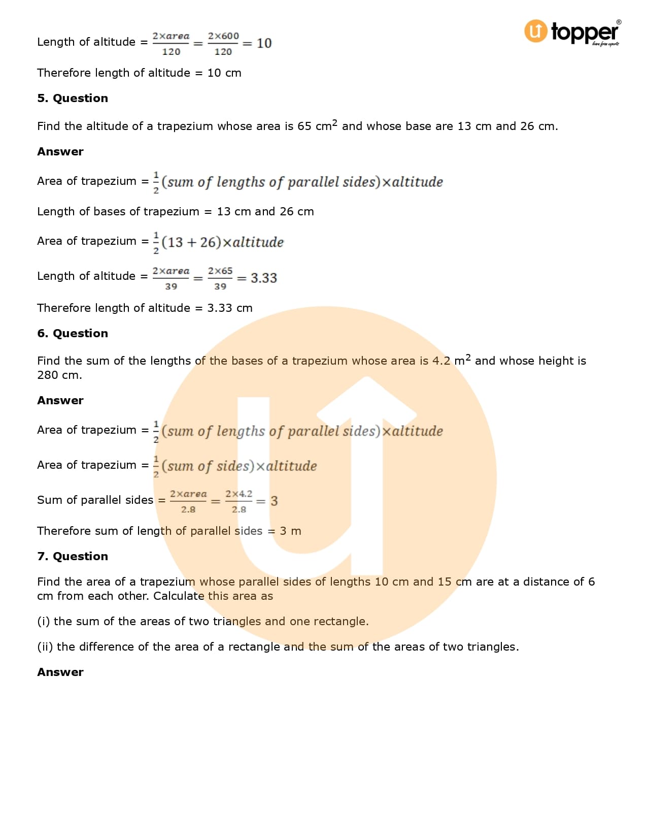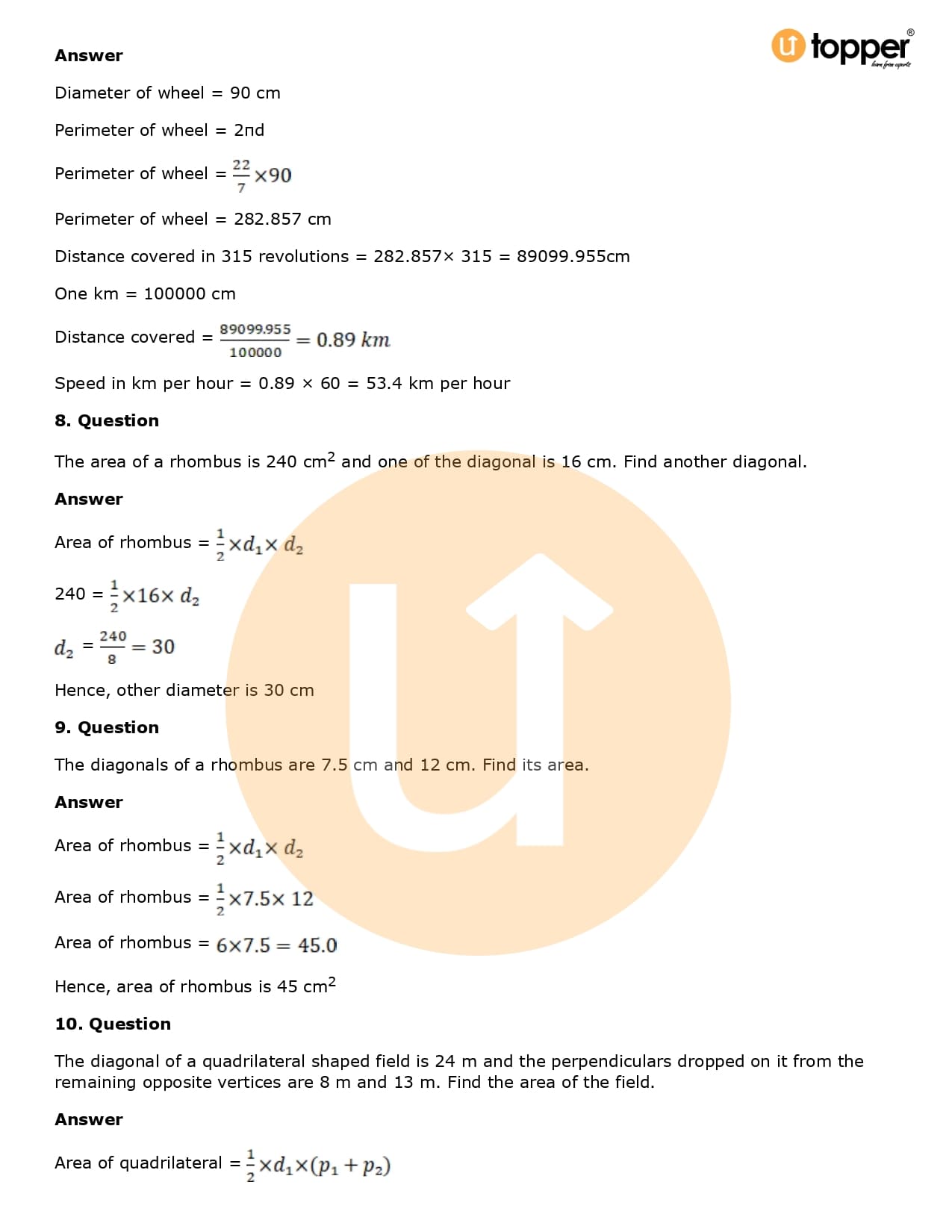 Download the latest version of RD Sharma Solutions for Class 8 Maths Chapter 20 Mensuration I (Area of a Trapezium and a Polygon) PDF at Utopper. It provides step by step Solution PDF. You can download RD Sharma Maths Solutions with a free PDF download option, which includes chapter wise solutions. All the questions in RD Sharma Solutions have been solved and explained by expert mathematics teachers as per the CBSE Board guidelines. By studying these Maths Solutions, you can easily get good marks in the CBSE board exams.