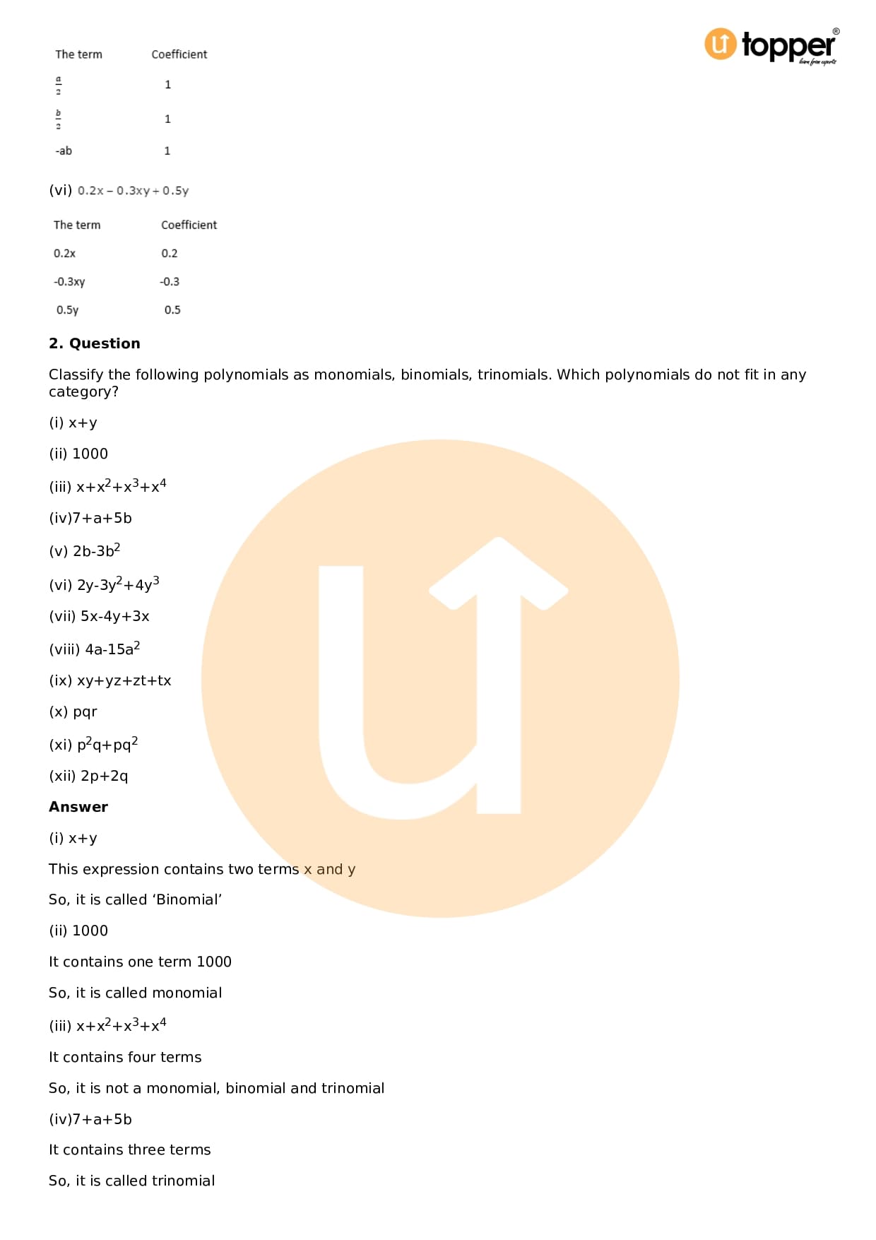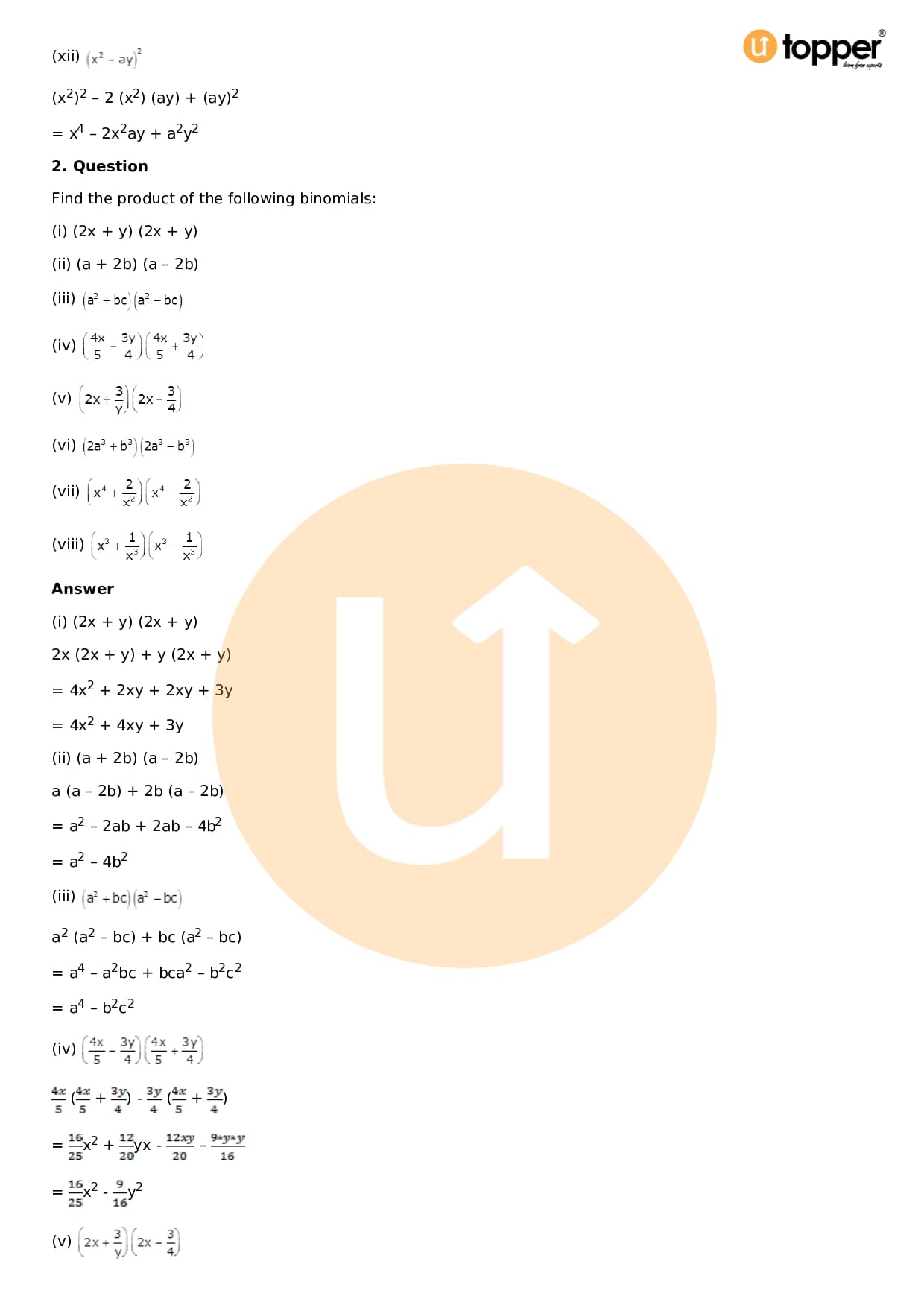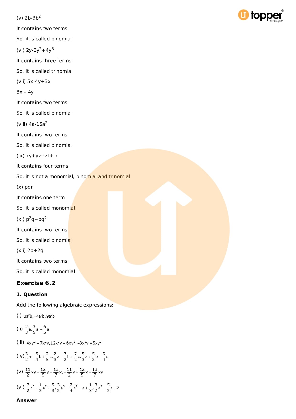 RD Sharma Class 8 Maths Chapter 6 Algebraic Expressions and Identities Solutions PDF Download