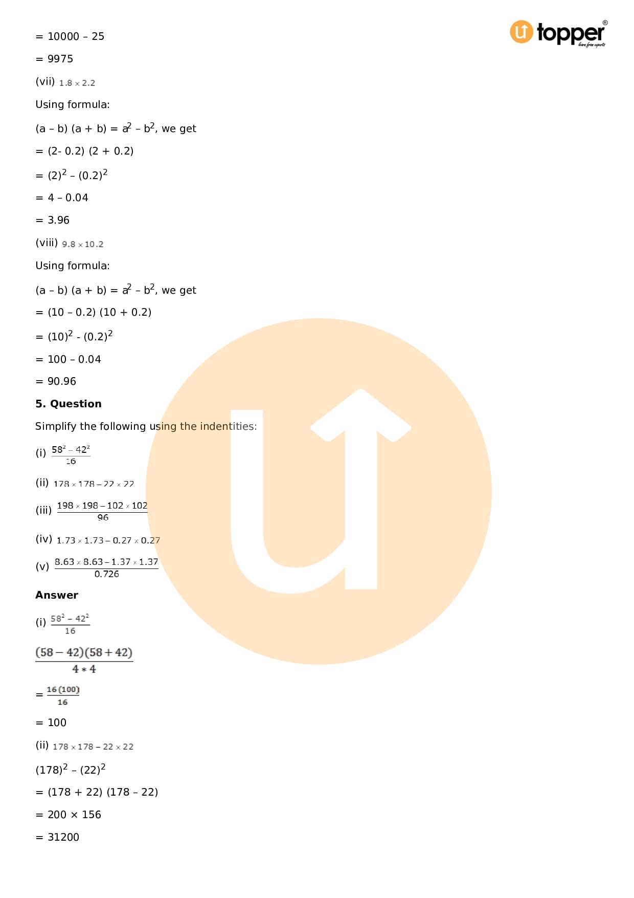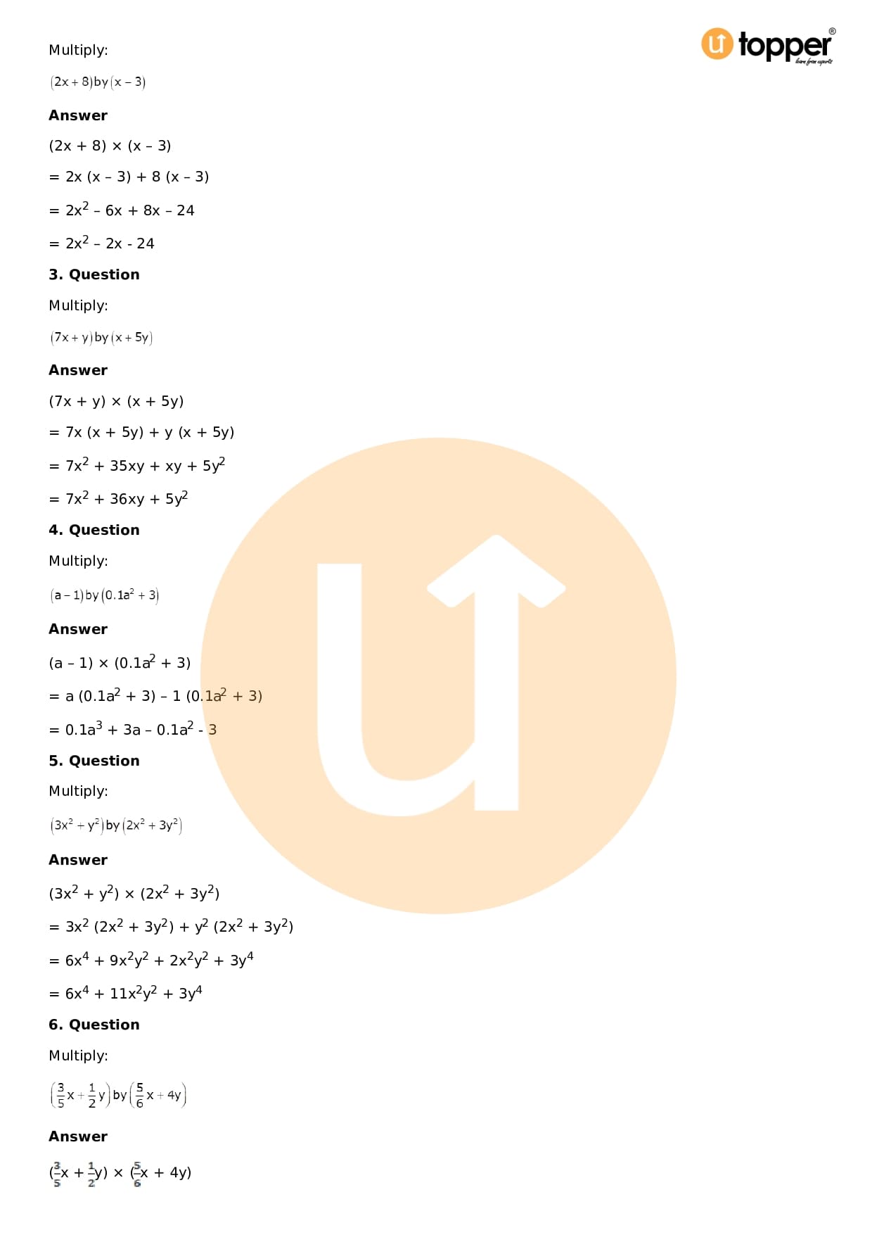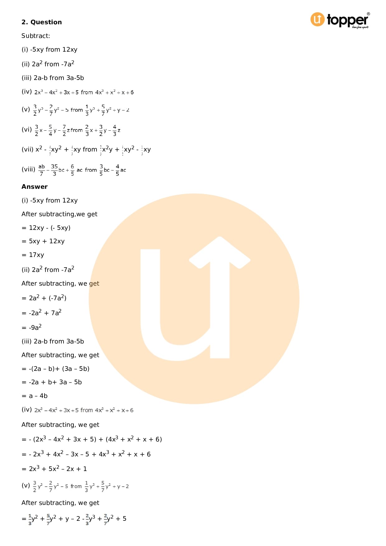 Download the latest version of RD Sharma Solutions for Class 8 Maths Chapter 6 Algebraic Expressions and Identities PDF at Utopper. It provides step by step Solution PDF. You can download RD Sharma Maths Solutions with a free PDF download option, which includes chapter wise solutions. All the questions in RD Sharma Solutions have been solved and explained by expert mathematics teachers as per the CBSE Board guidelines. By studying these Maths Solutions, you can easily get good marks in the CBSE board exams.