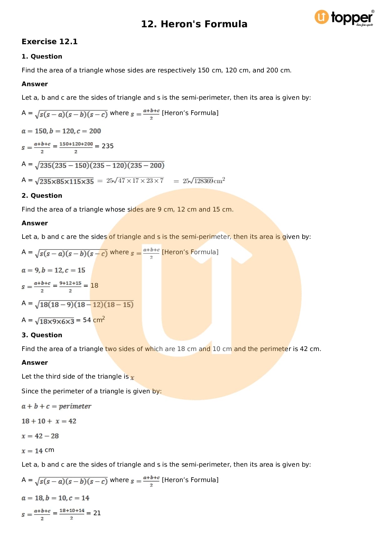 • Chapter 12 – Heron’s Formula
