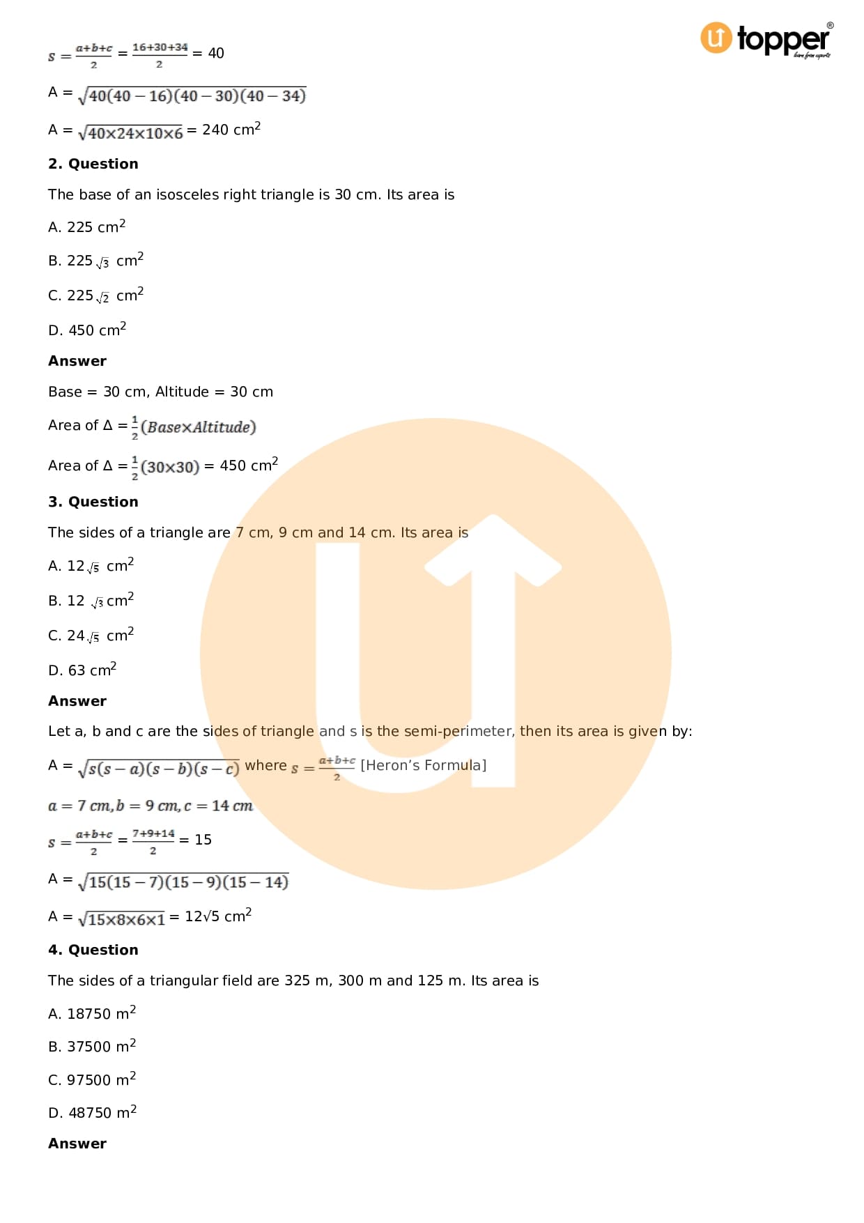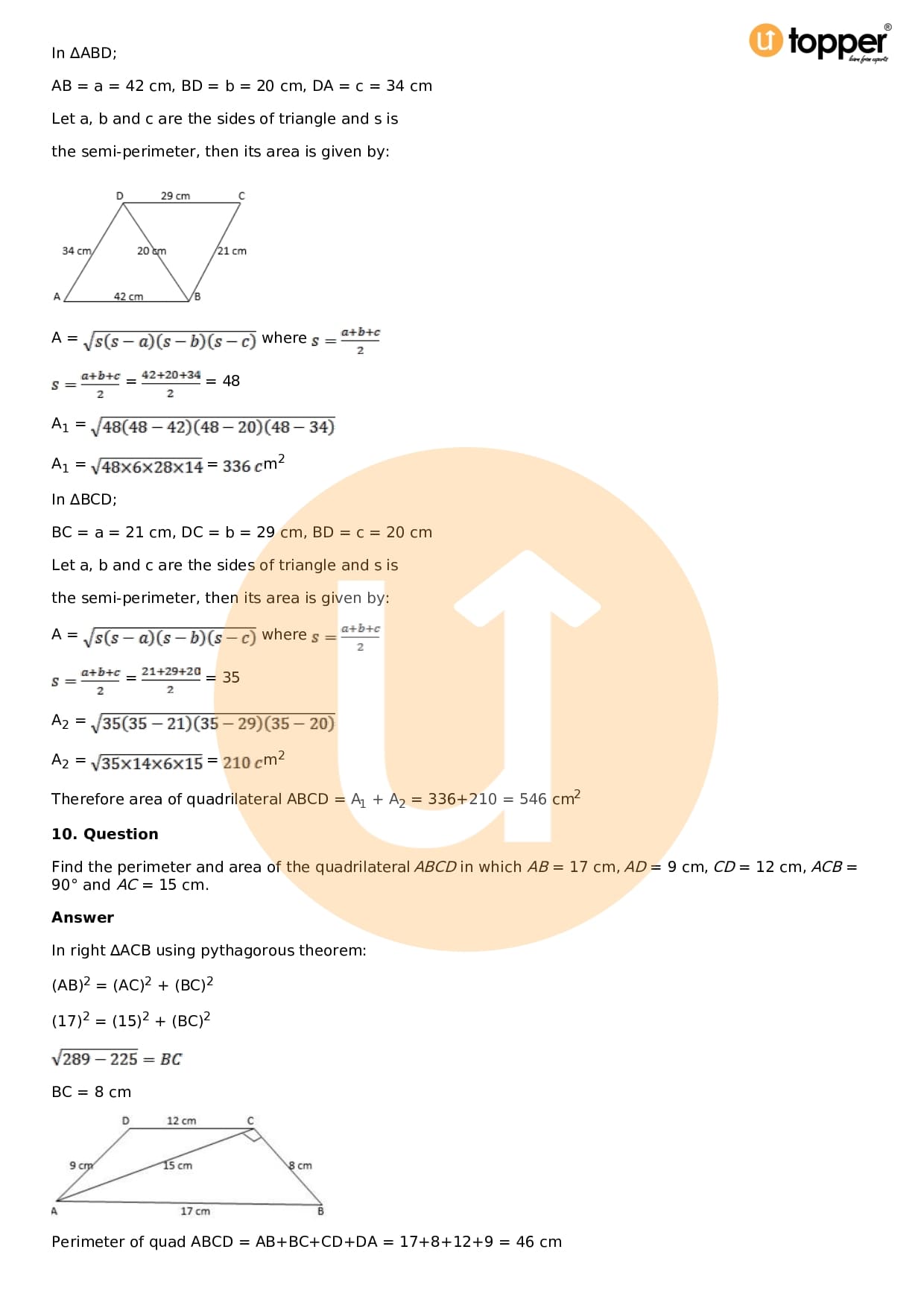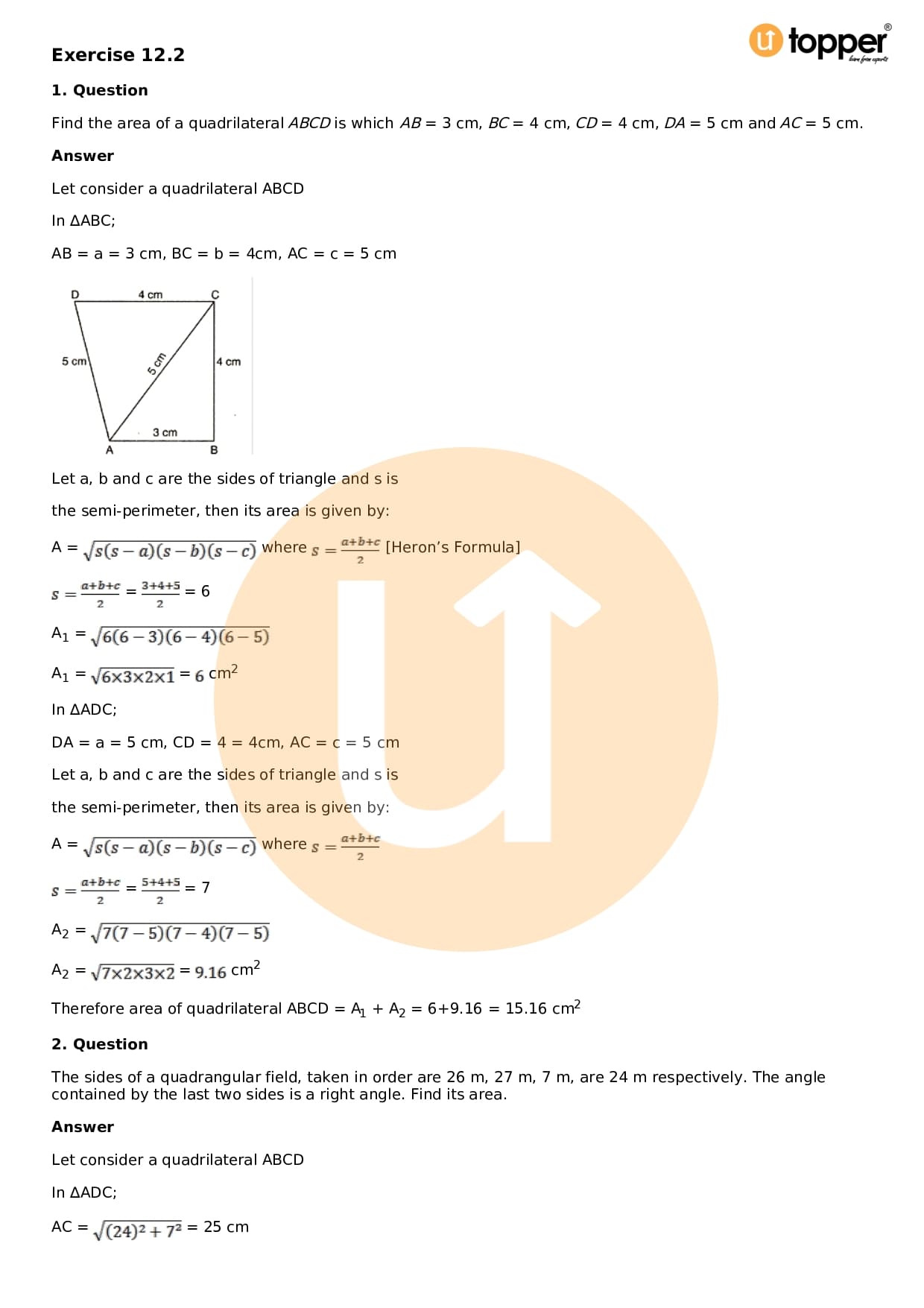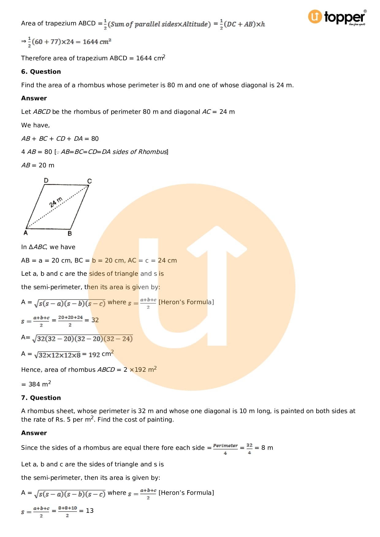 Download the latest version of RD Sharma Solutions for Class 9 Maths Chapter 12 Heron’s Formula PDF at Utopper. It provides step by step Solution PDF. You can download RD Sharma Maths Solutions with a free PDF download option, which includes chapter wise solutions. All the questions in RD Sharma Solutions have been solved and explained by expert mathematics teachers as per the CBSE Board guidelines. By studying these Maths Solutions, you can easily get good marks in the CBSE board exams.