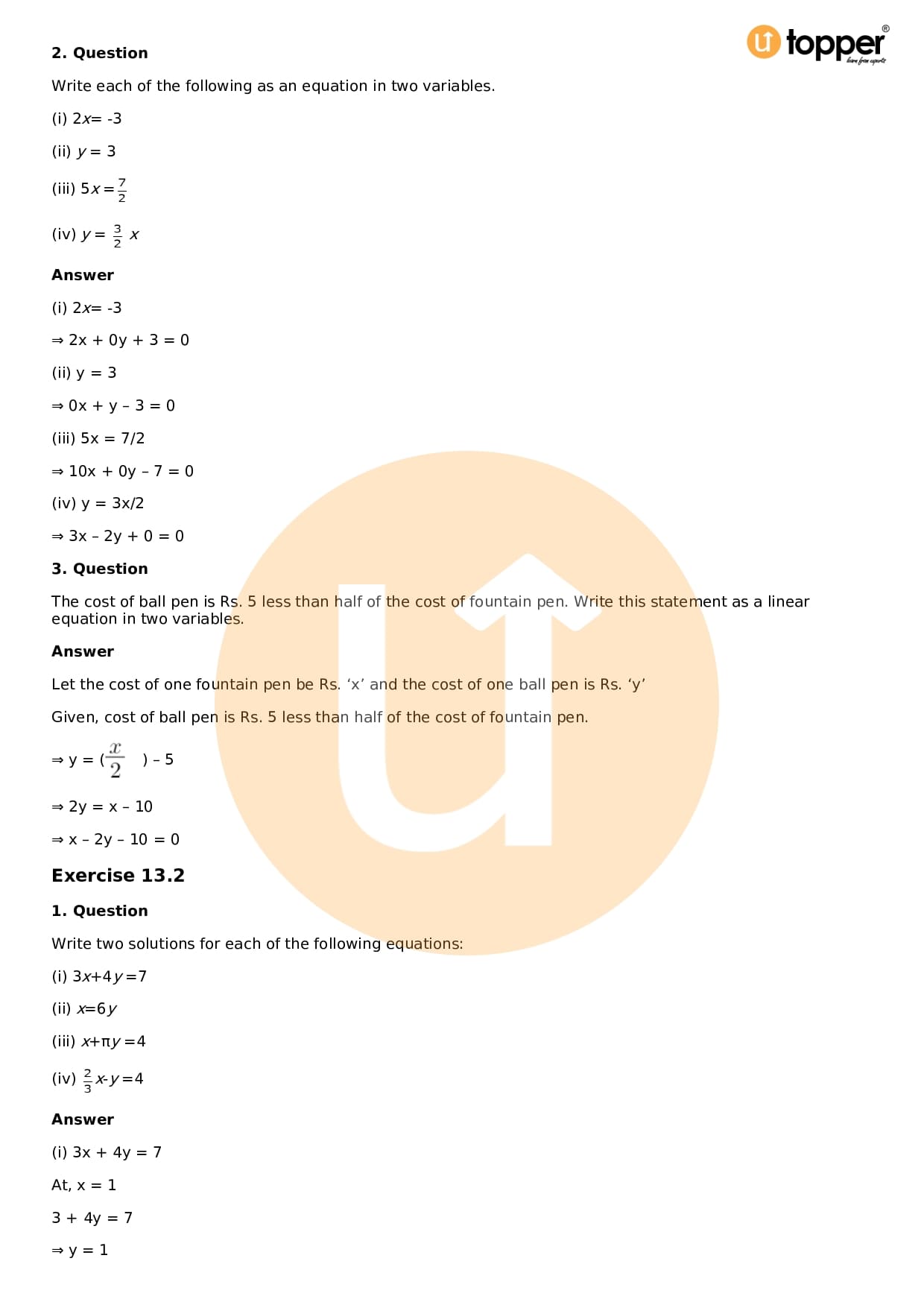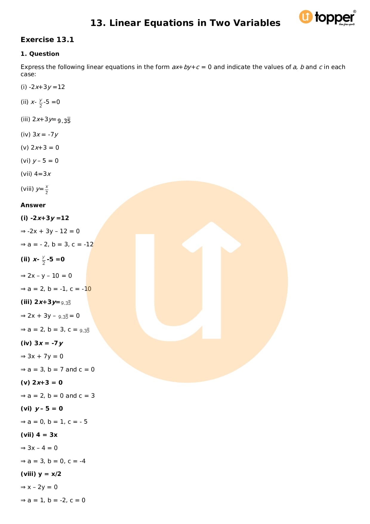 - Chapter 13 – Linear Equations in Two Variables
