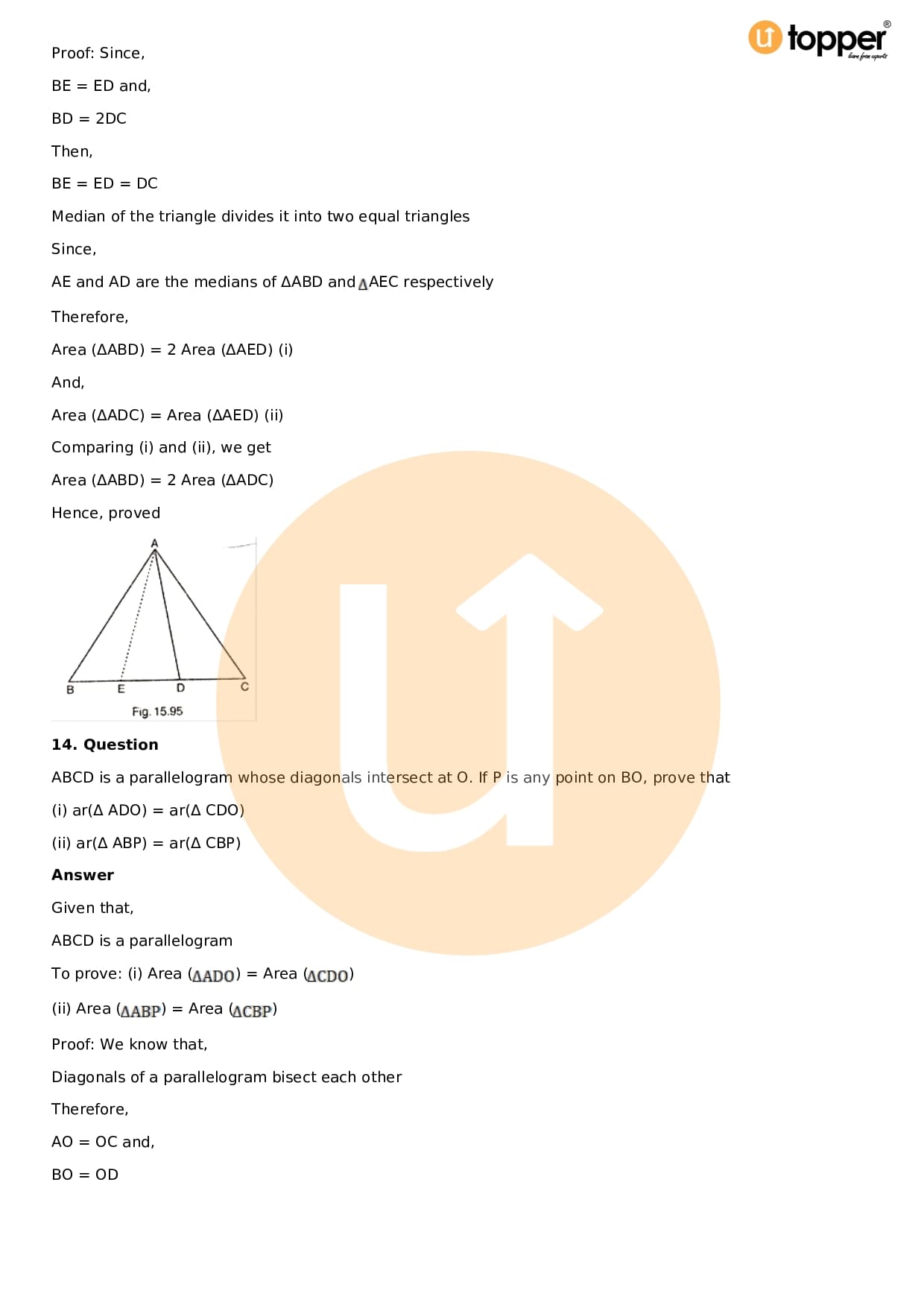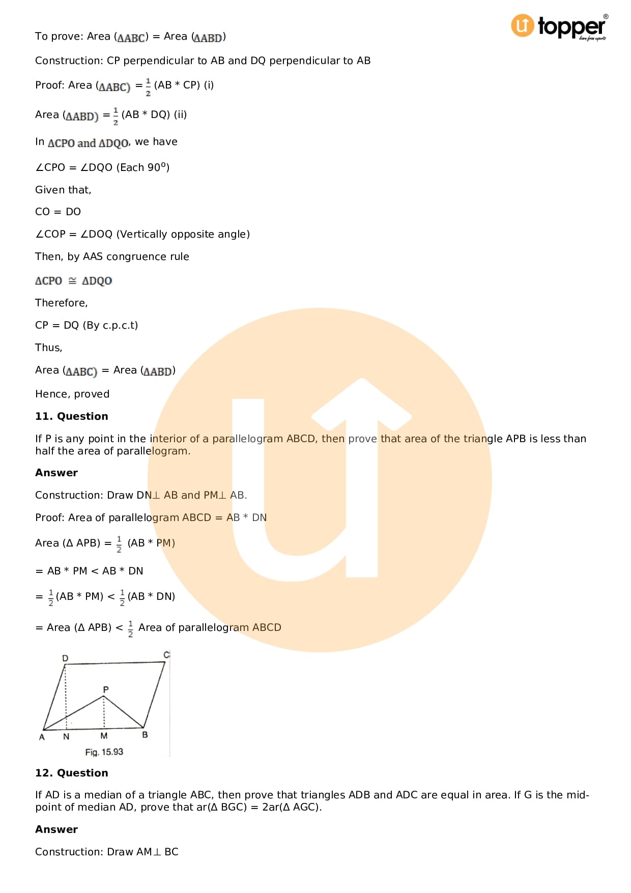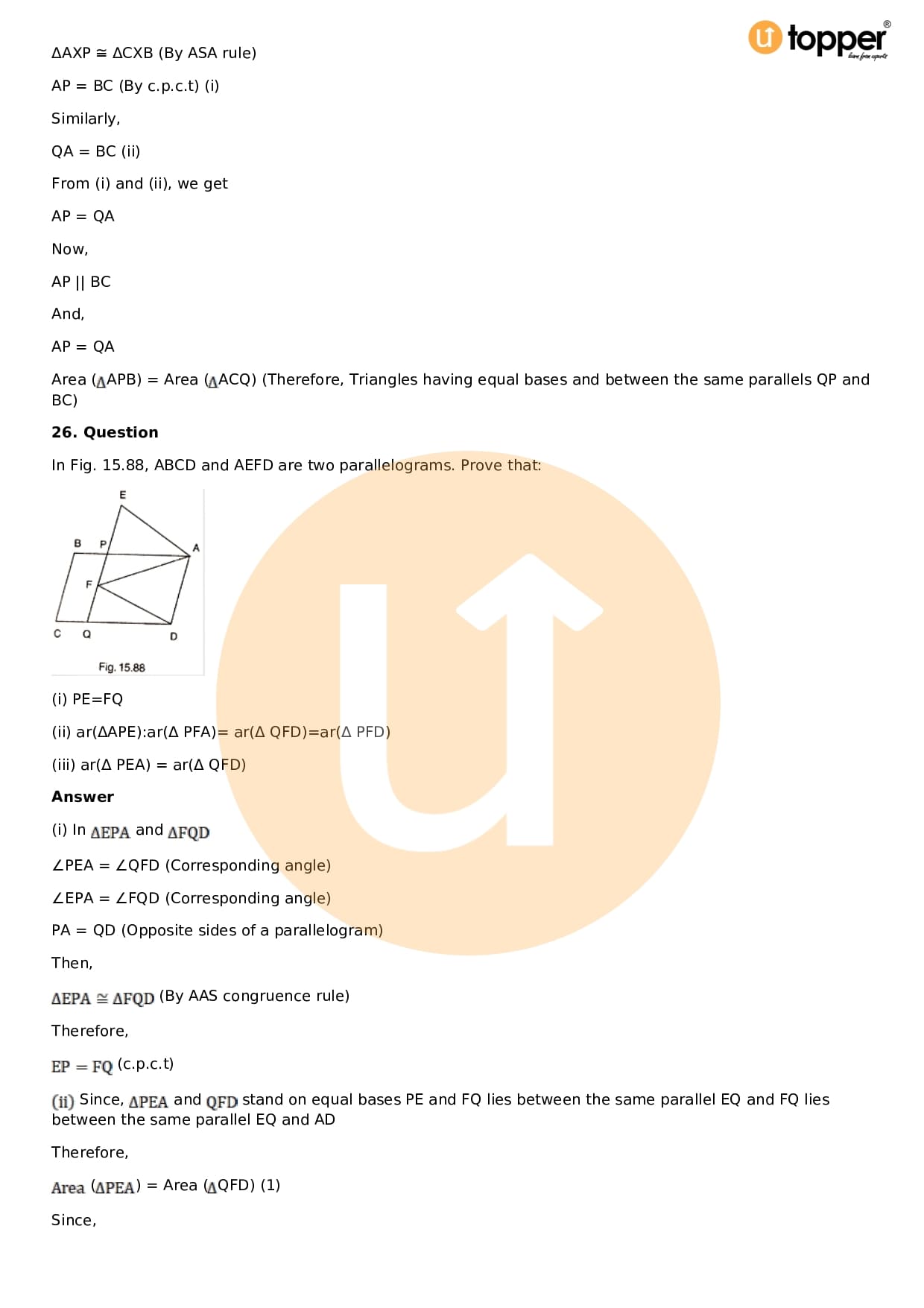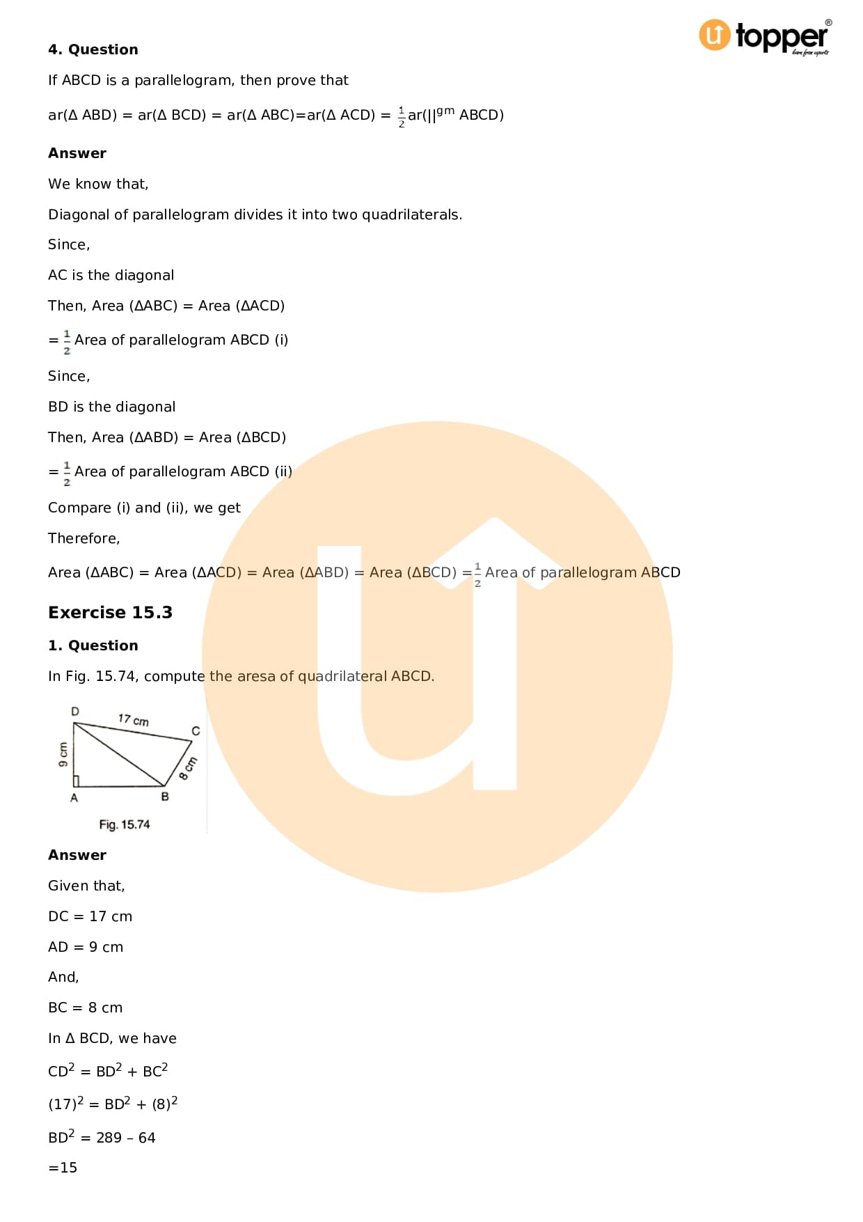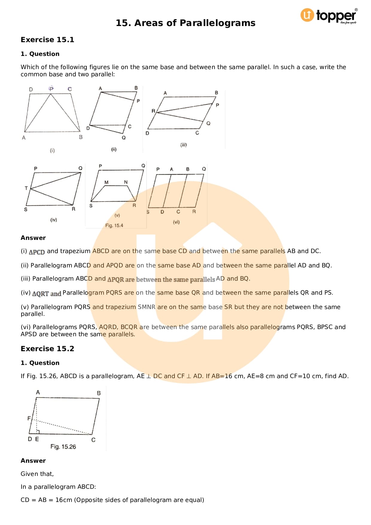 - Chapter 15 – Areas of Parallelograms and Triangles