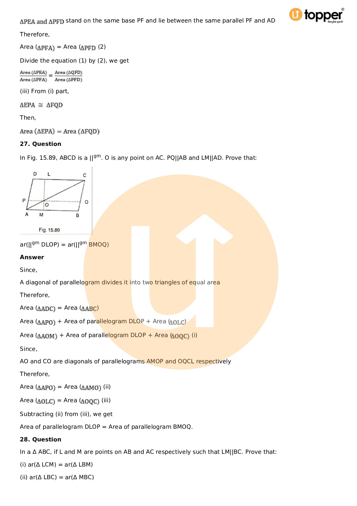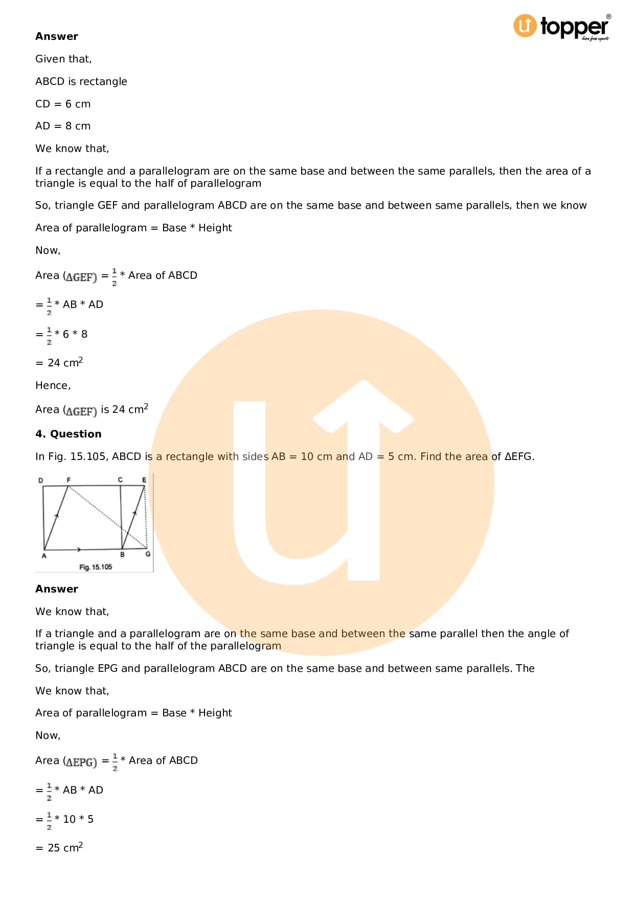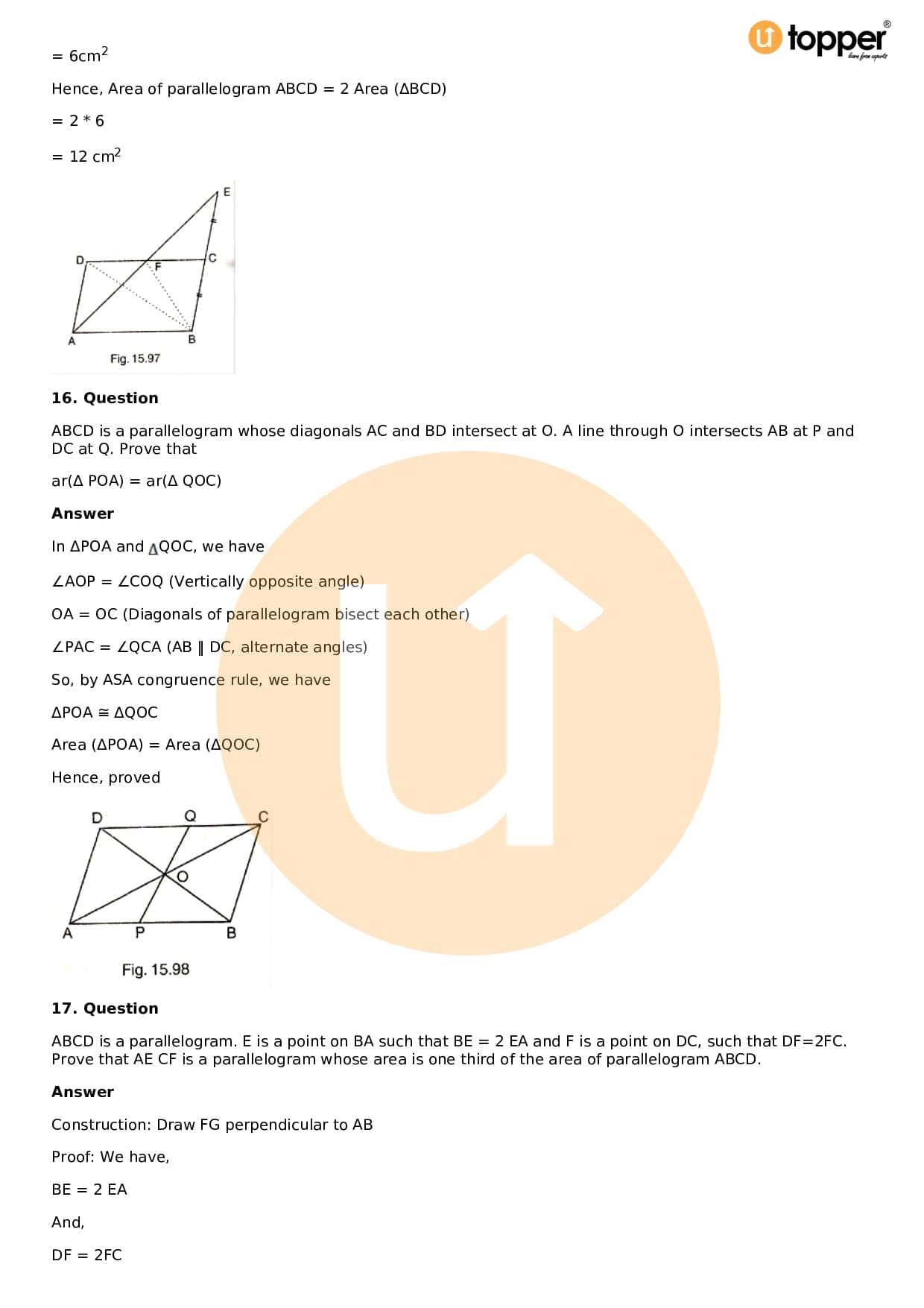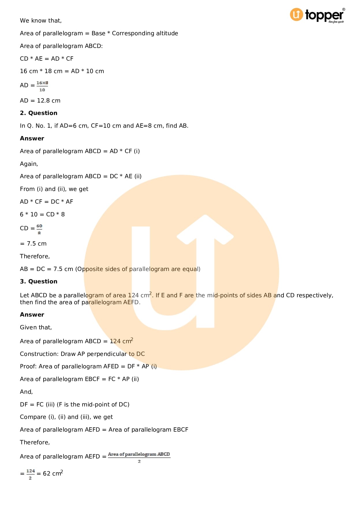 - Chapter 15 – Areas of Parallelograms and Triangles