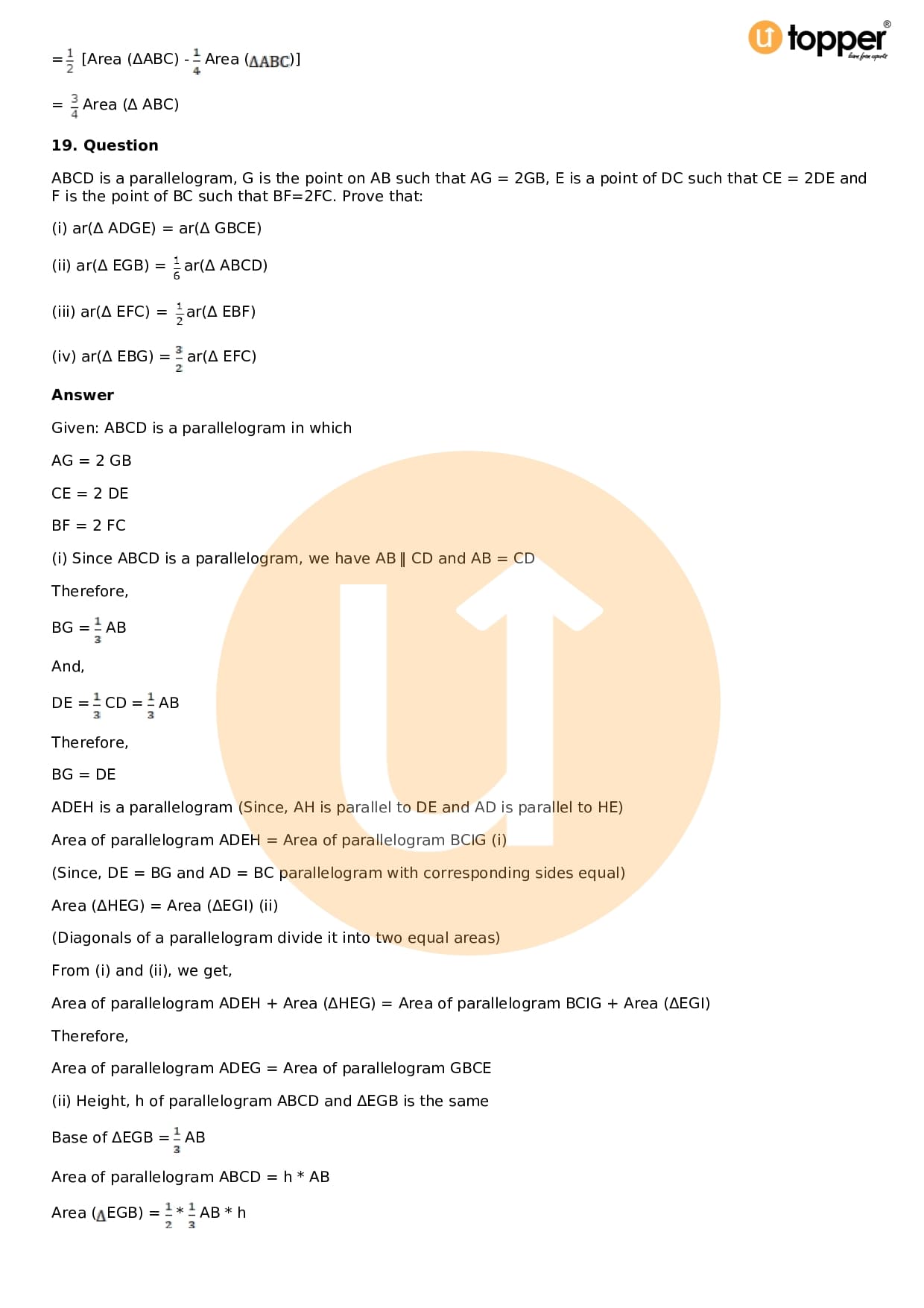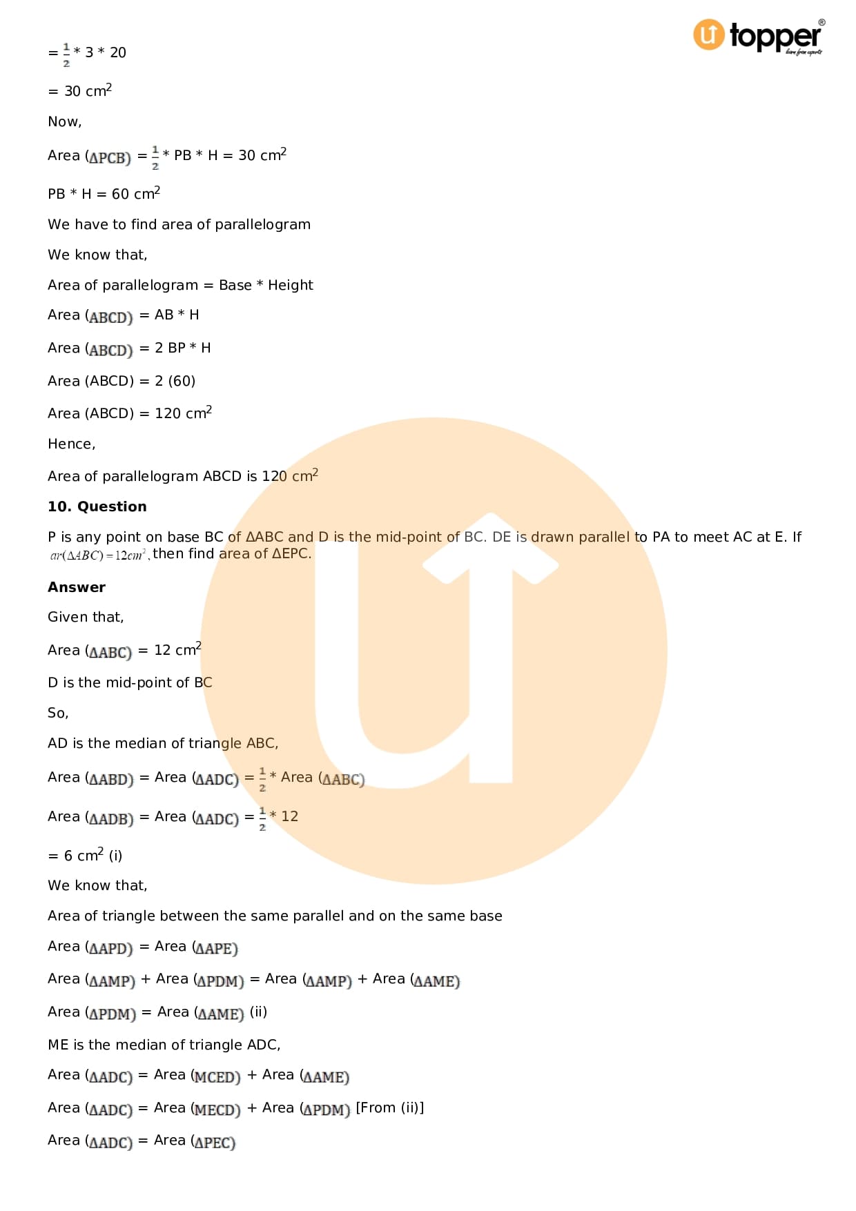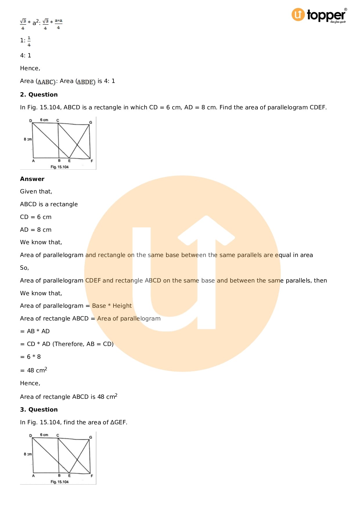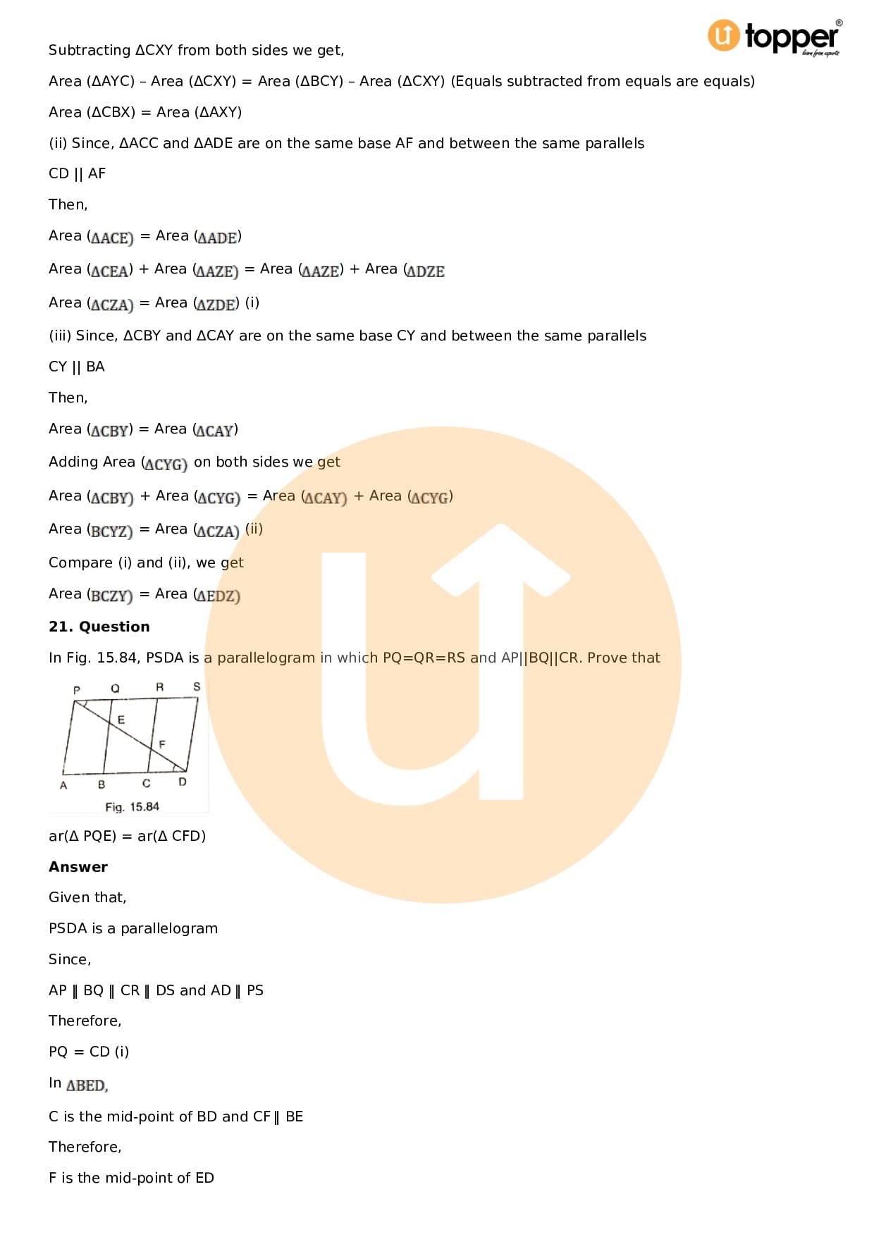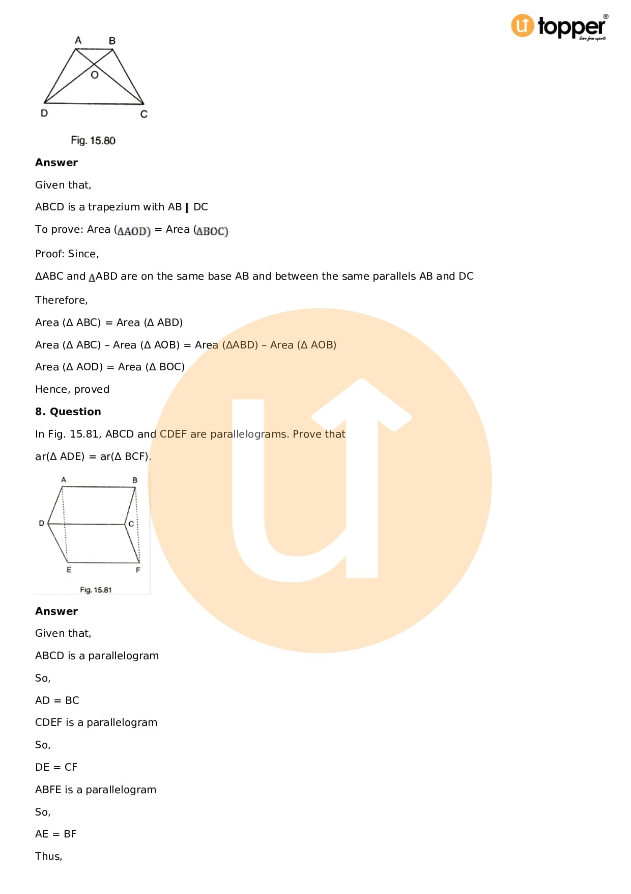 - Chapter 15 – Areas of Parallelograms and Triangles