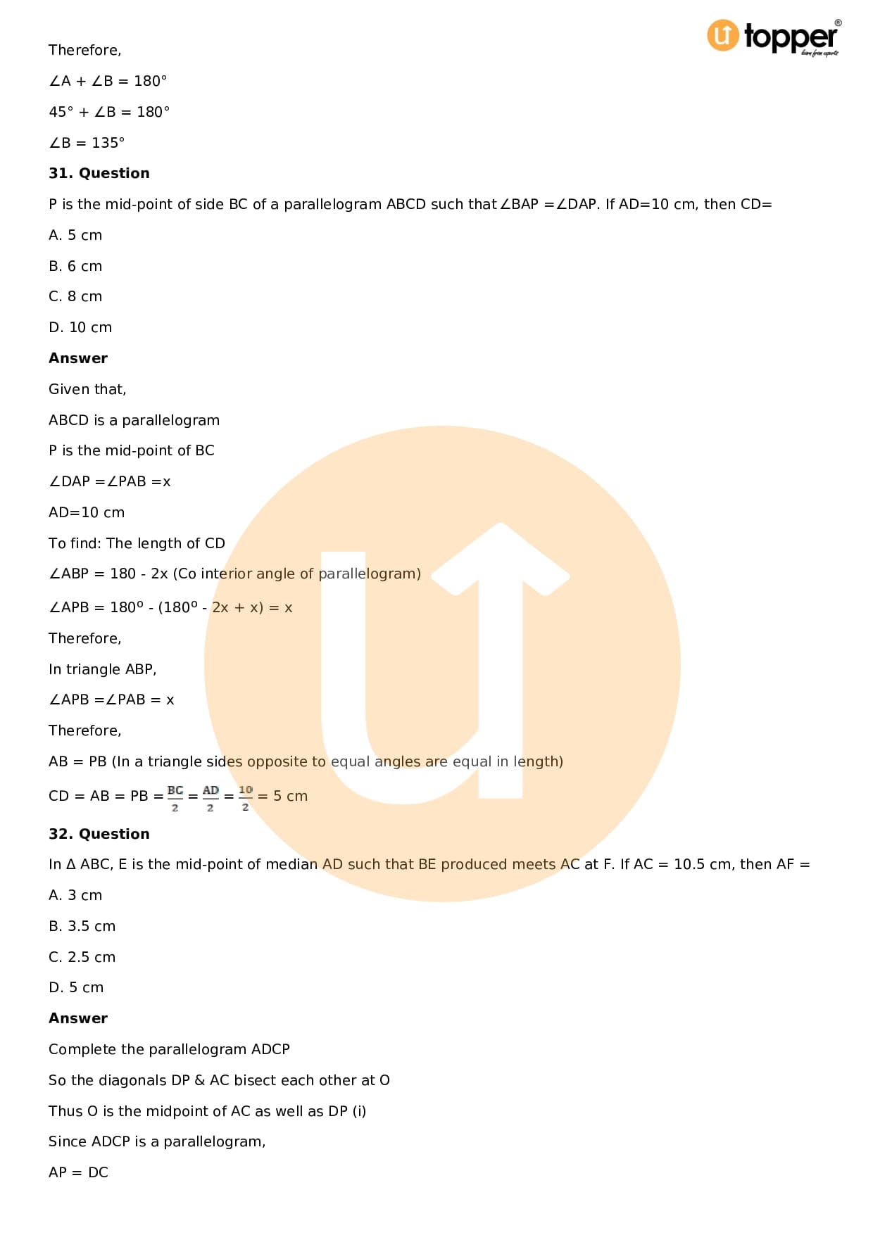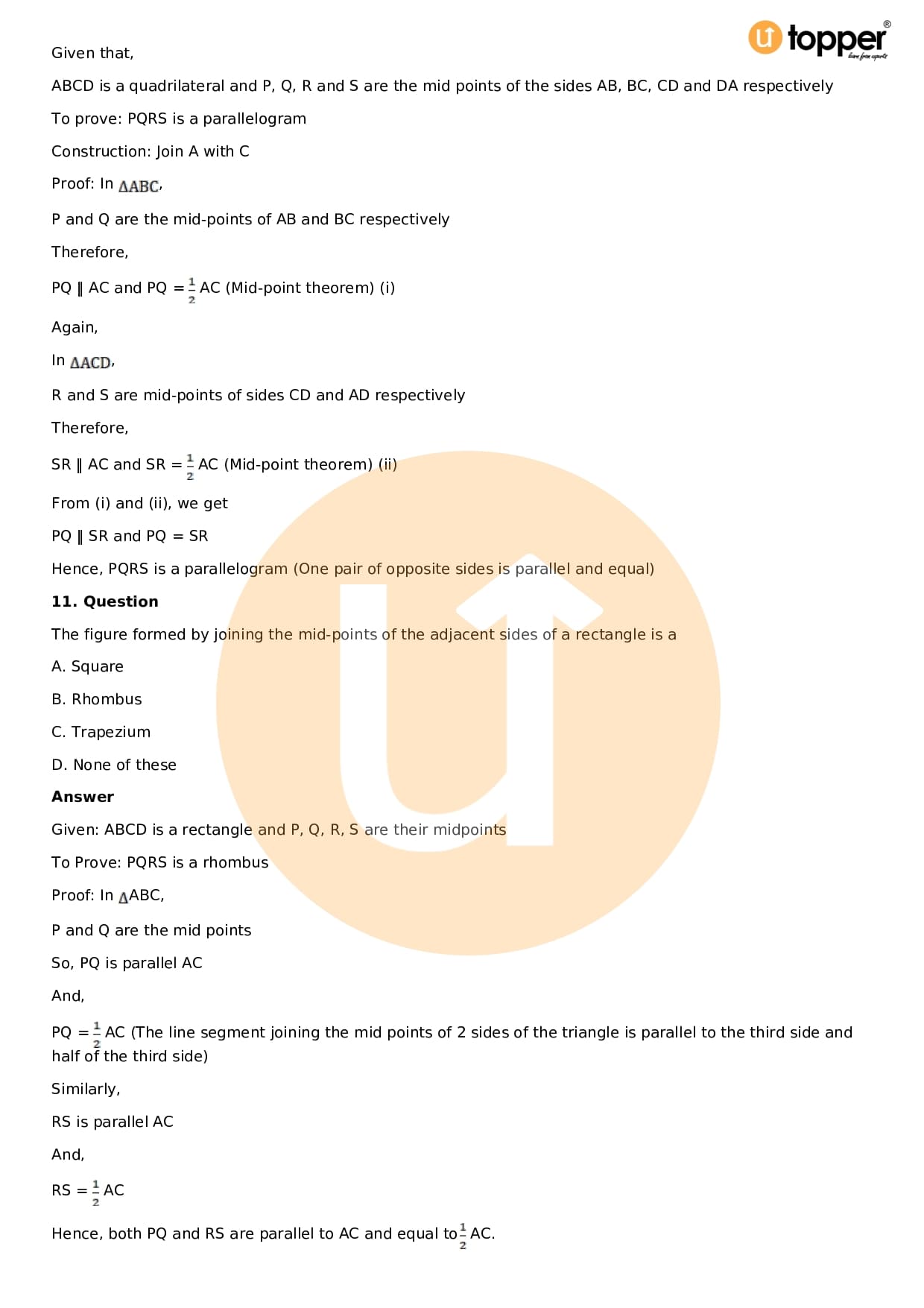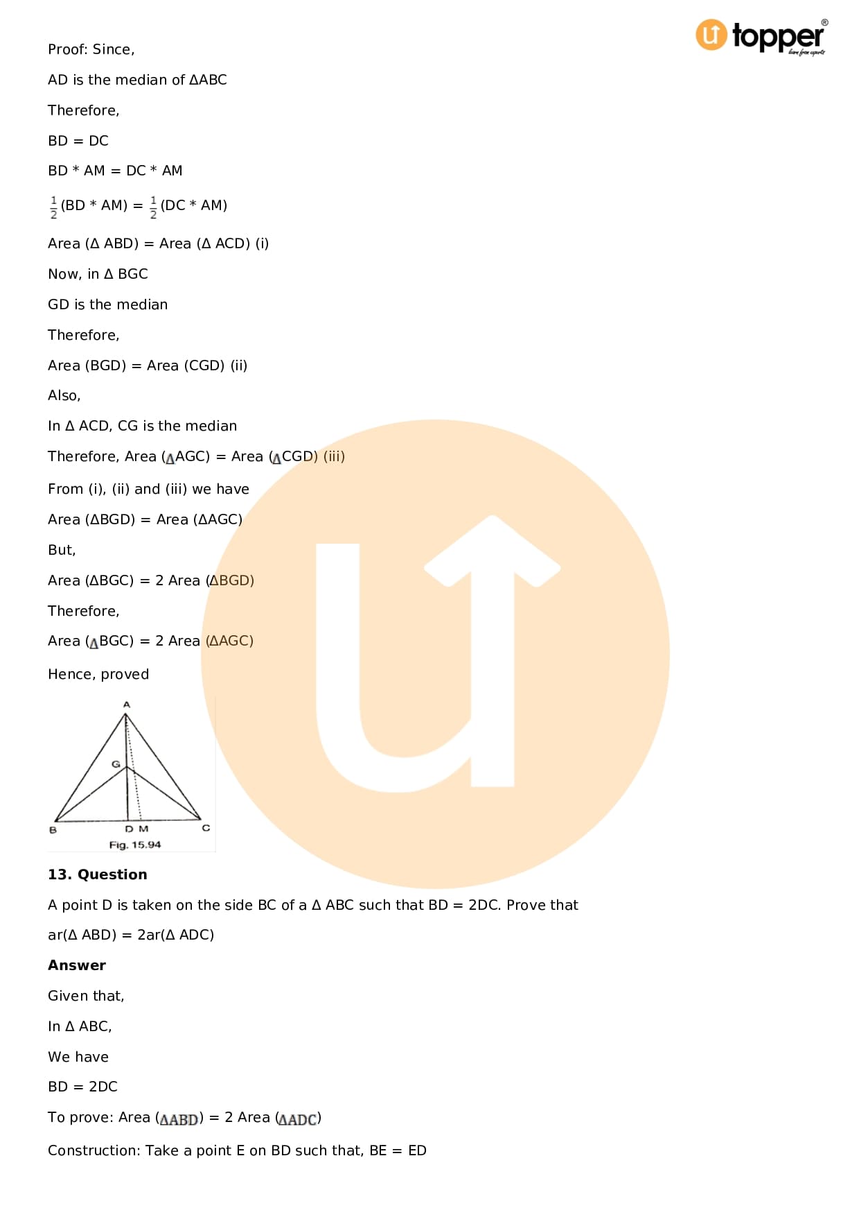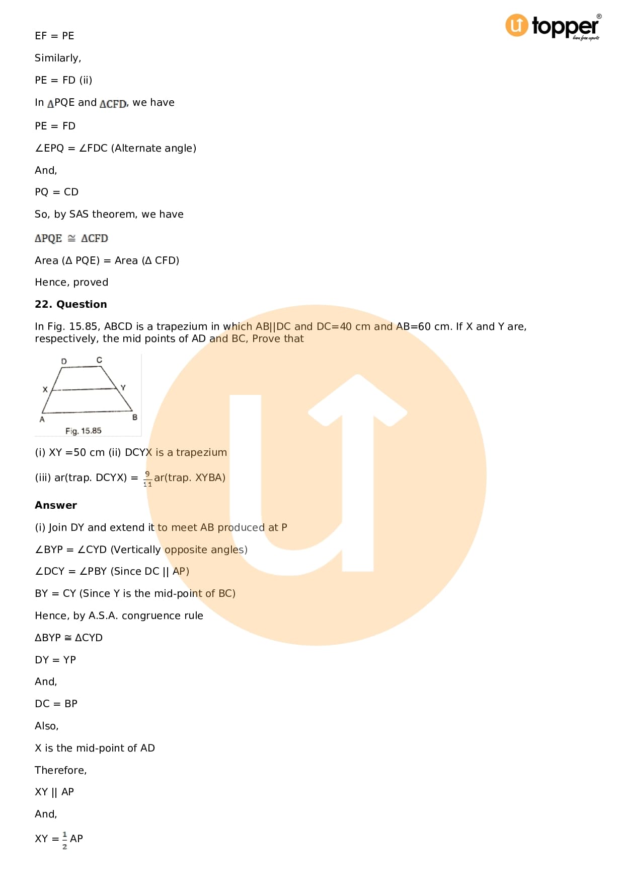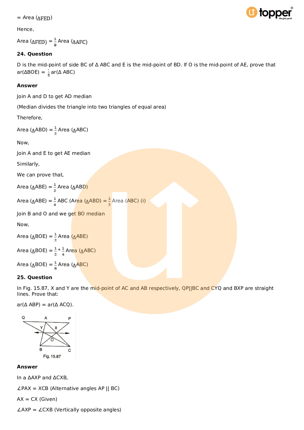 - Chapter 15 – Areas of Parallelograms and Triangles