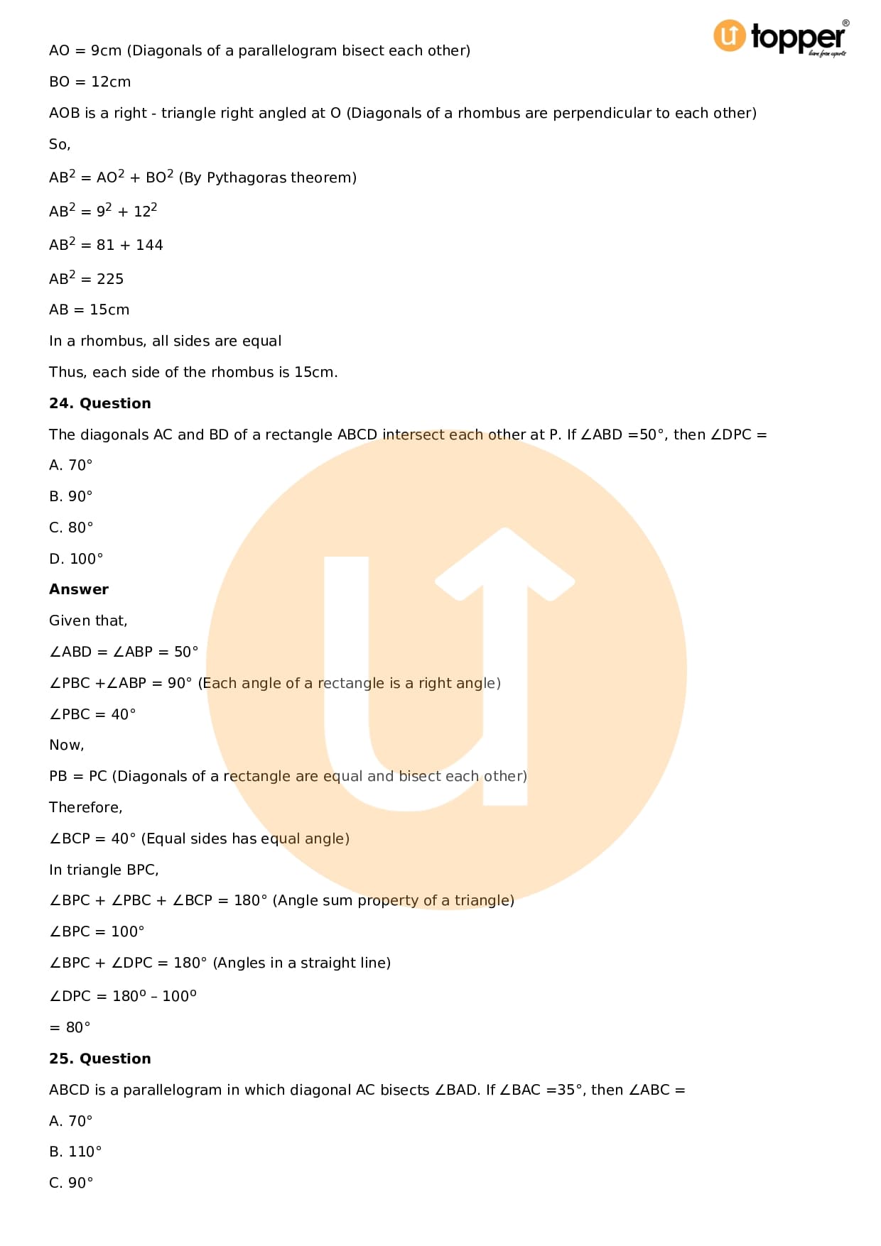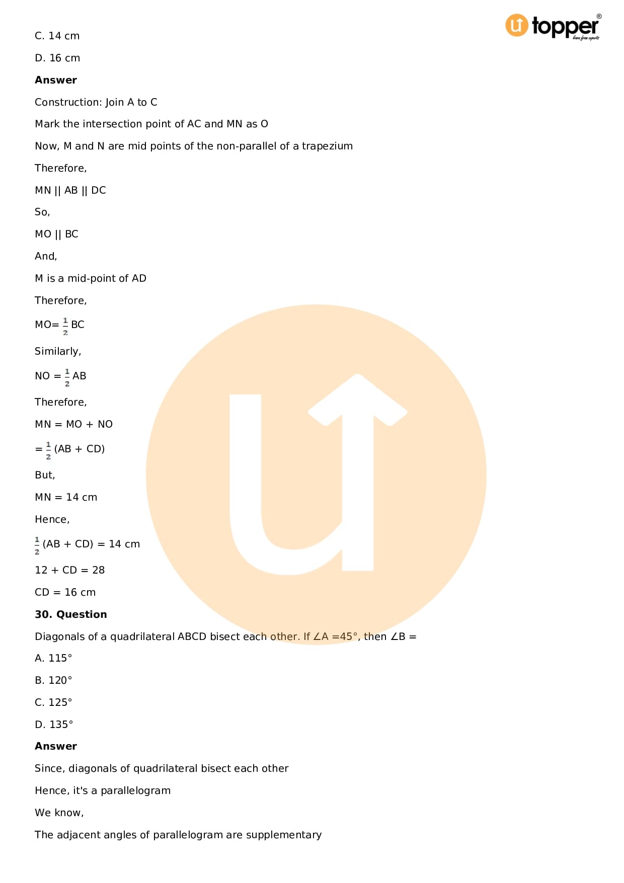 Download the latest version of RD Sharma Solutions for Class 9 Maths Chapter 15 Areas of Parallelograms and Triangles PDF at Utopper. It provides step by step Solution PDF. You can download RD Sharma Maths Solutions with a free PDF download option, which includes chapter wise solutions. All the questions in RD Sharma Solutions have been solved and explained by expert mathematics teachers as per the CBSE Board guidelines. By studying these Maths Solutions, you can easily get good marks in the CBSE board exams.