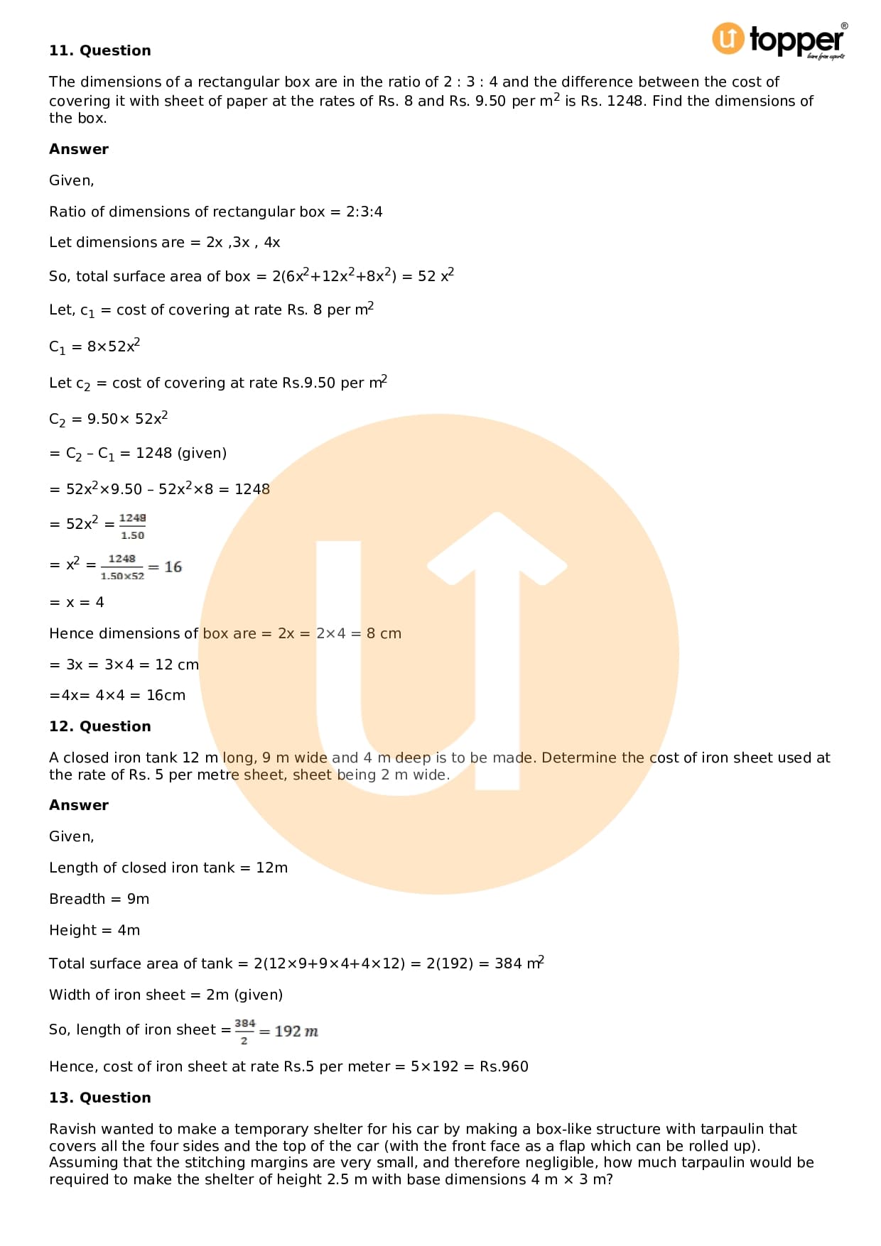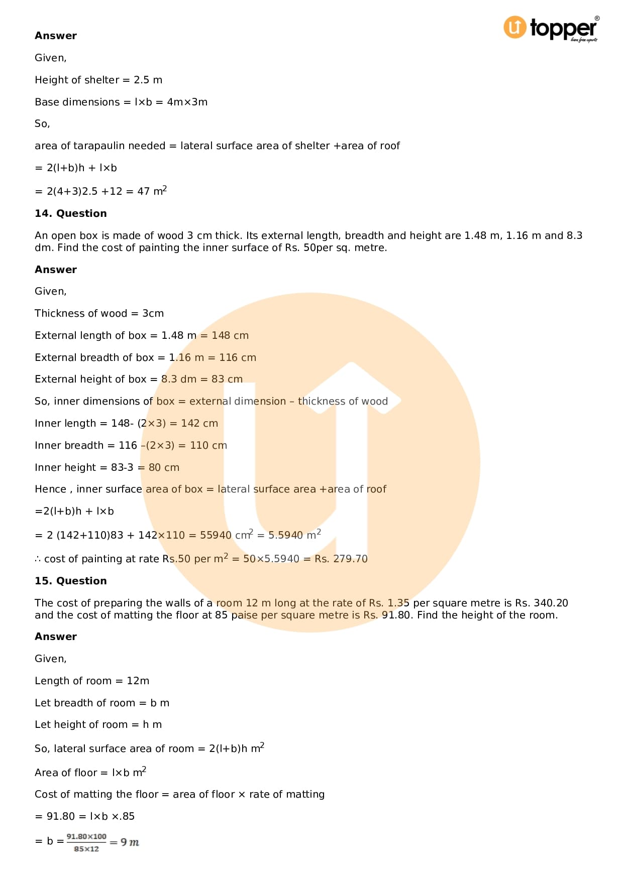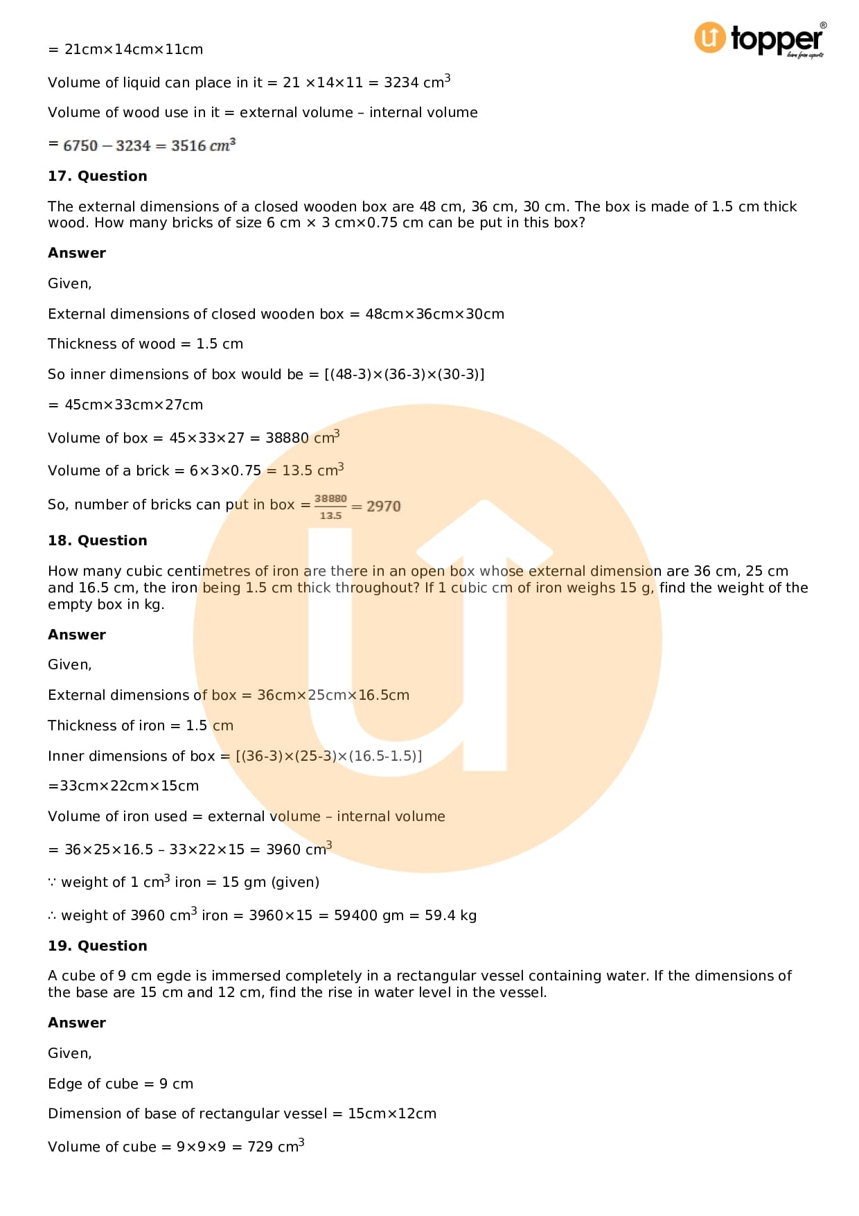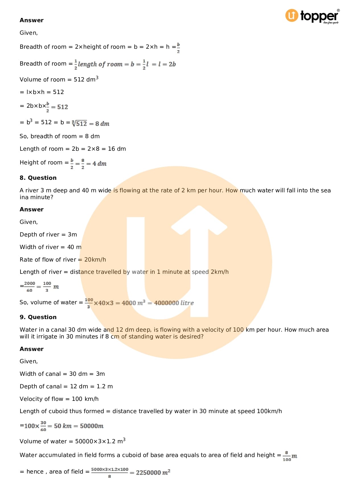 Download the latest version of RD Sharma Solutions for Class 9 Maths Chapter 18 Surface Area and Volume of a Cuboid and Cube PDF at Utopper. It provides step by step Solution PDF. You can download RD Sharma Maths Solutions with a free PDF download option, which includes chapter wise solutions. All the questions in RD Sharma Solutions have been solved and explained by expert mathematics teachers as per the CBSE Board guidelines. By studying these Maths Solutions, you can easily get good marks in the CBSE board exams.