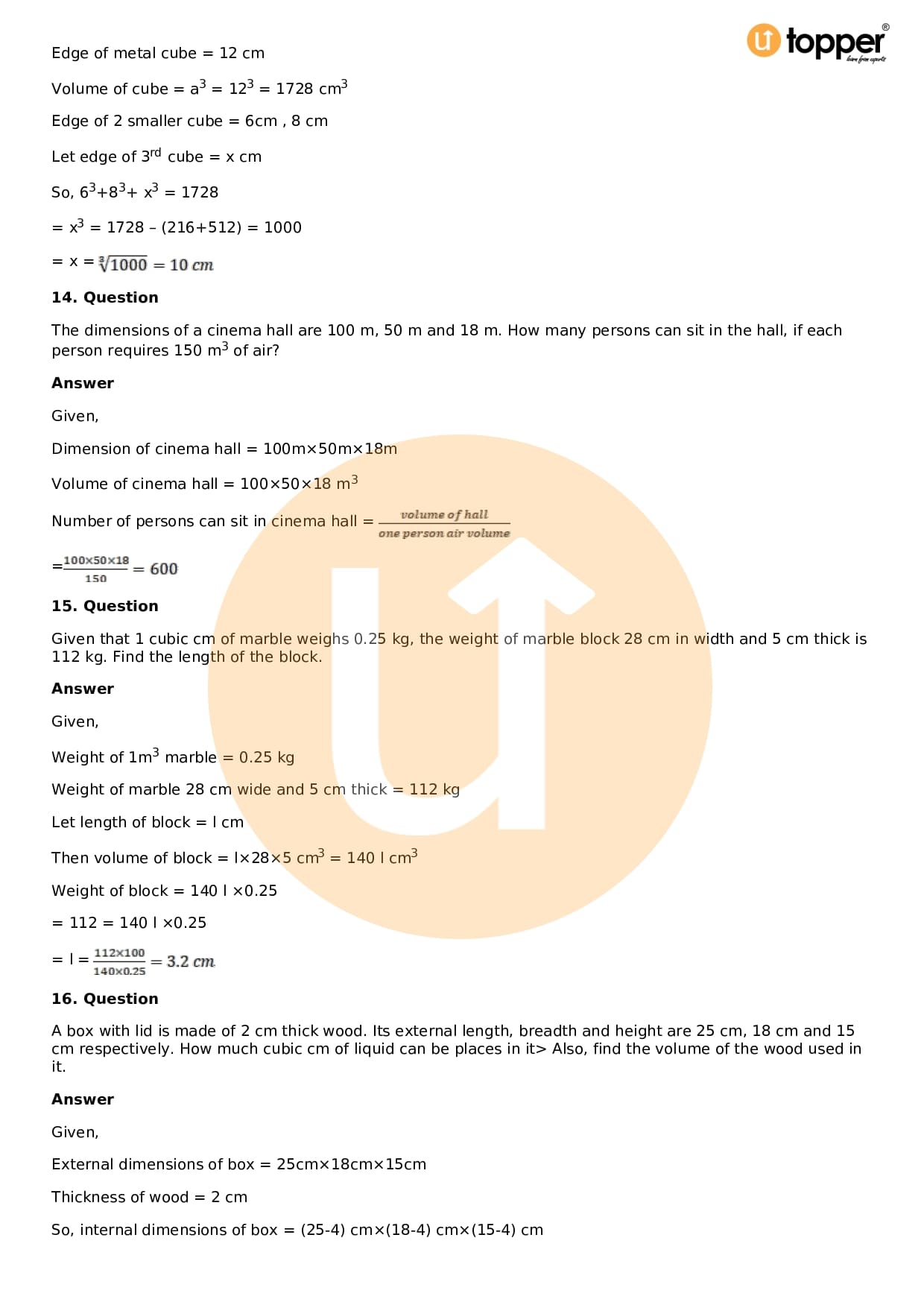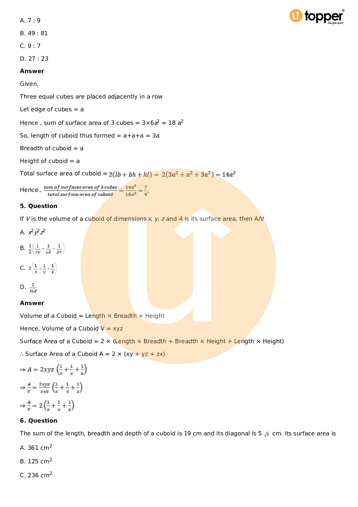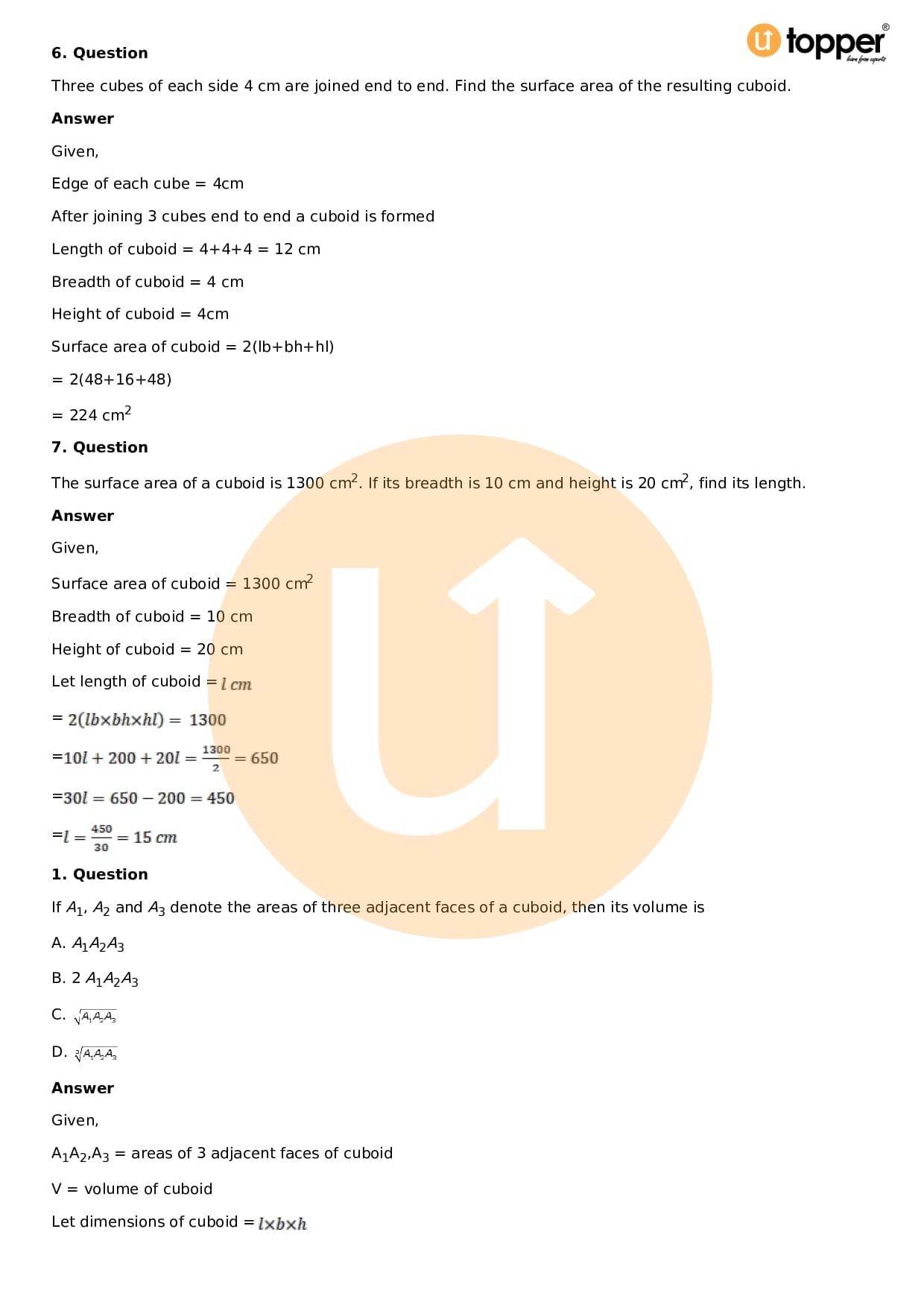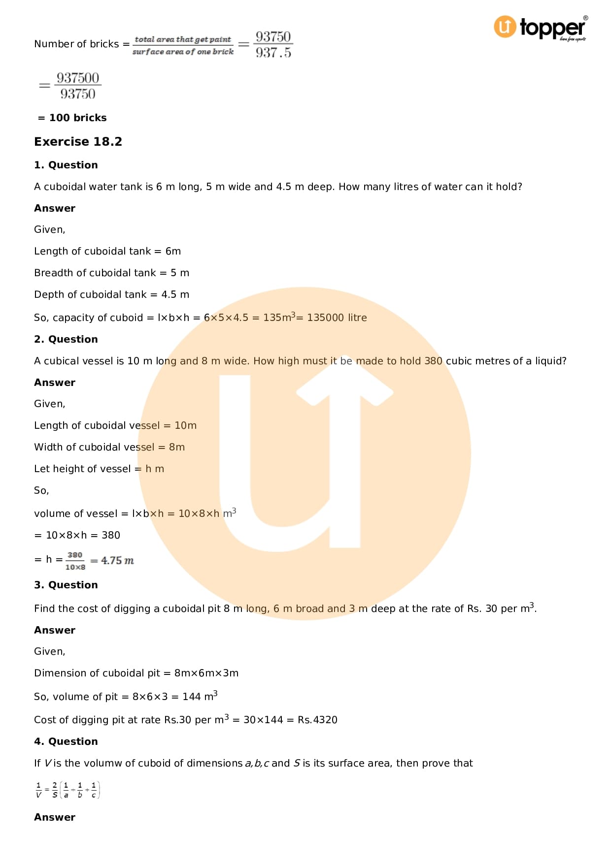 - Chapter 18 – Surface Area and Volume of a Cuboid and Cube