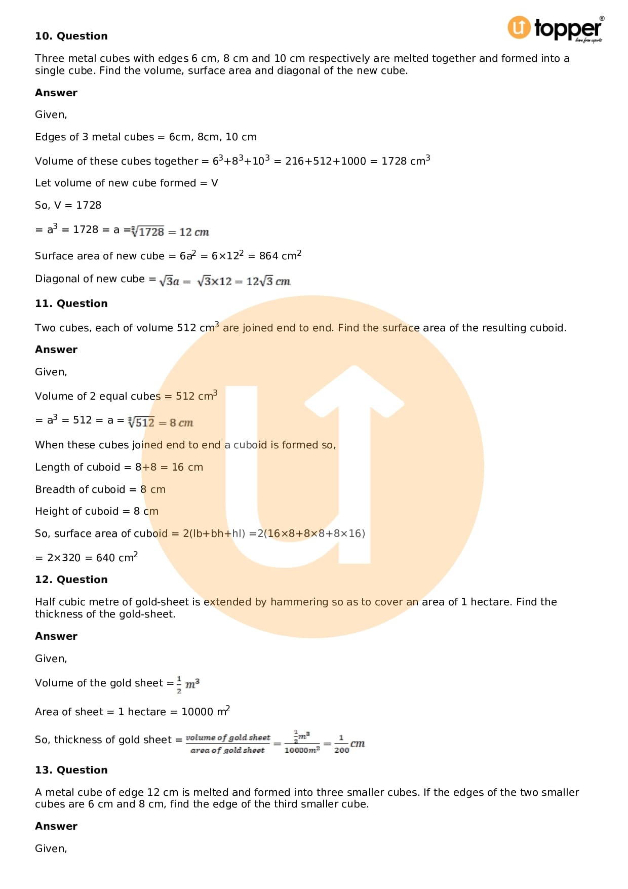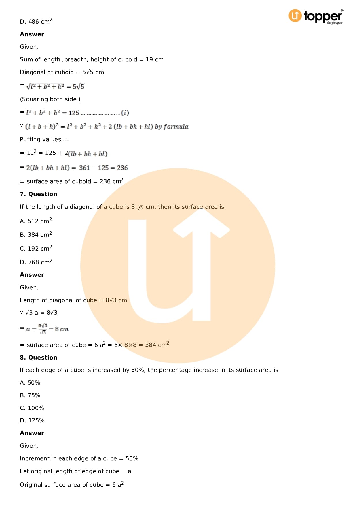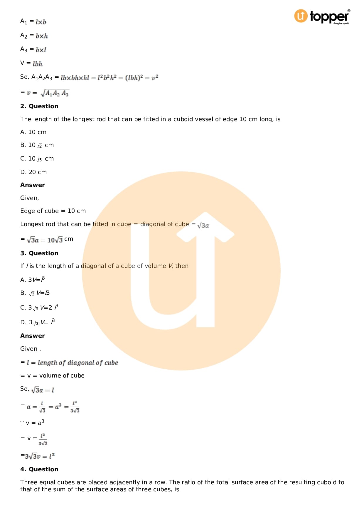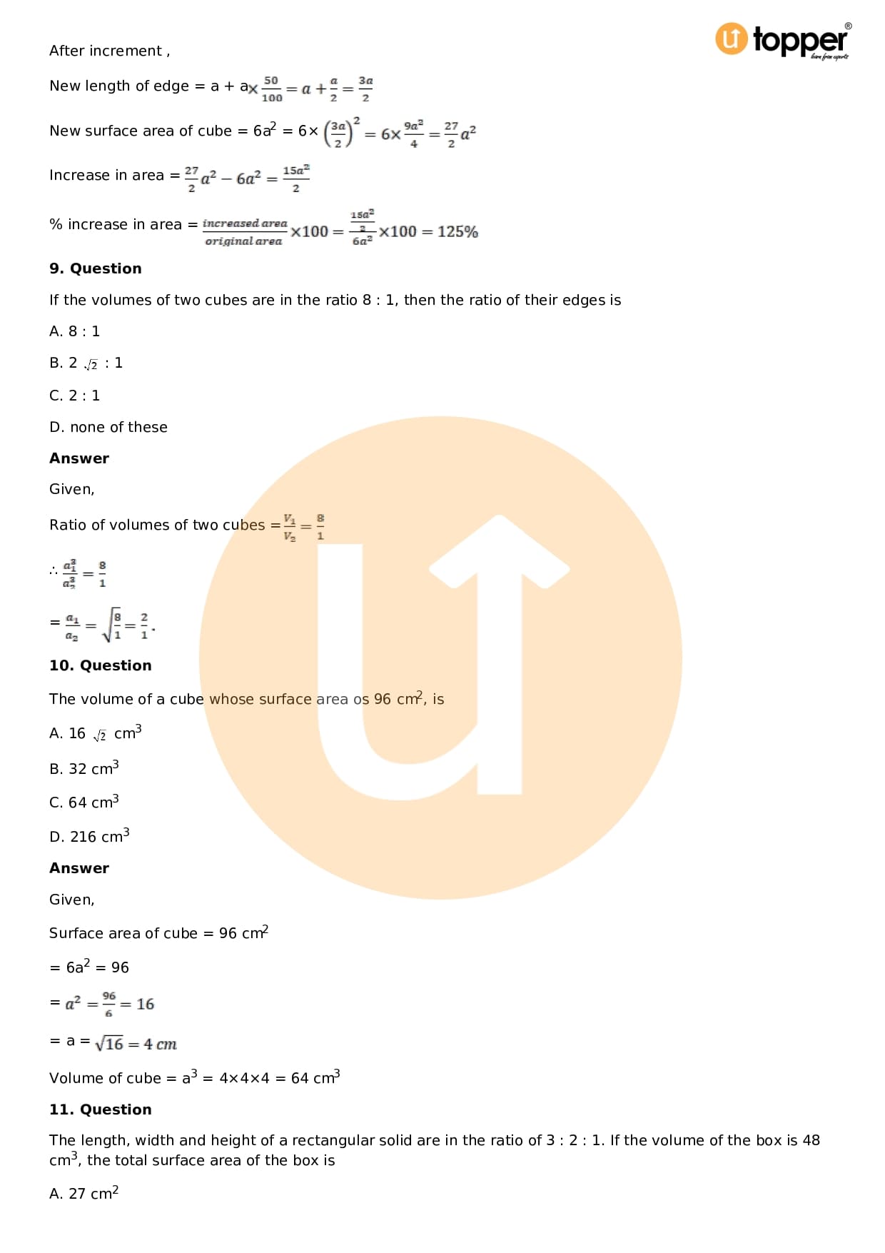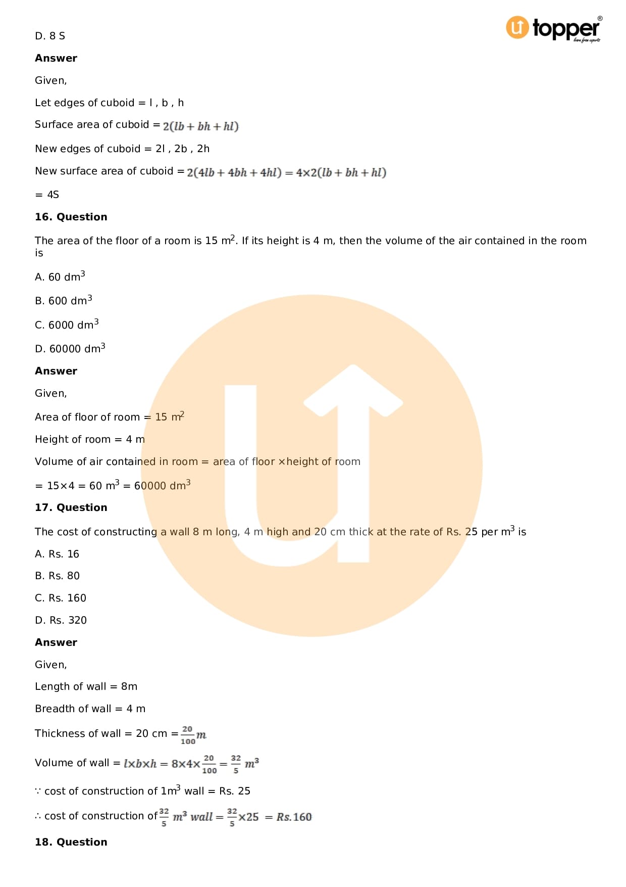 - Chapter 18 – Surface Area and Volume of a Cuboid and Cube