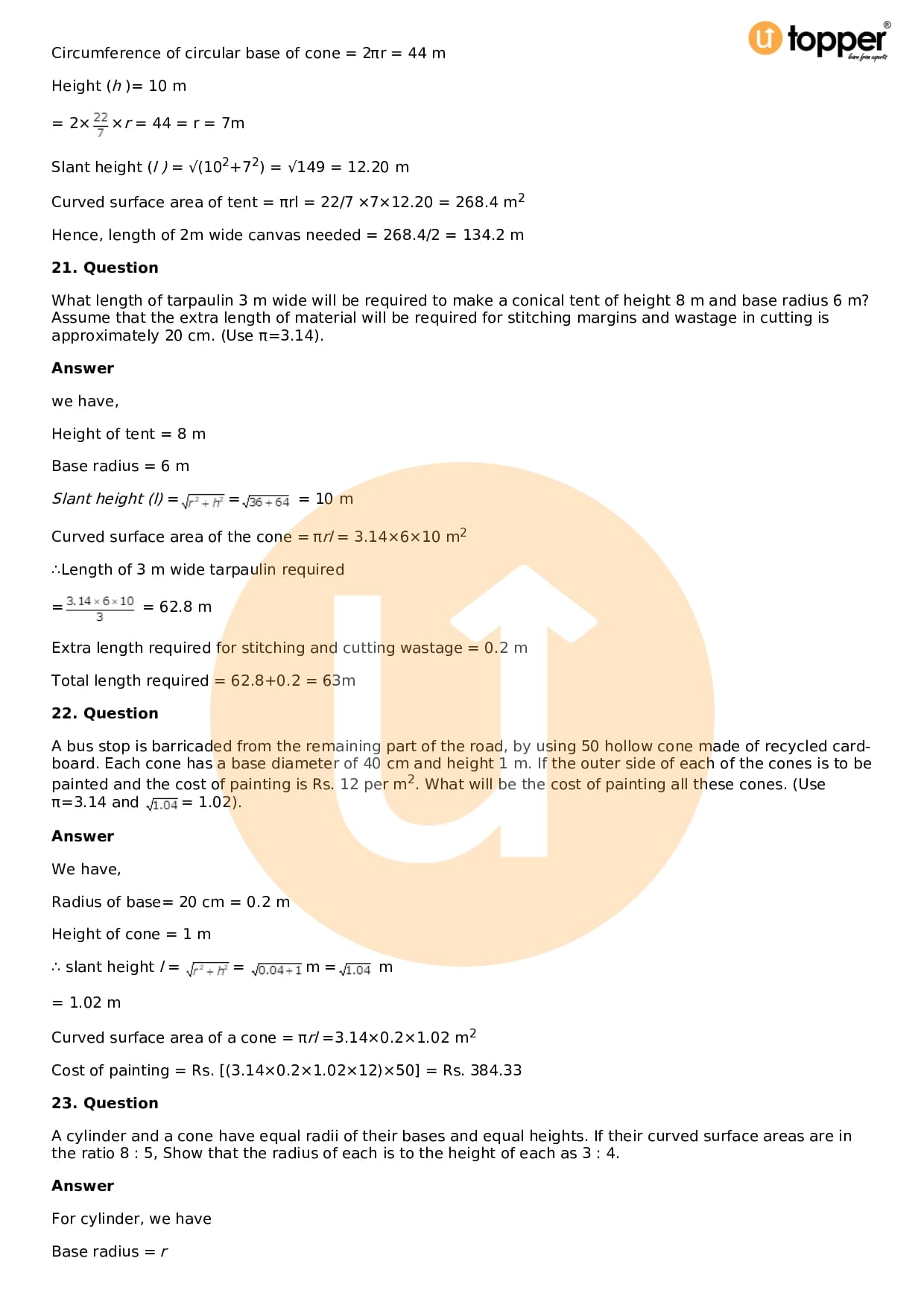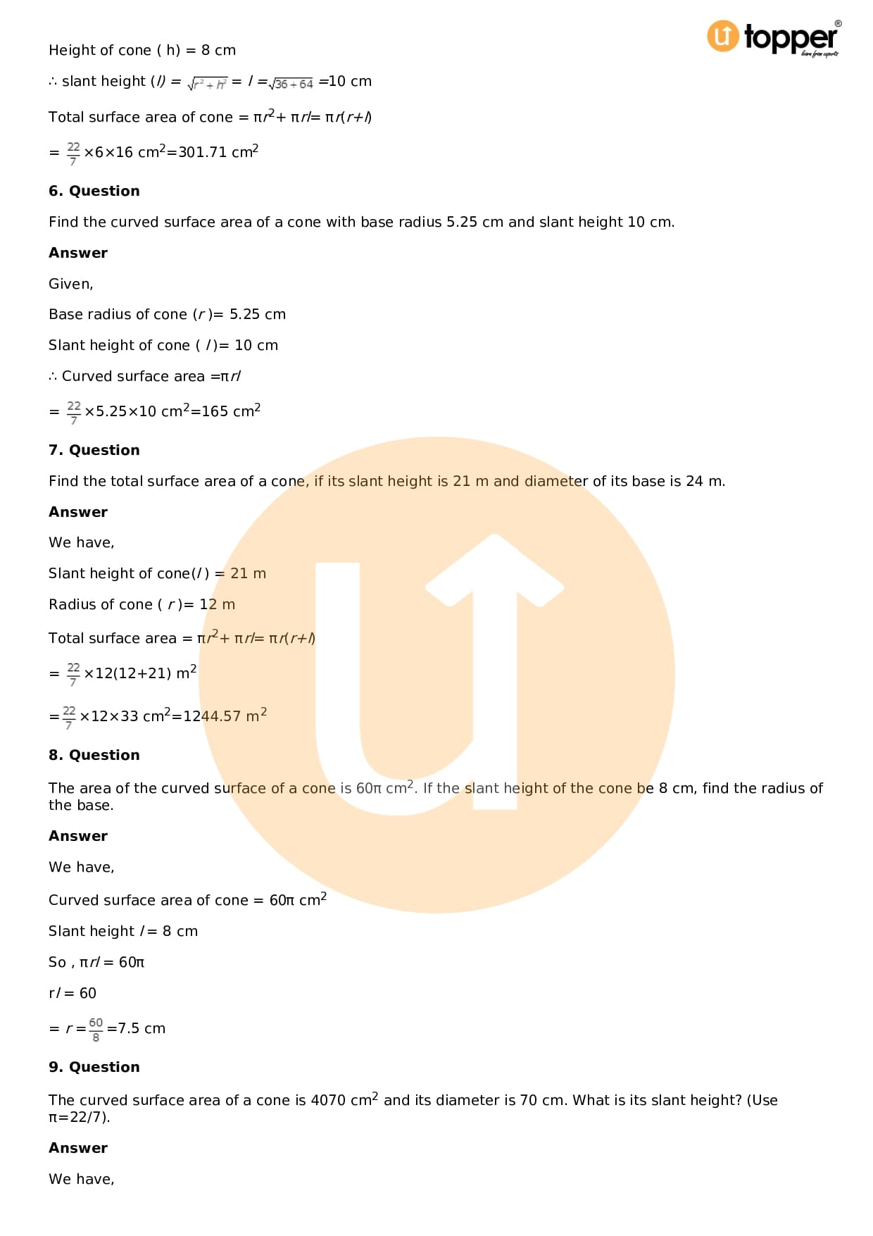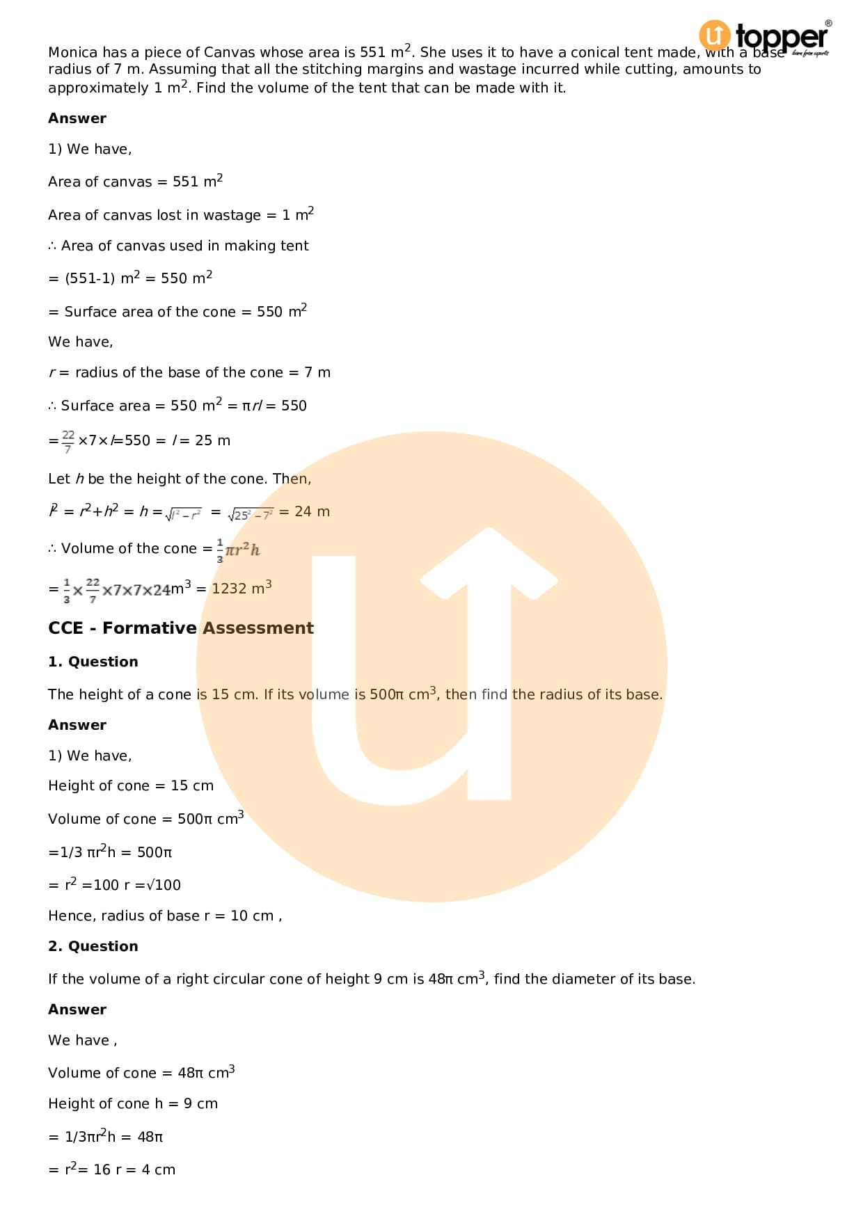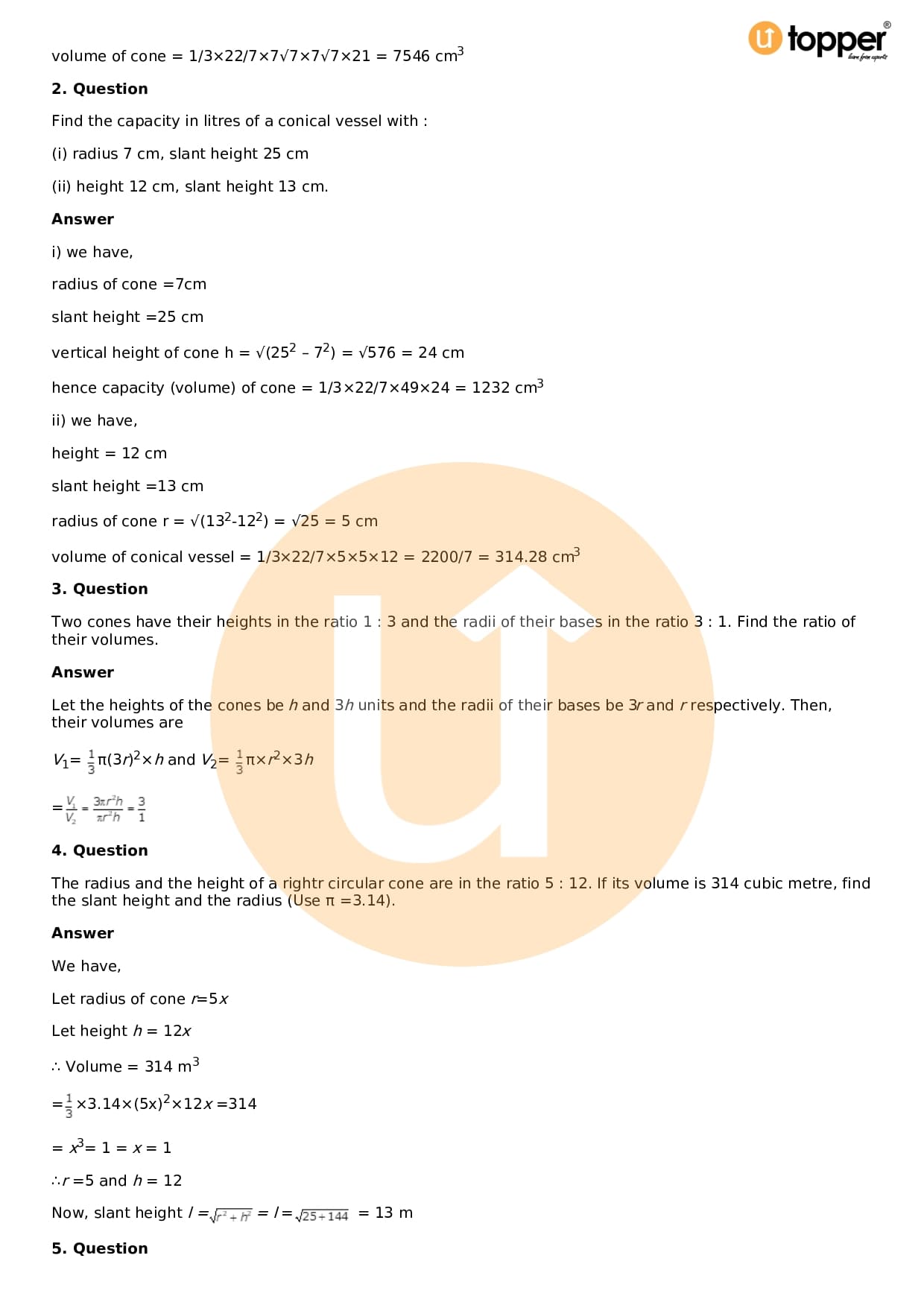 - Chapter 20 – Surface Area and Volume of A Right Circular Cone