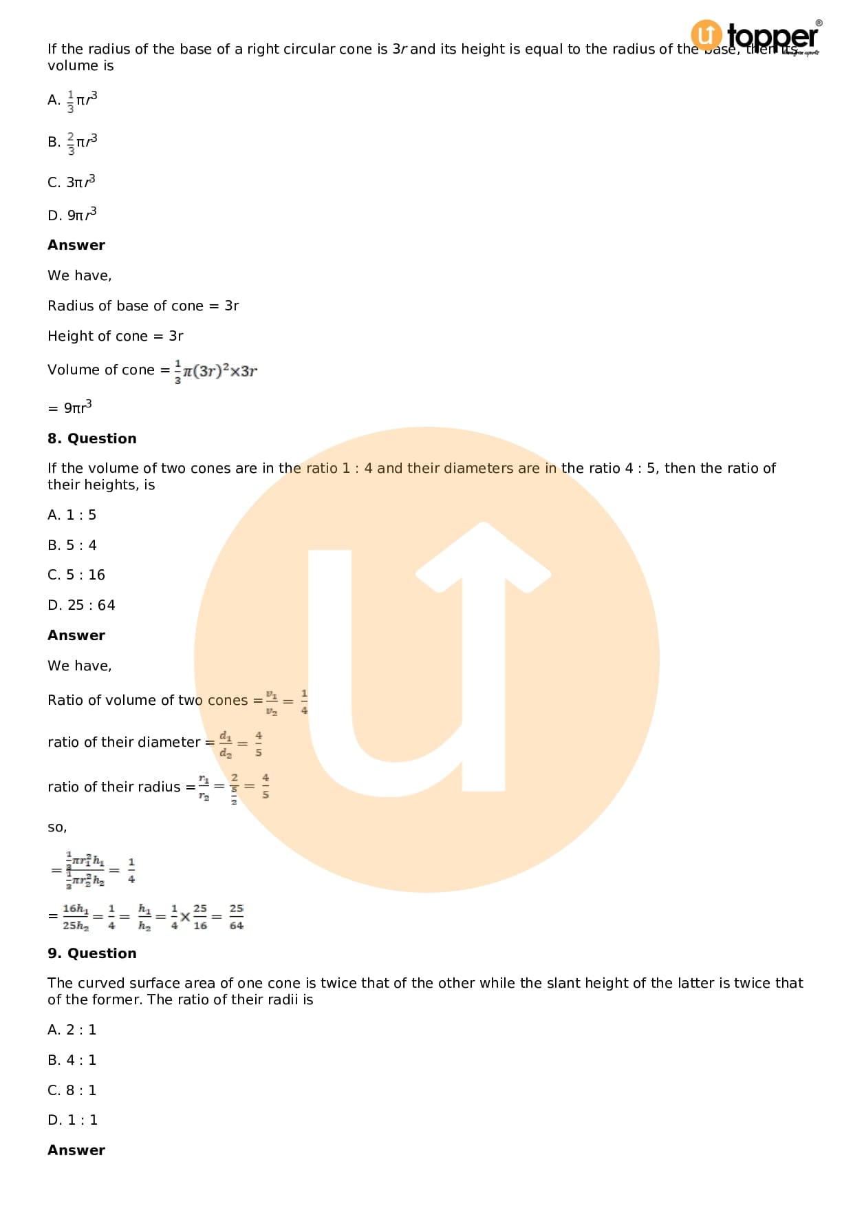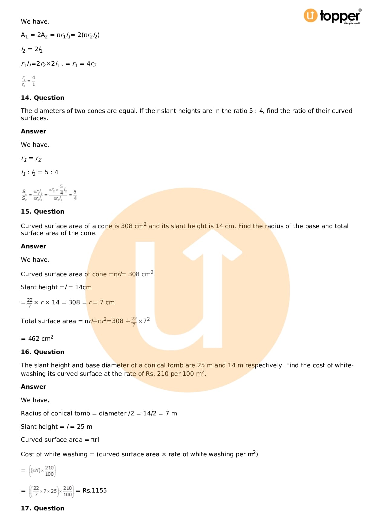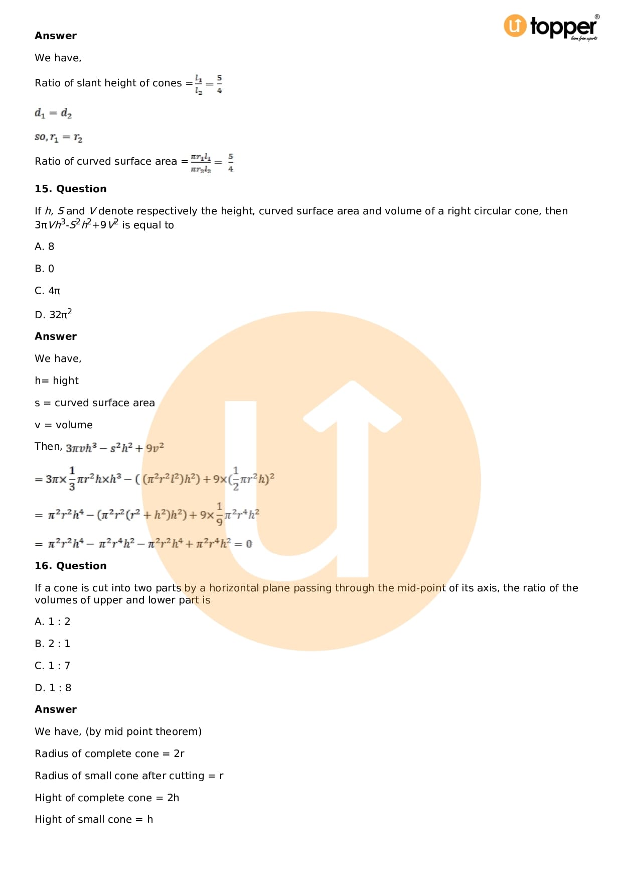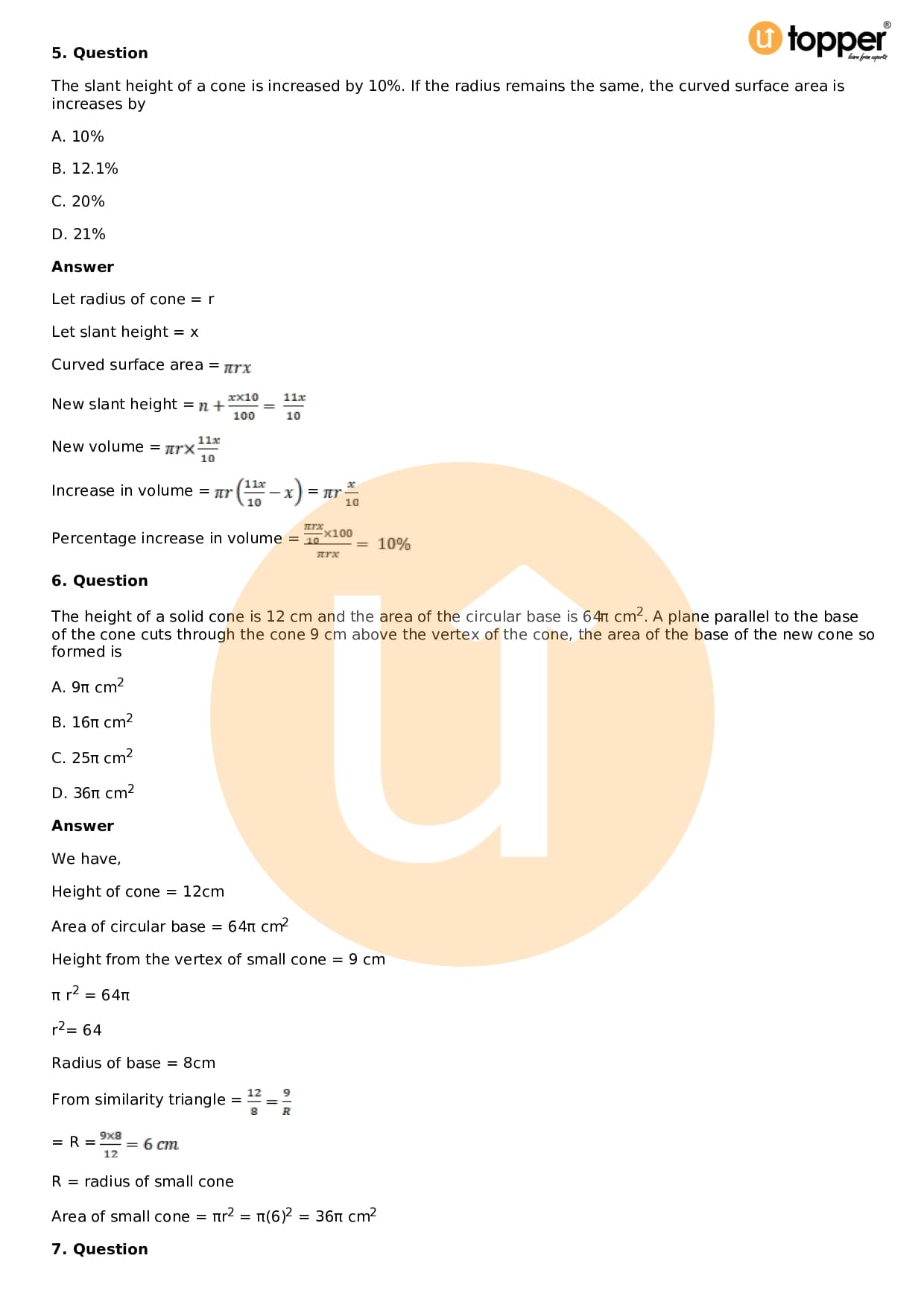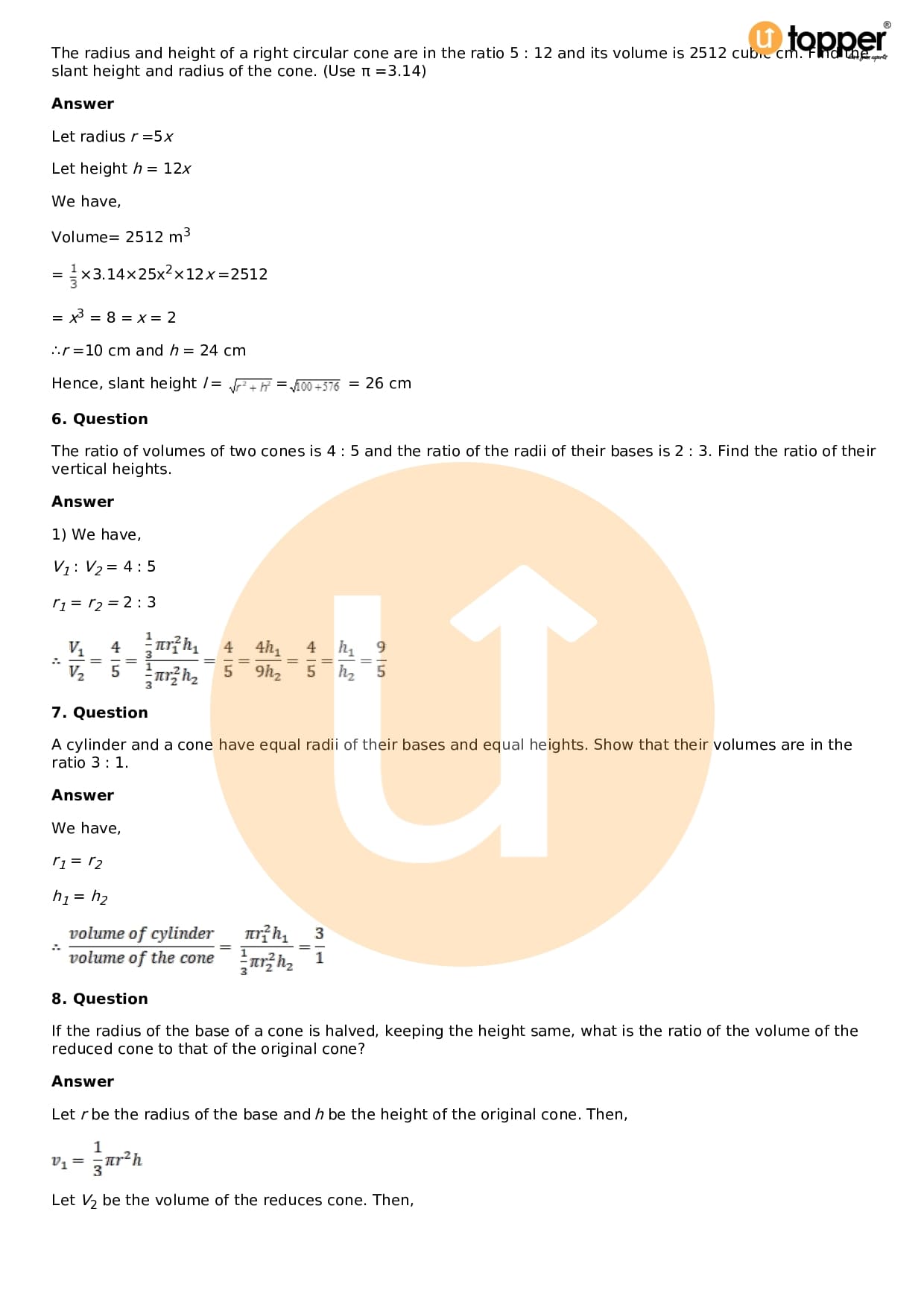 - Chapter 20 – Surface Area and Volume of A Right Circular Cone