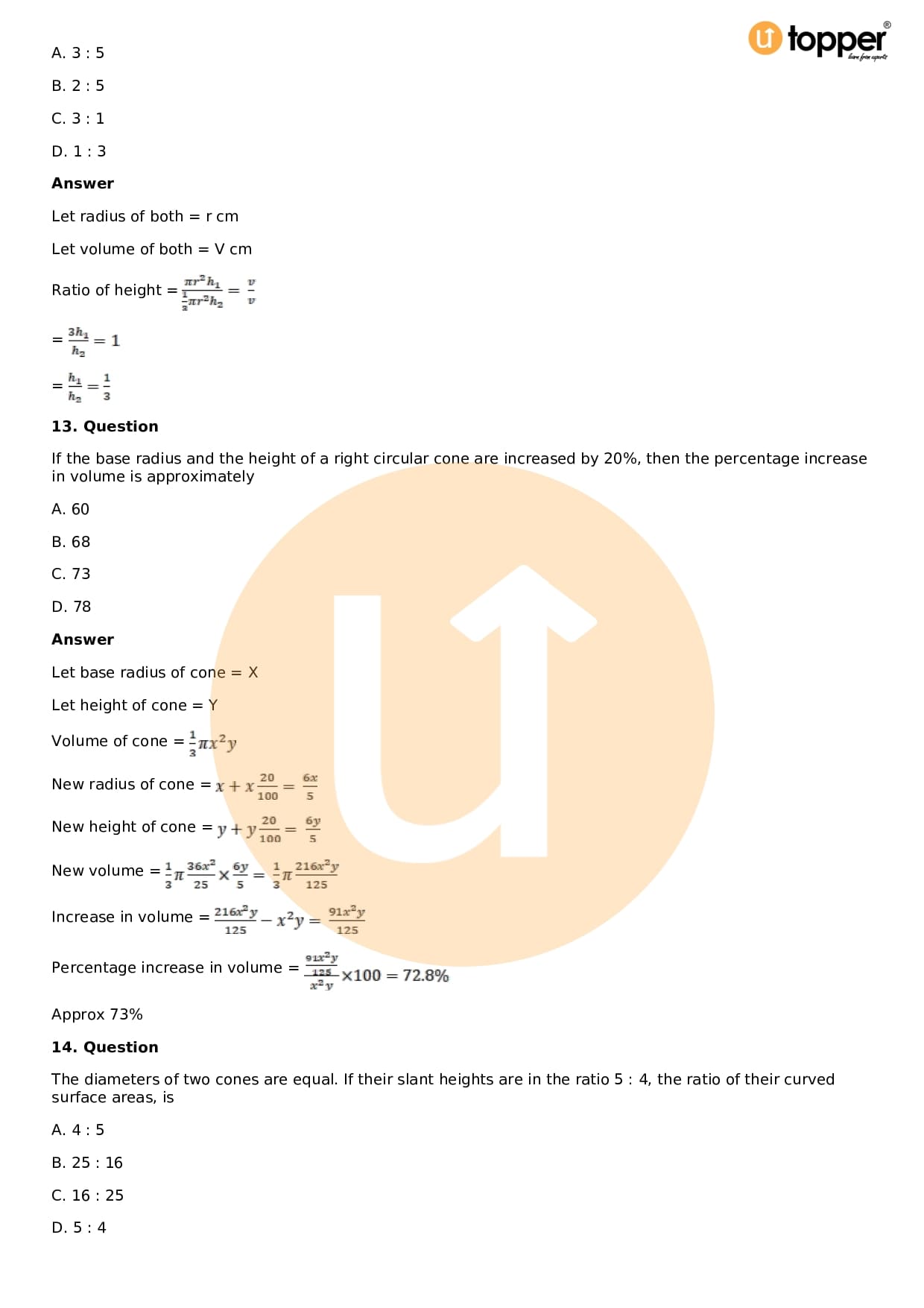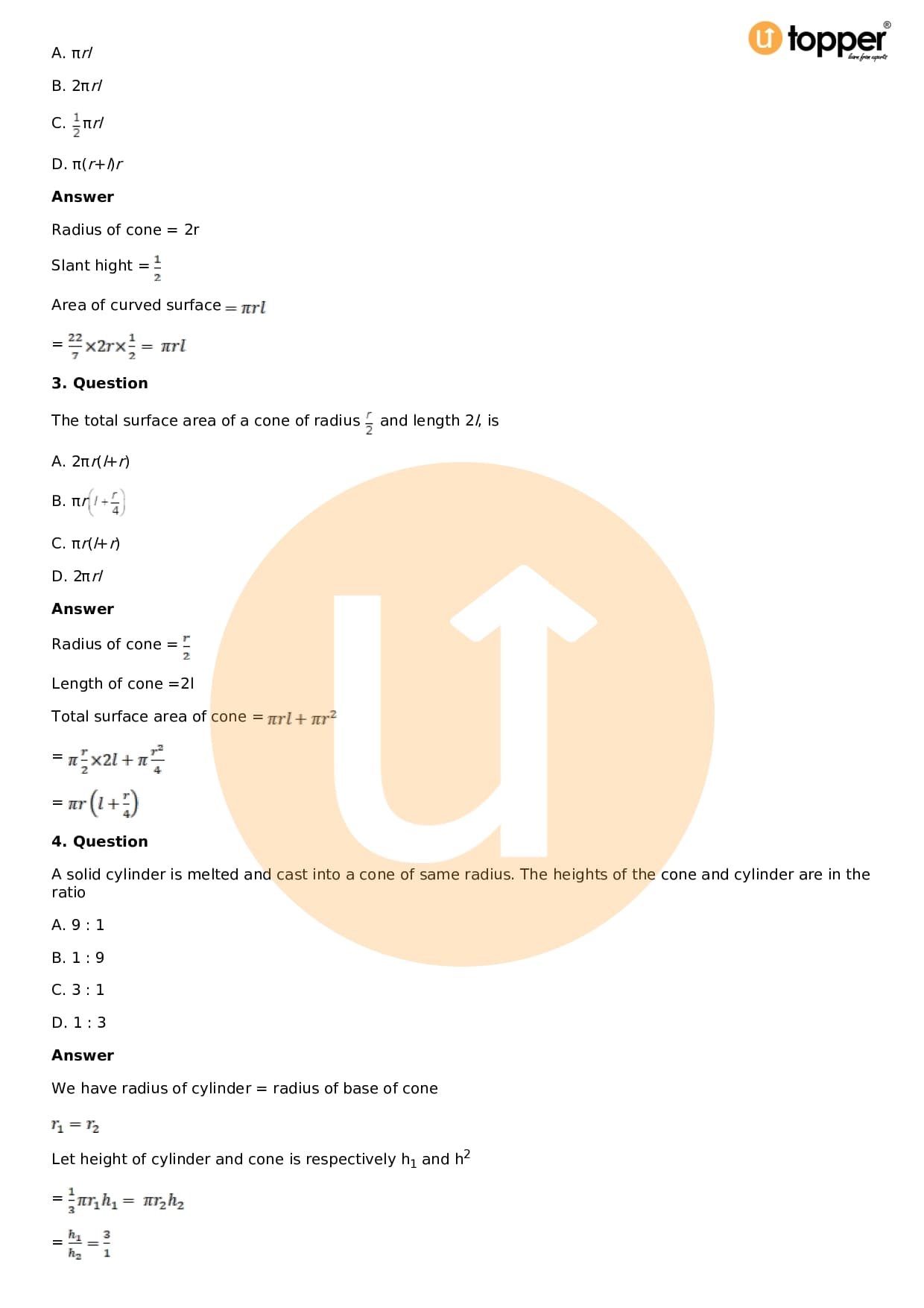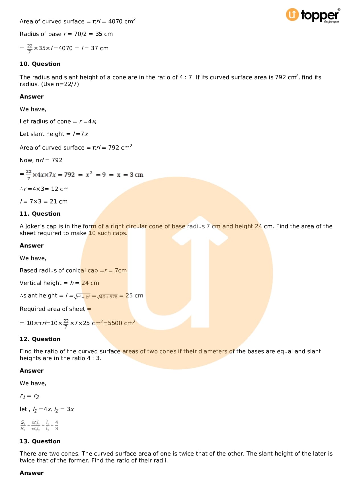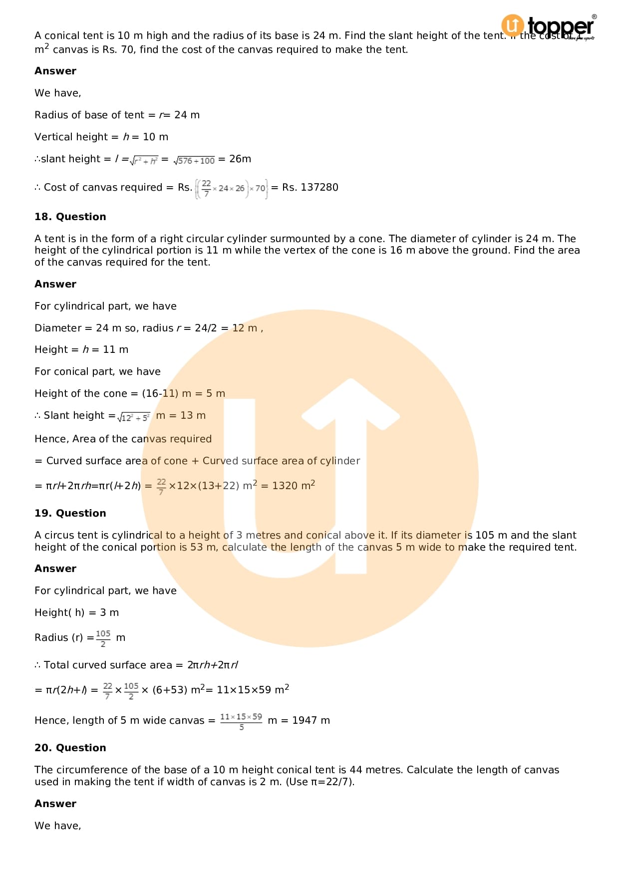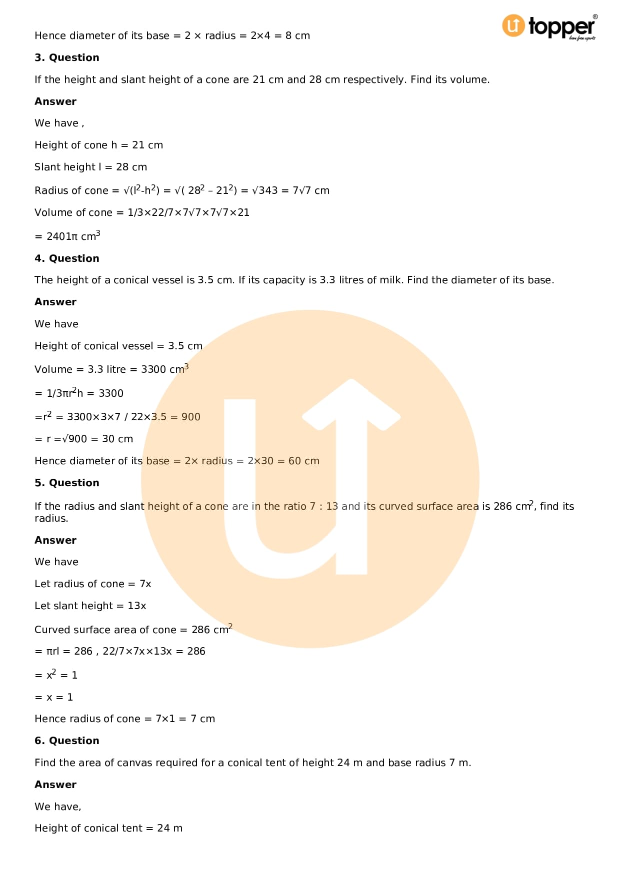 - Chapter 20 – Surface Area and Volume of A Right Circular Cone