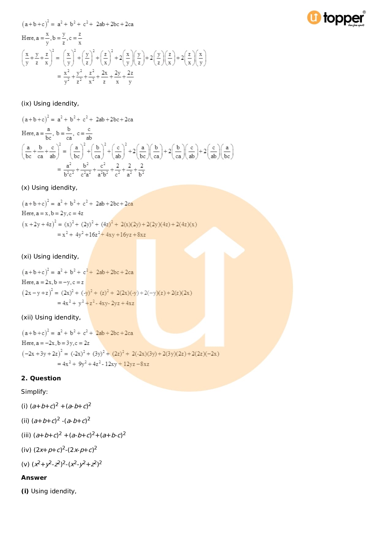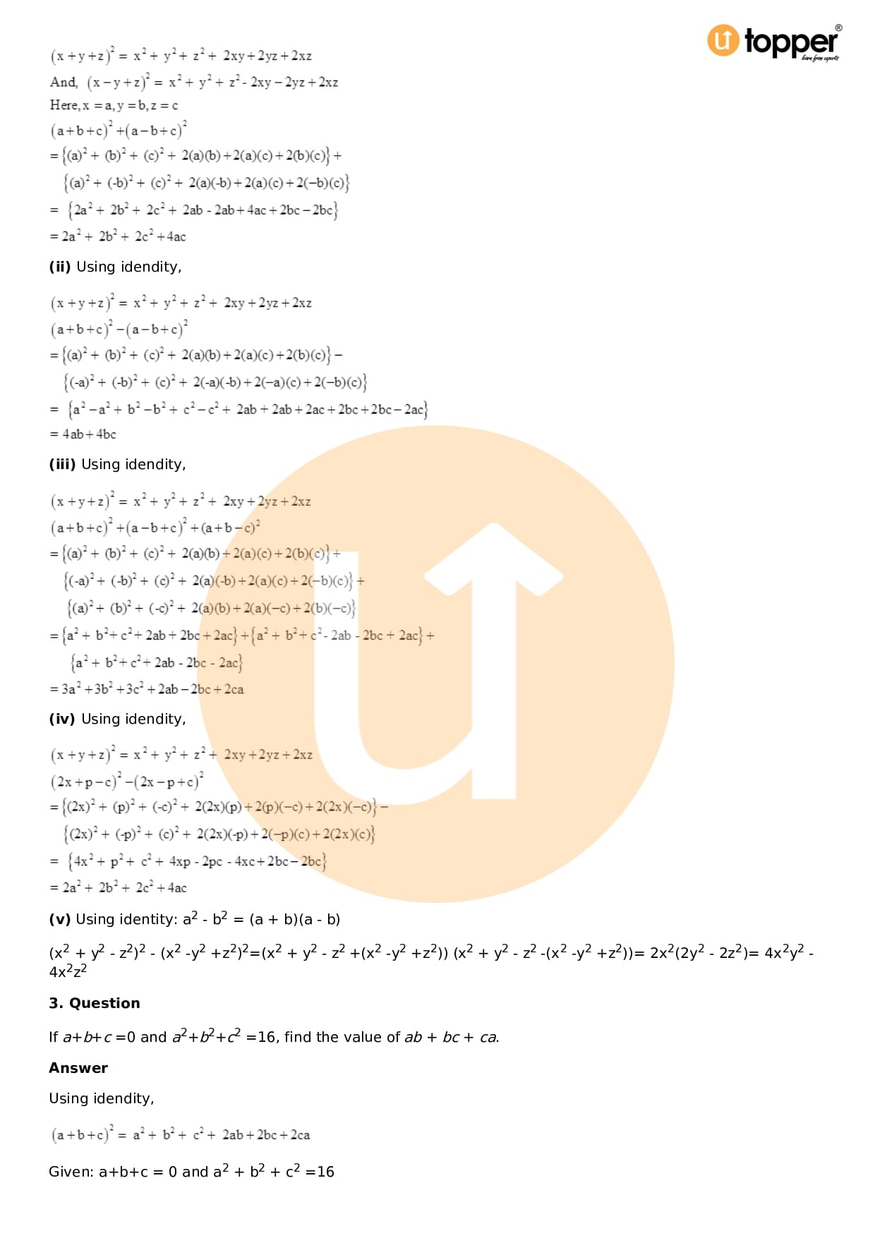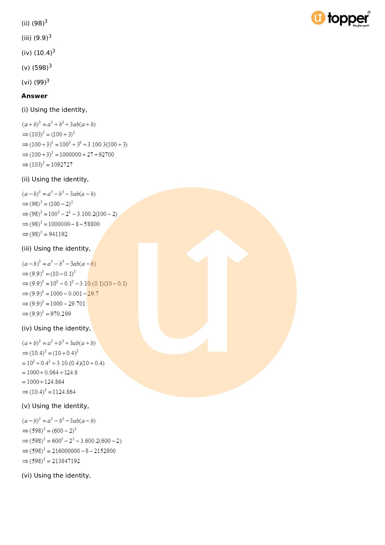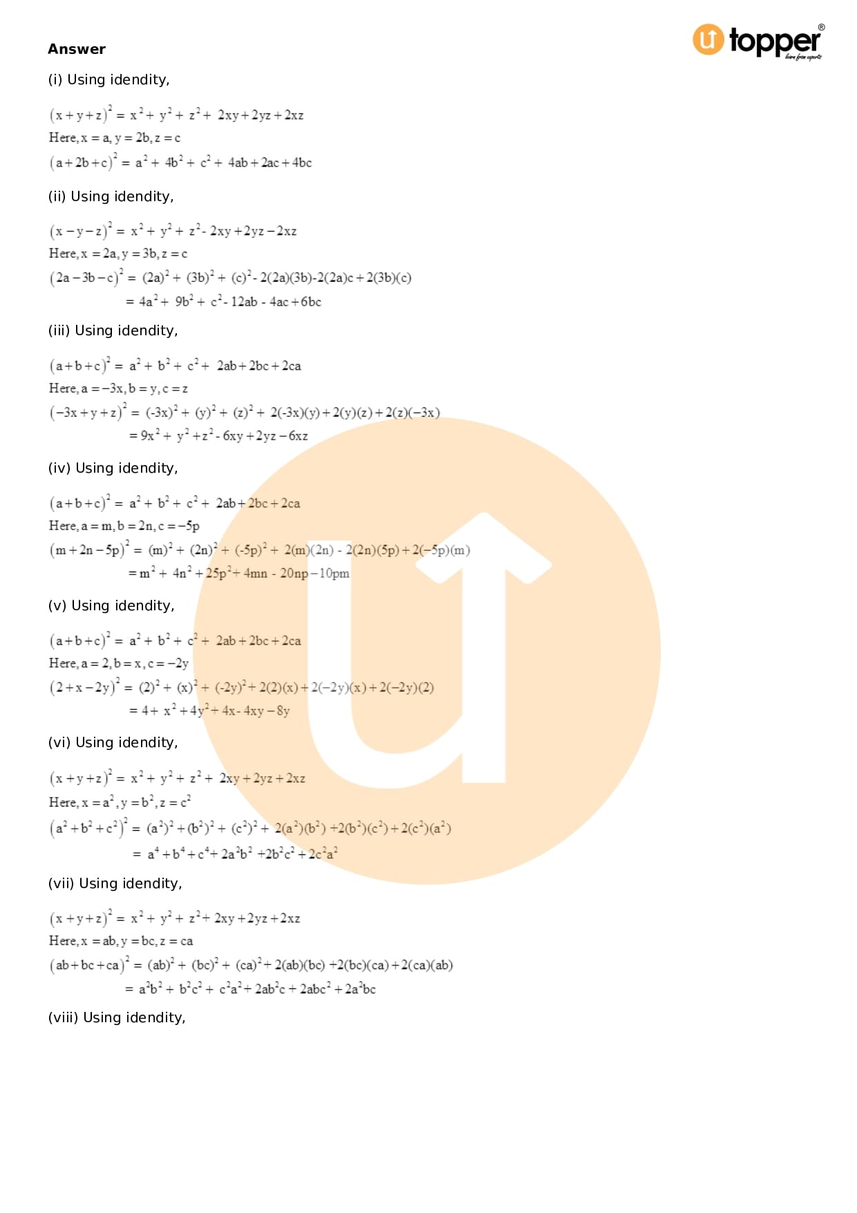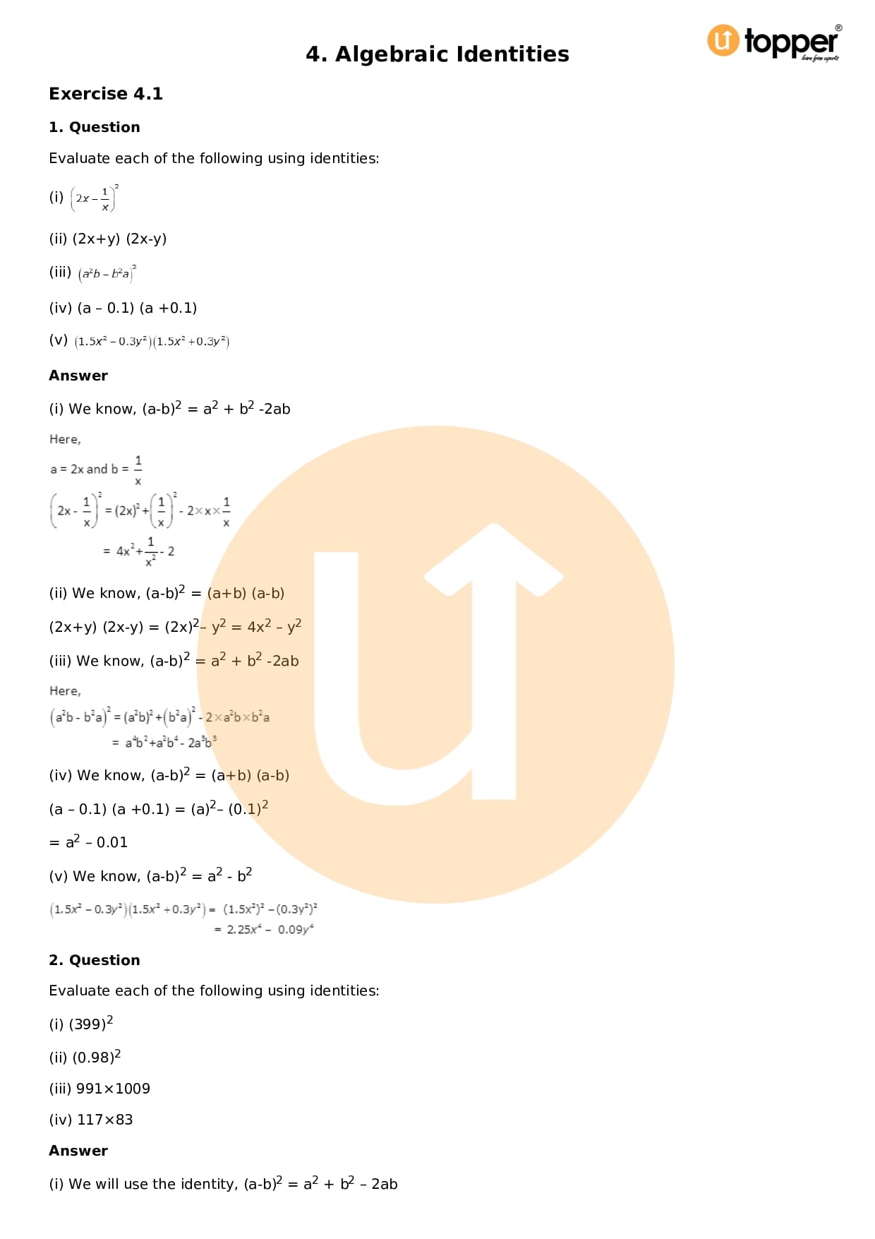 RD Sharma Class 9 Maths Chapter 4 Algebraic Identities Solutions PDF Download