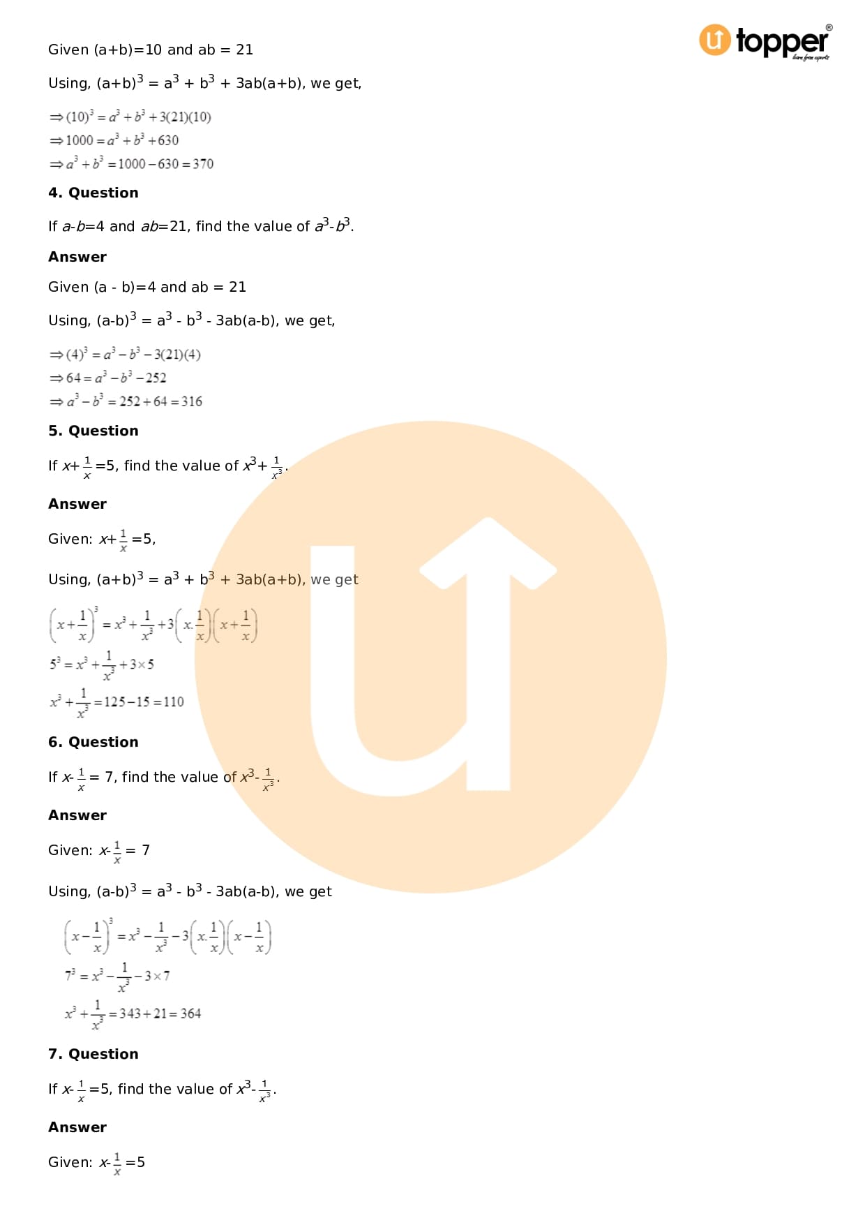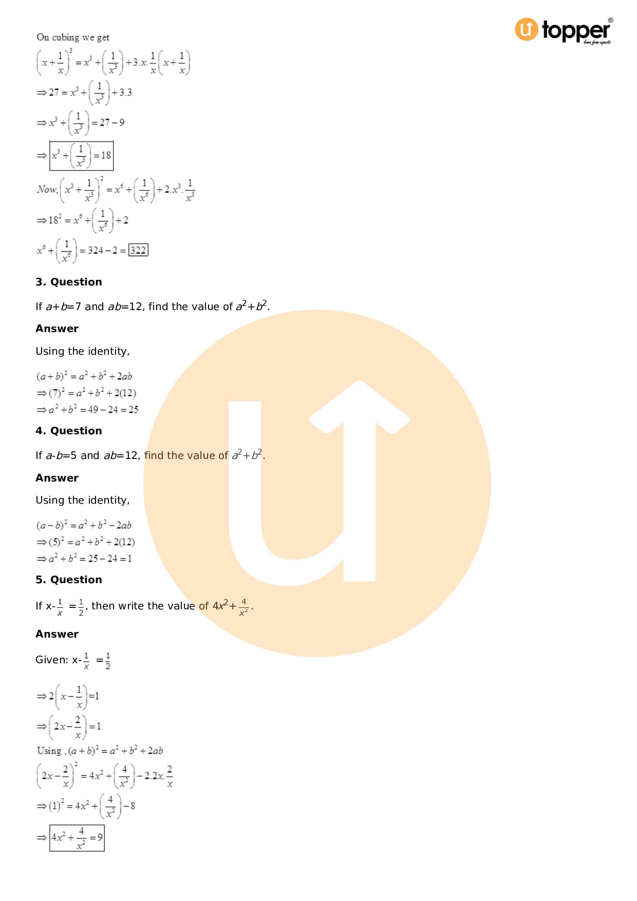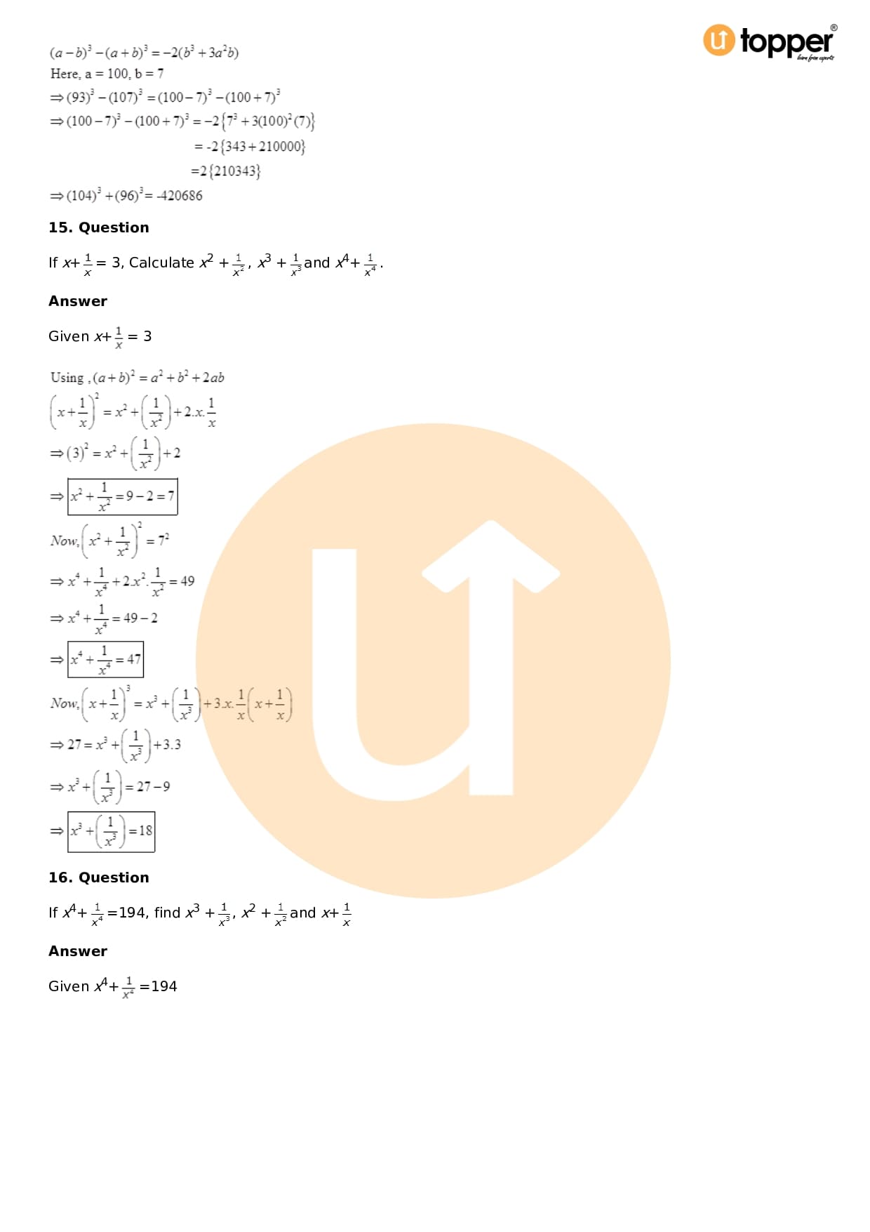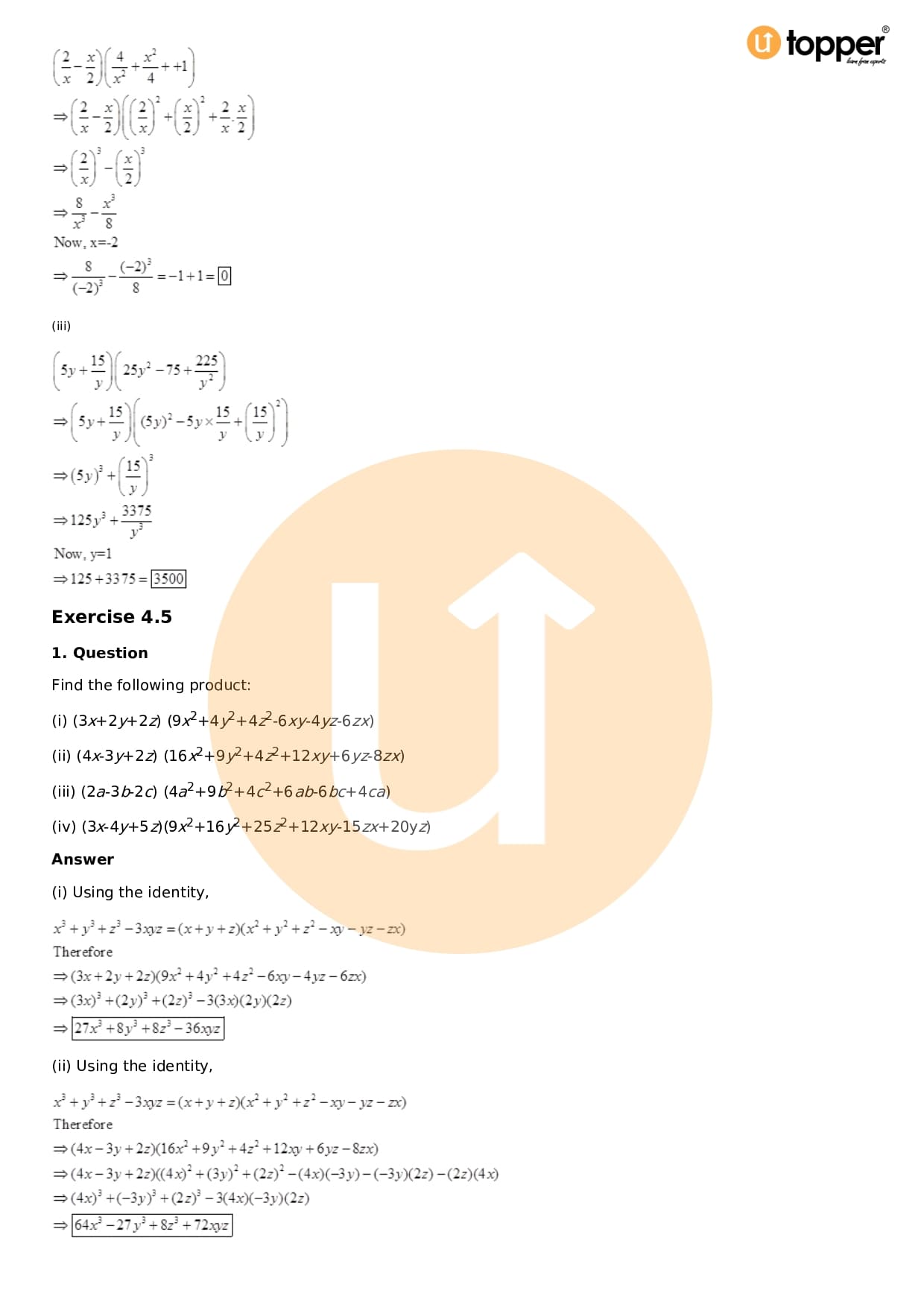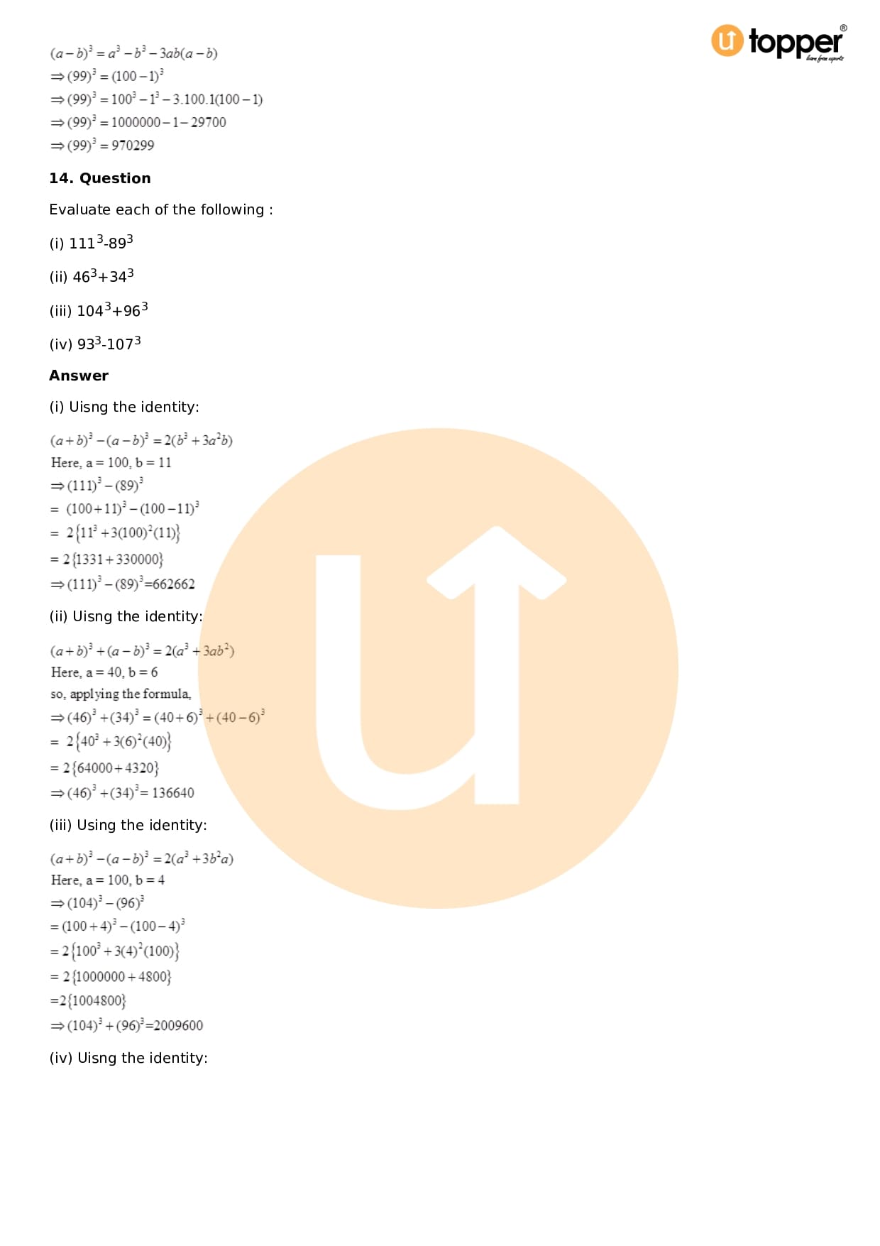 RD Sharma Class 9 Maths Chapter 4 Algebraic Identities Solutions PDF Download
