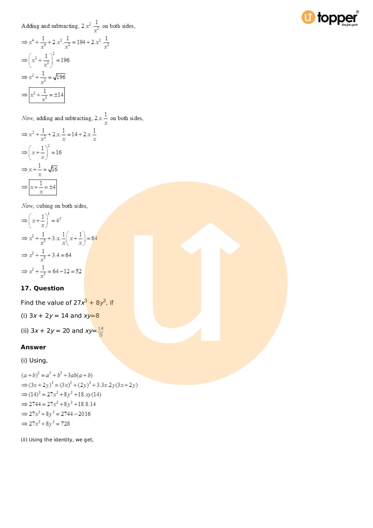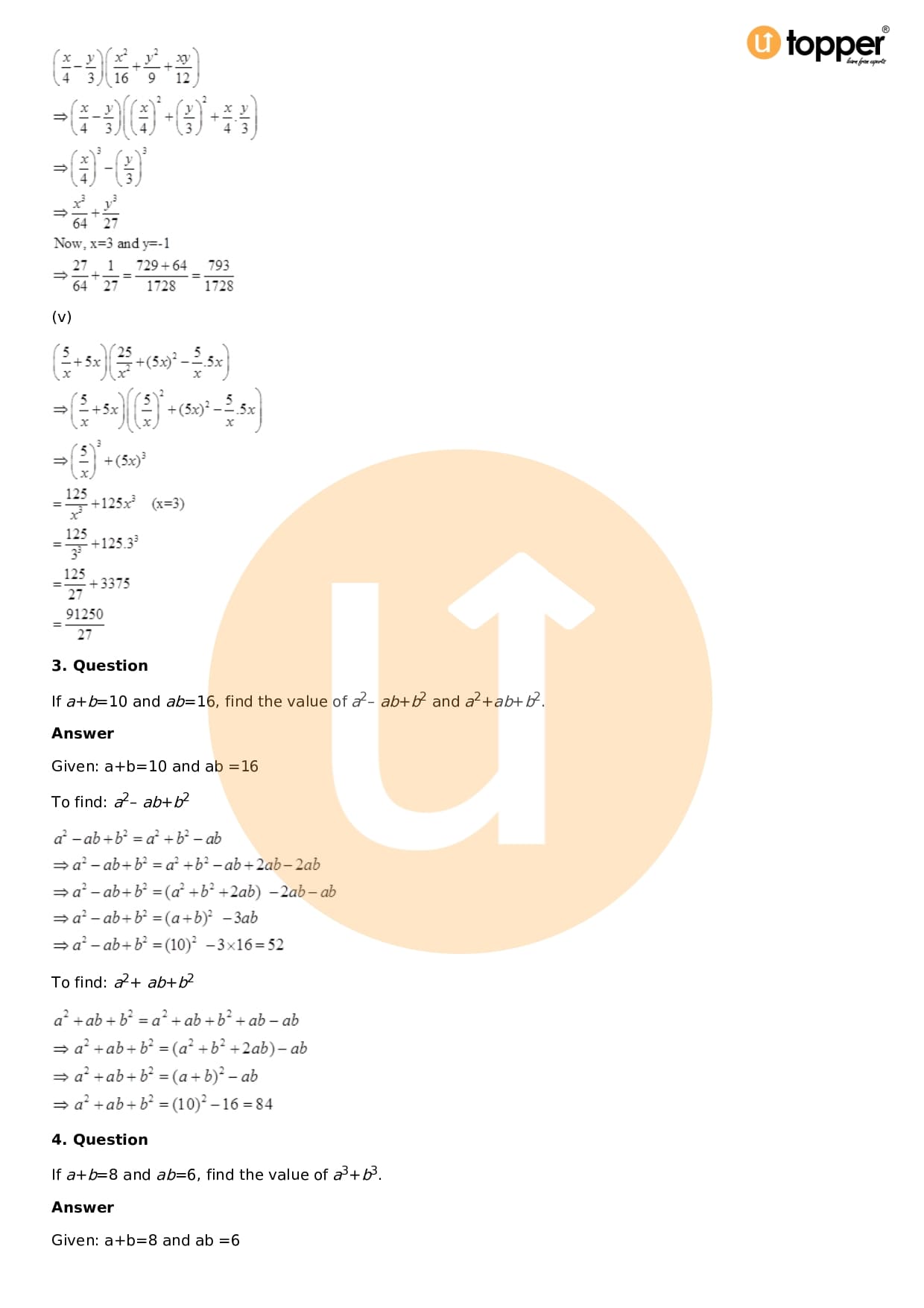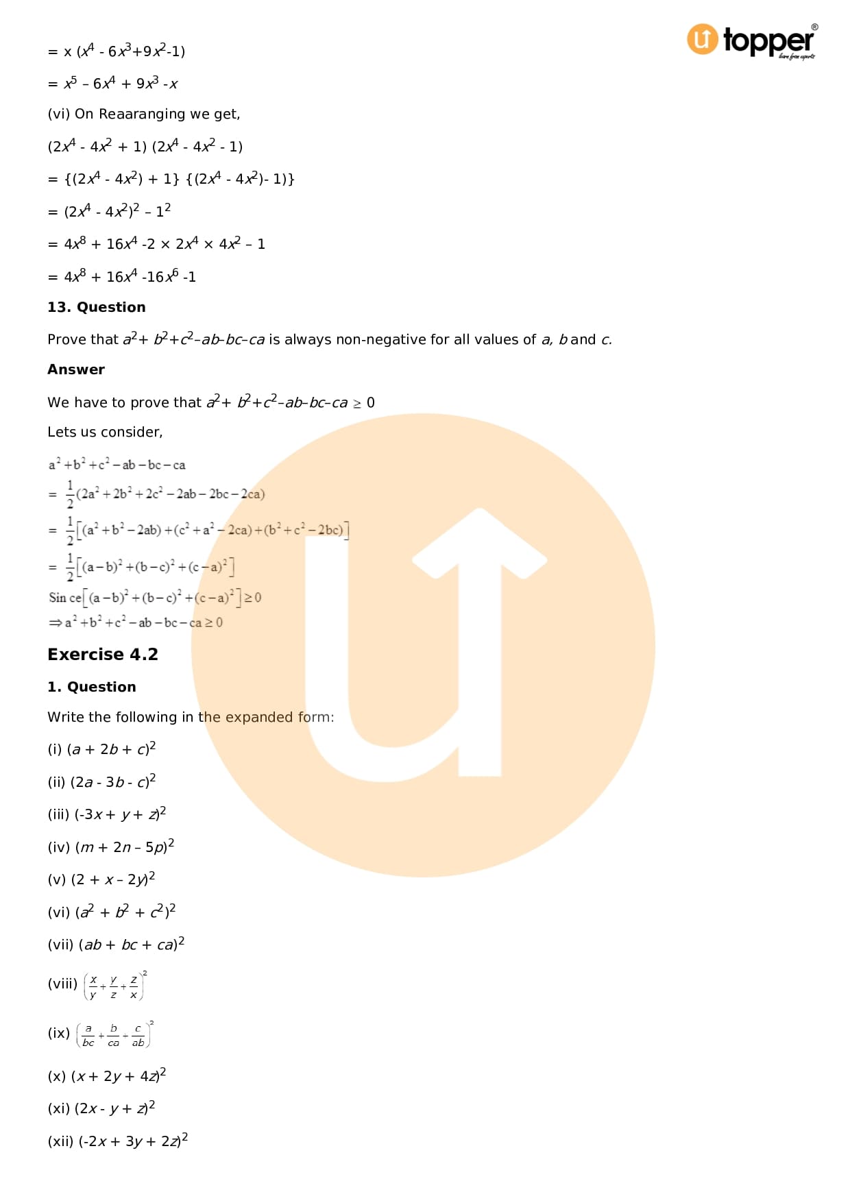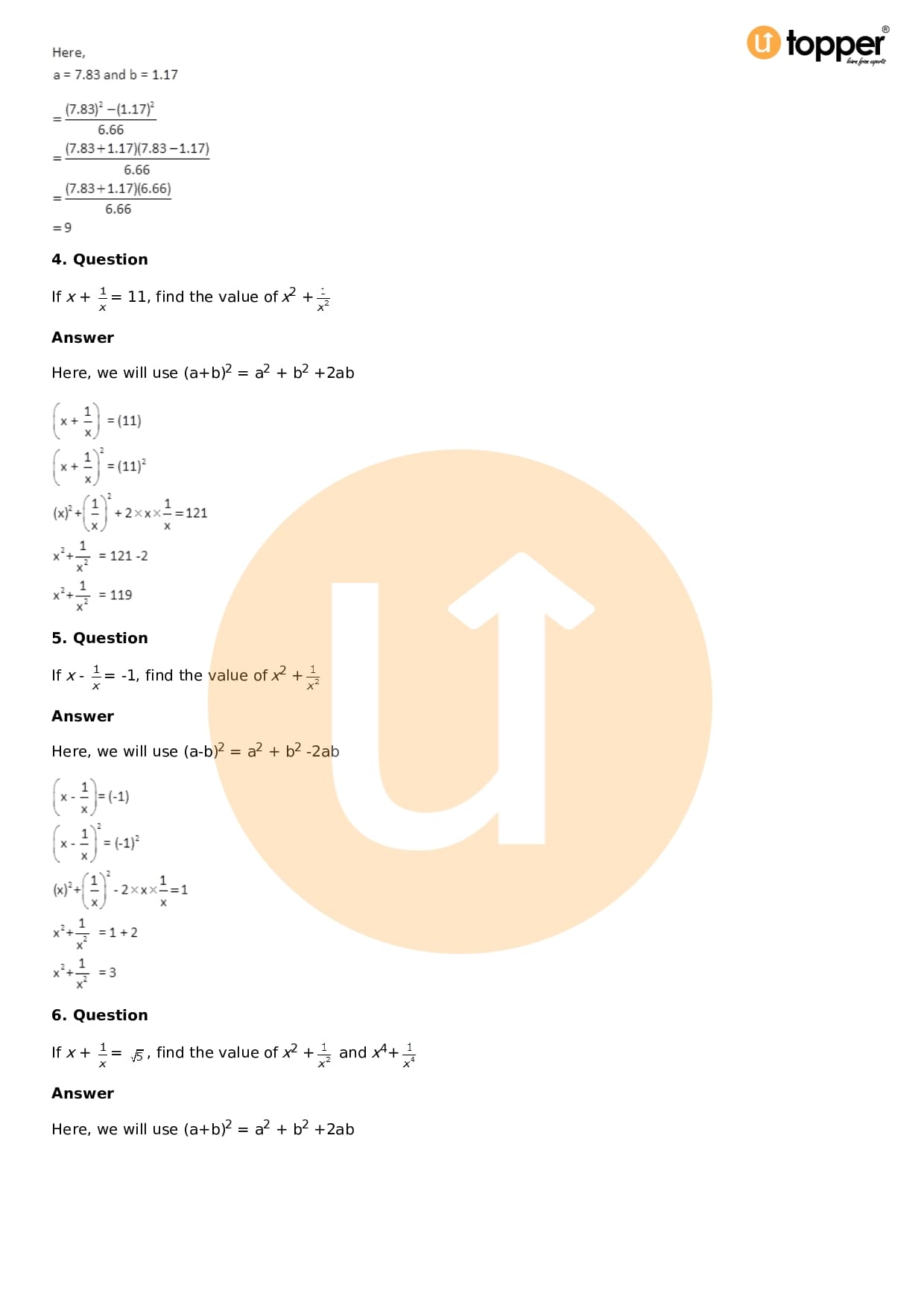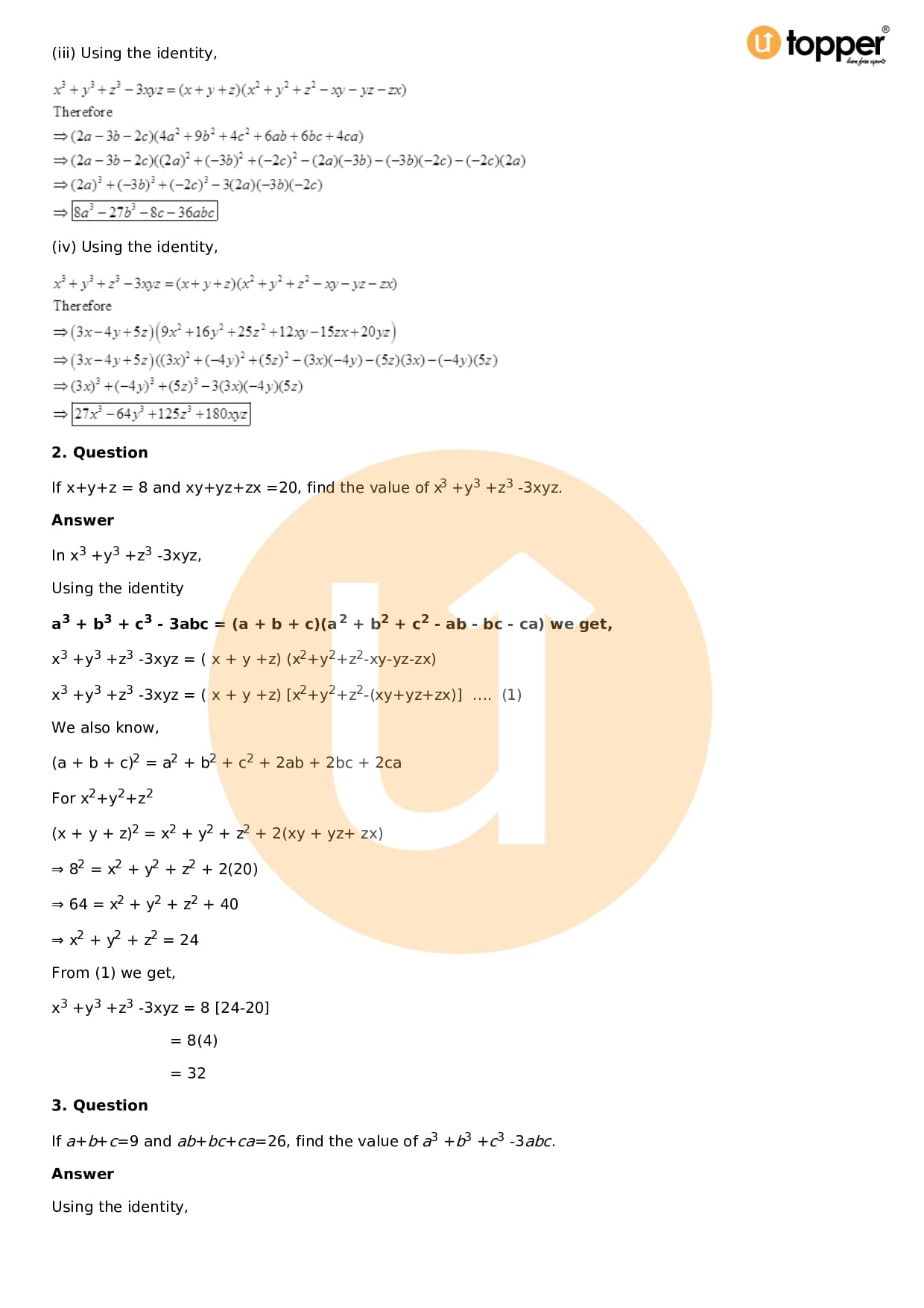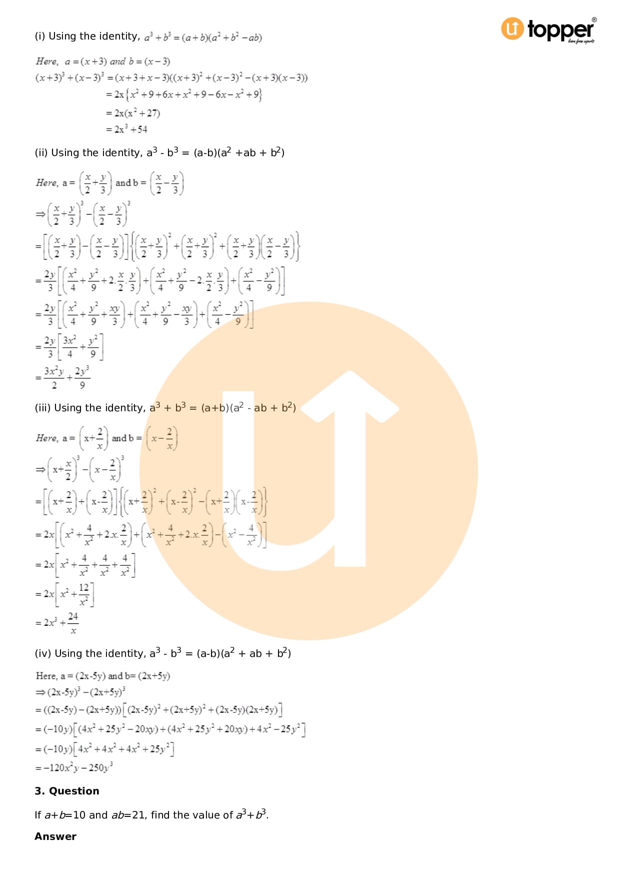 RD Sharma Class 9 Maths Chapter 4 Algebraic Identities Solutions PDF Download