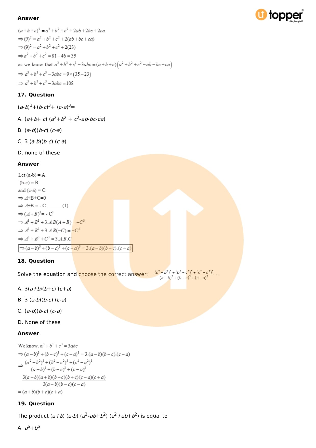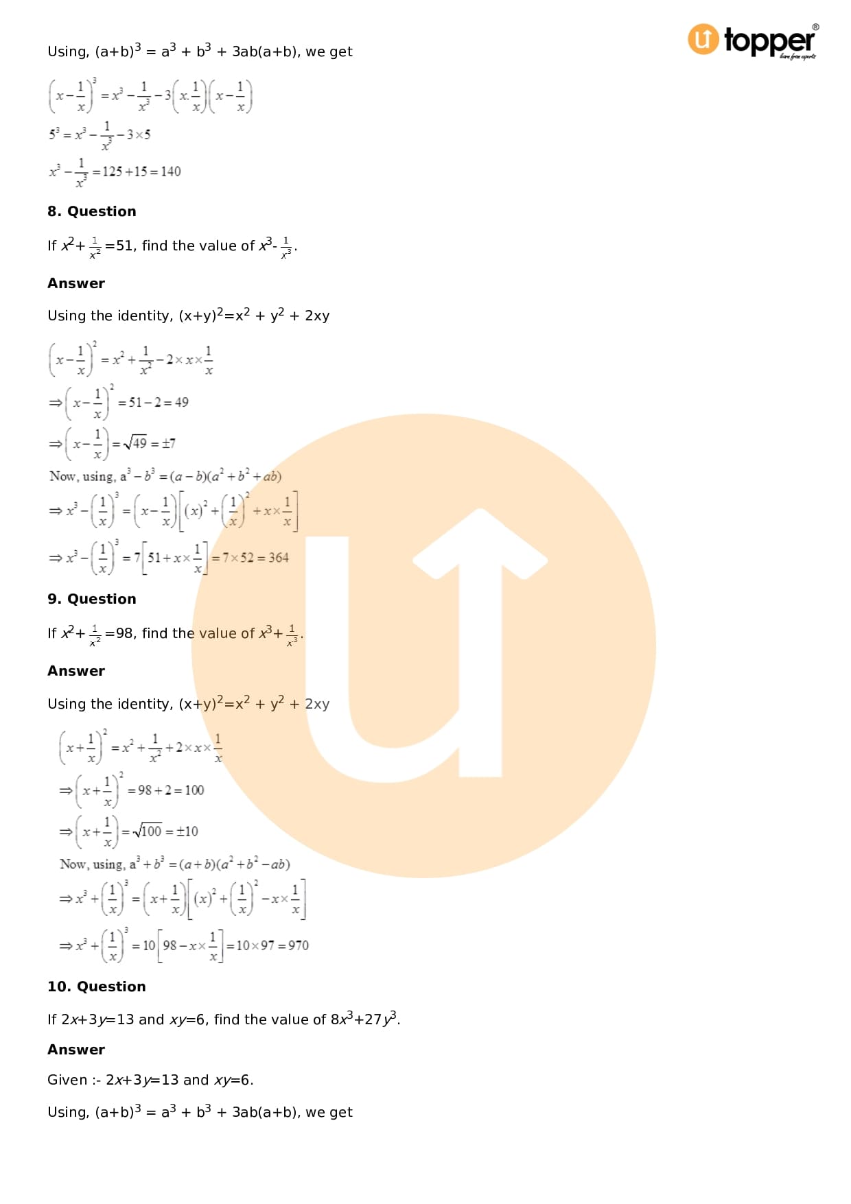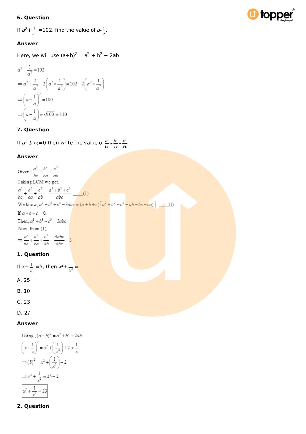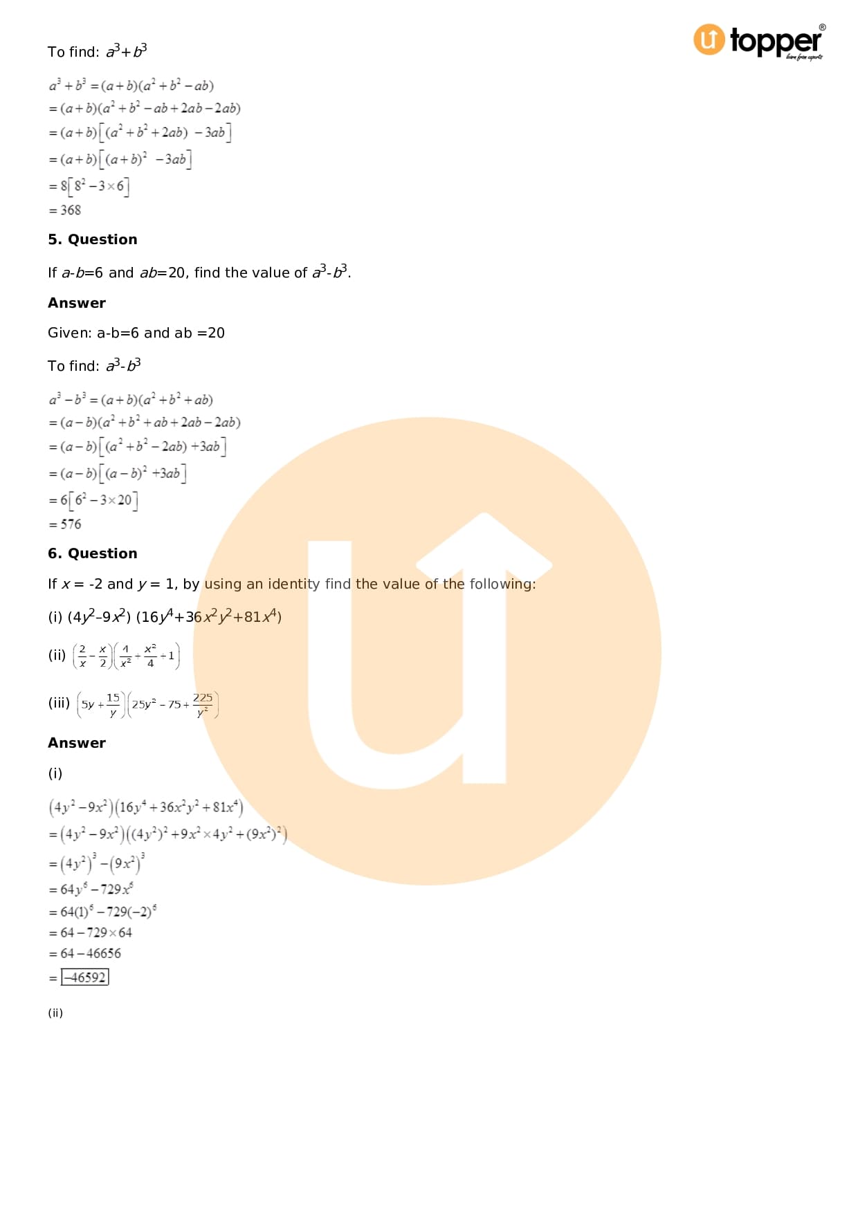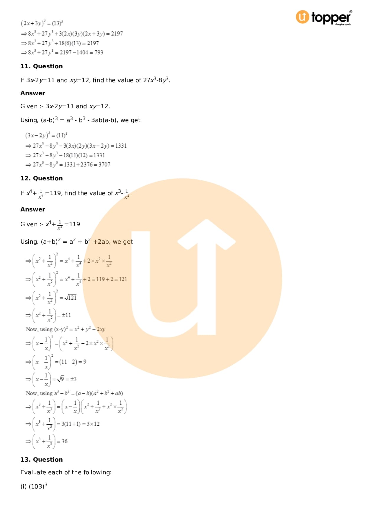 RD Sharma Class 9 Maths Chapter 4 Algebraic Identities Solutions PDF Download