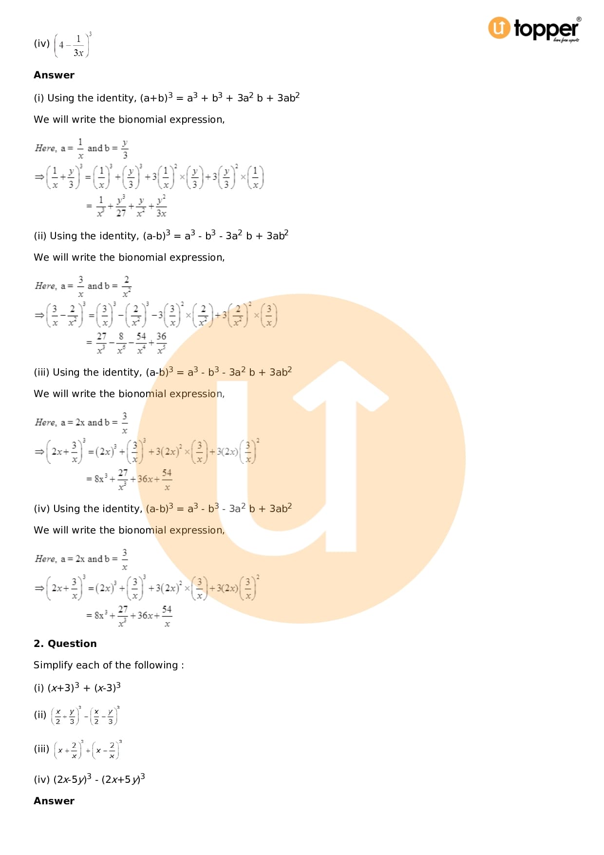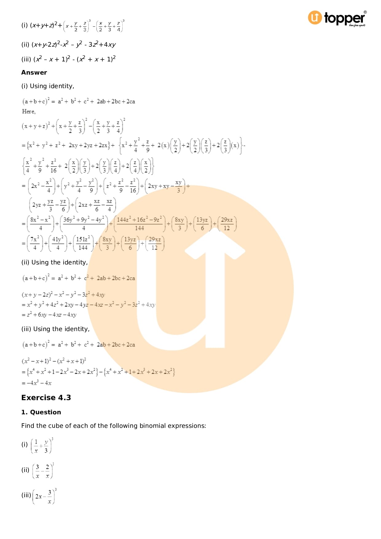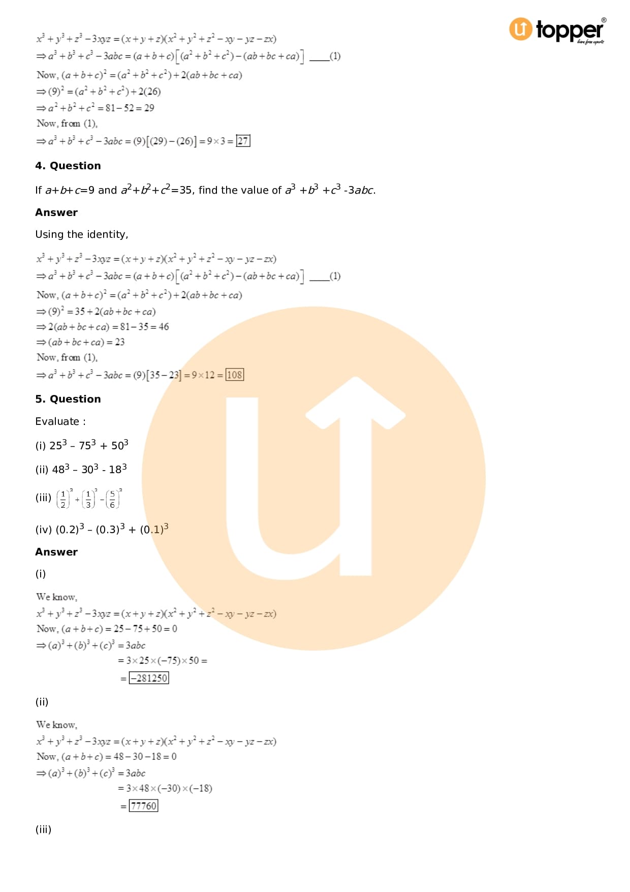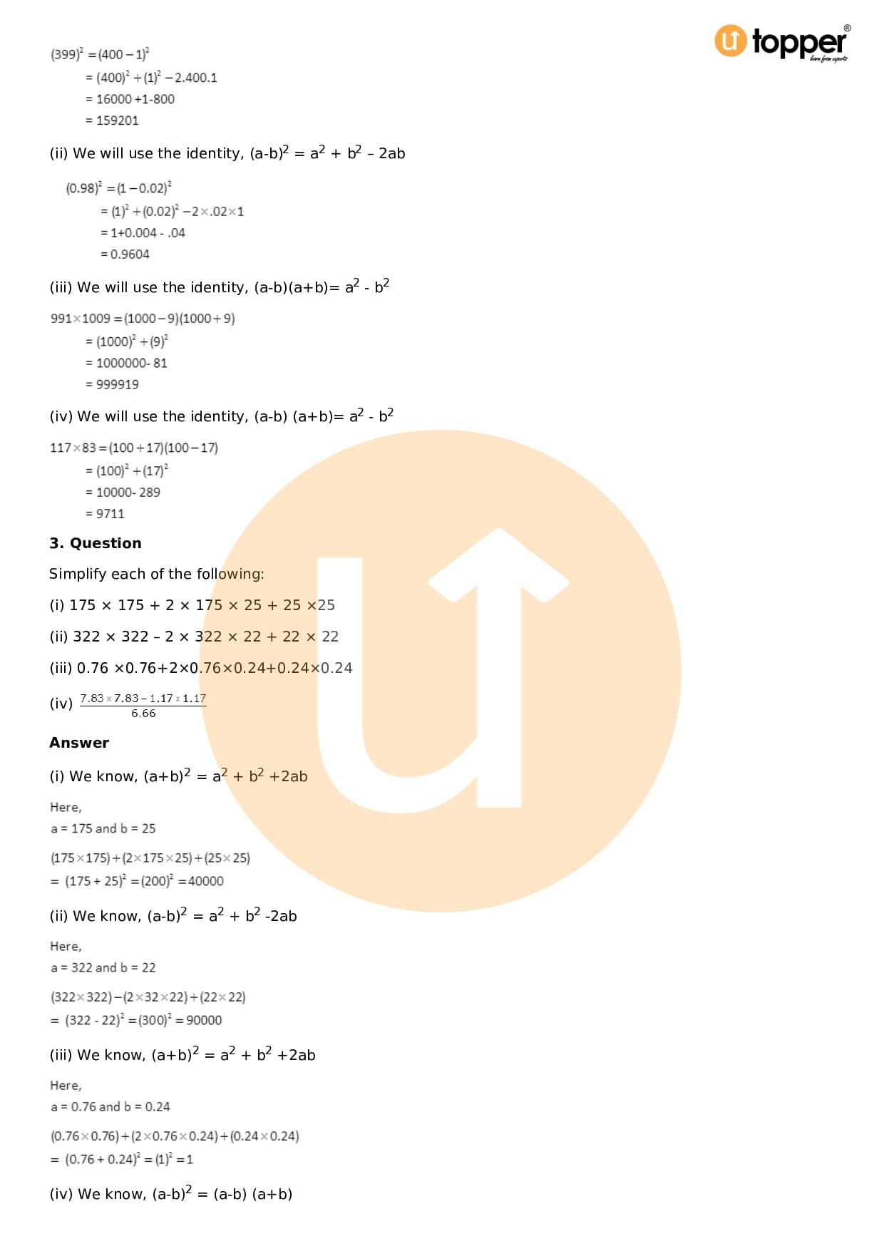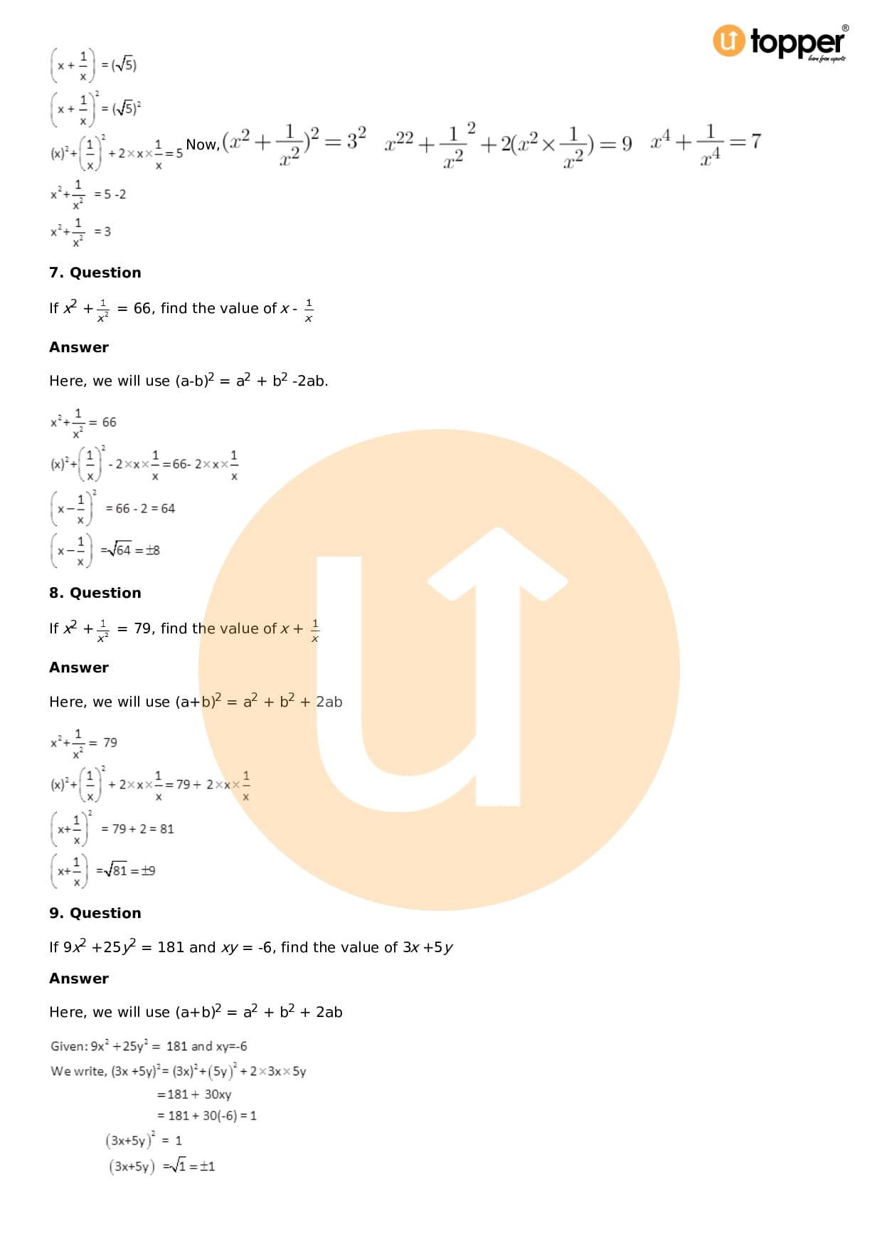 RD Sharma Class 9 Maths Chapter 4 Algebraic Identities Solutions PDF Download