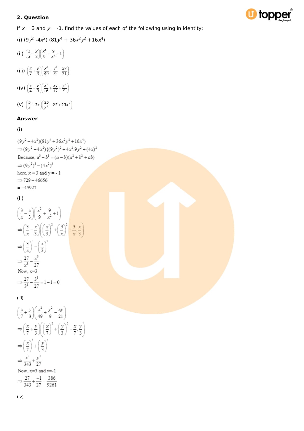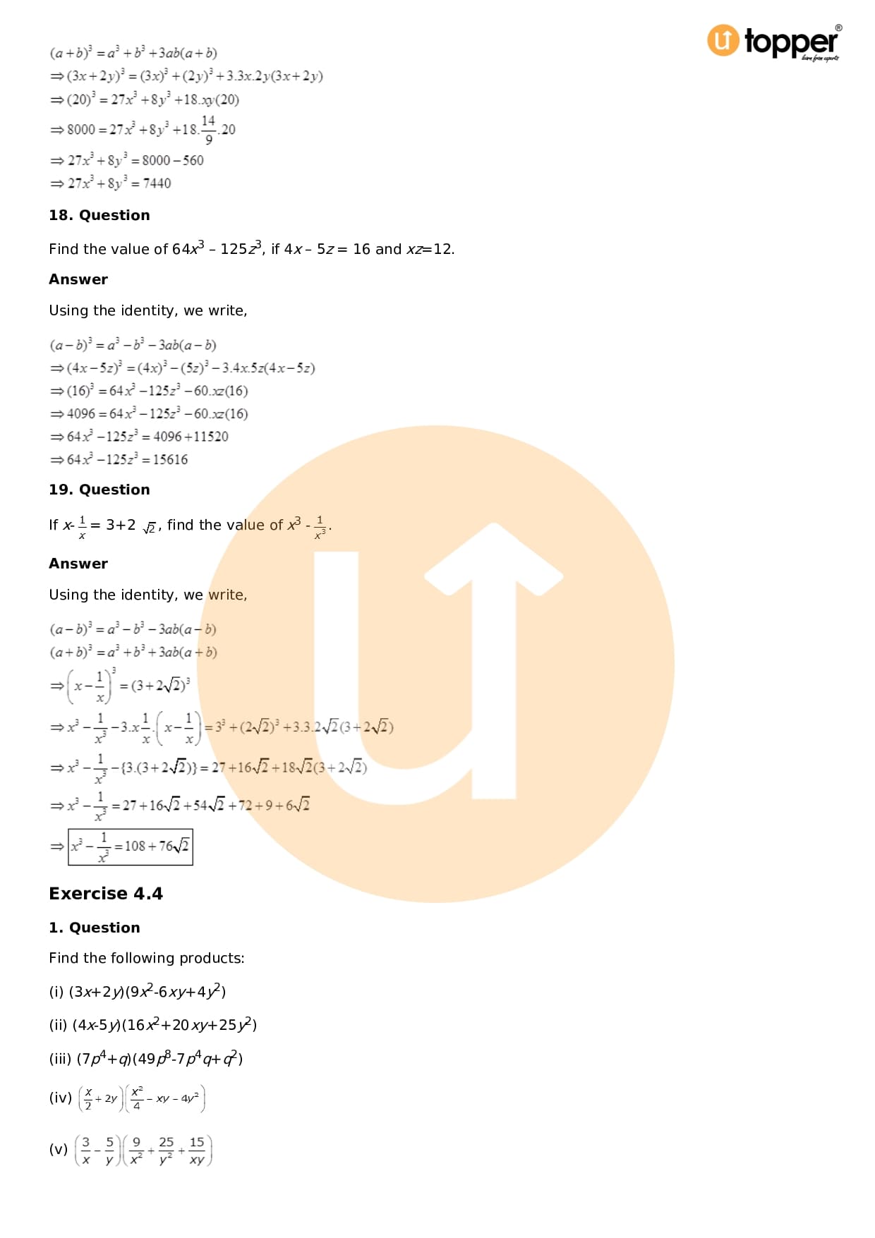 RD Sharma Class 9 Maths Solutions Chapter 4 Algebraic Identities
