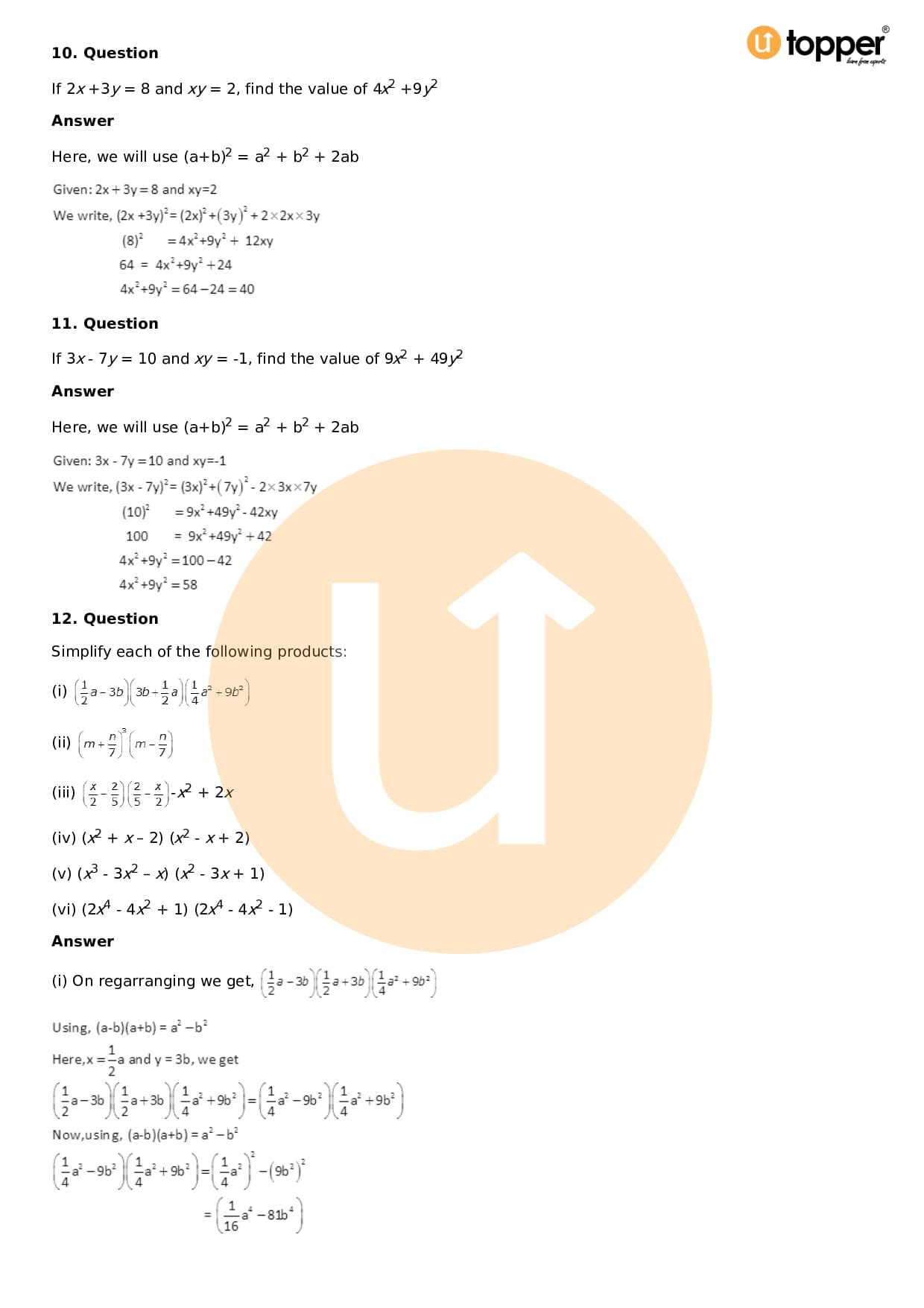 Download the latest version of RD Sharma Solutions for Class 9 Maths Chapter 4 Algebraic Identities PDF at Utopper. It provides step by step Solution PDF. You can download RD Sharma Maths Solutions with a free PDF download option, which includes chapter wise solutions. All the questions in RD Sharma Solutions have been solved and explained by expert mathematics teachers as per the CBSE Board guidelines. By studying these Maths Solutions, you can easily get good marks in the CBSE board exams.