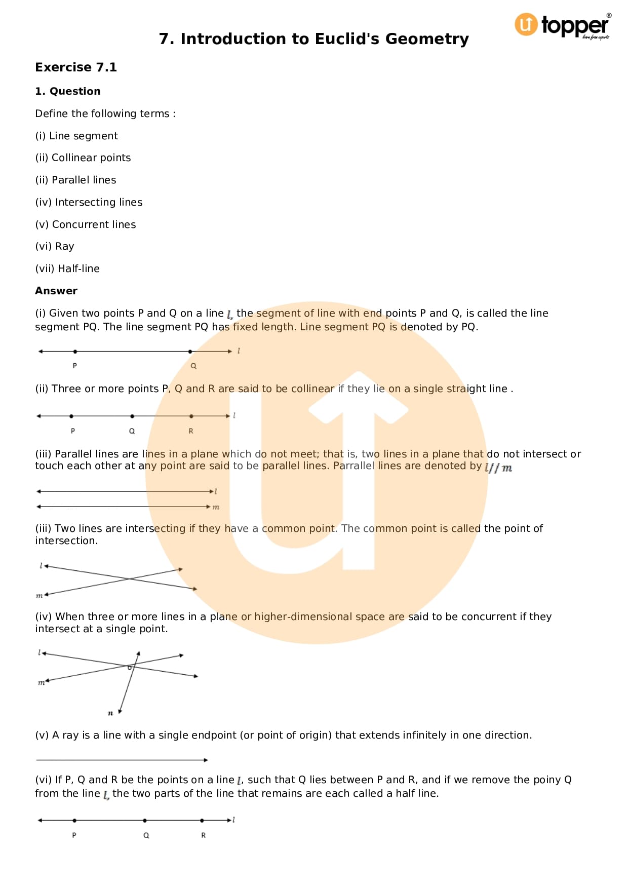 • Chapter 7 – Introduction to Euclid’s Geometry