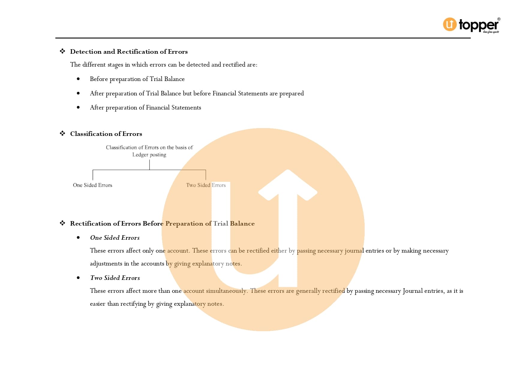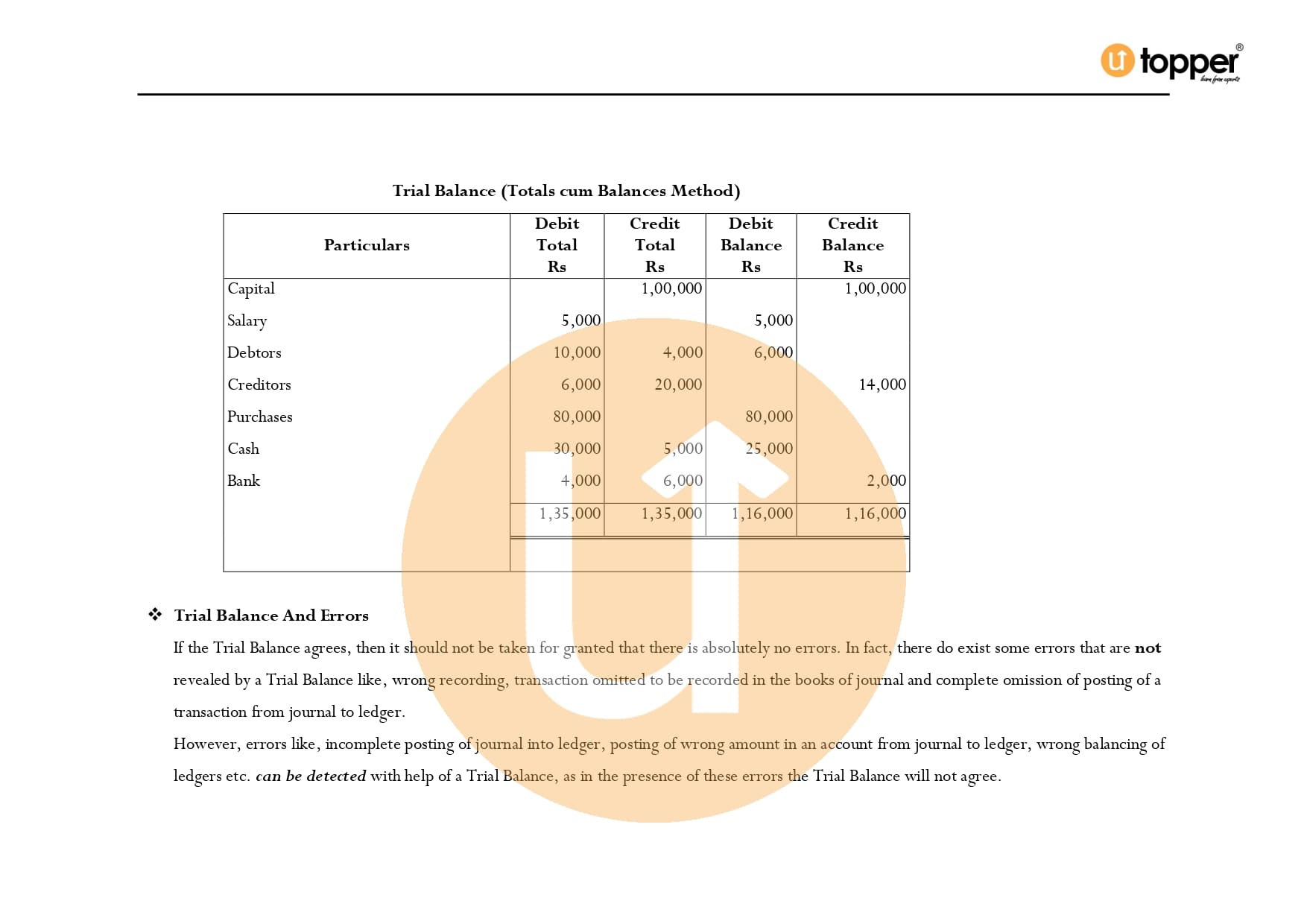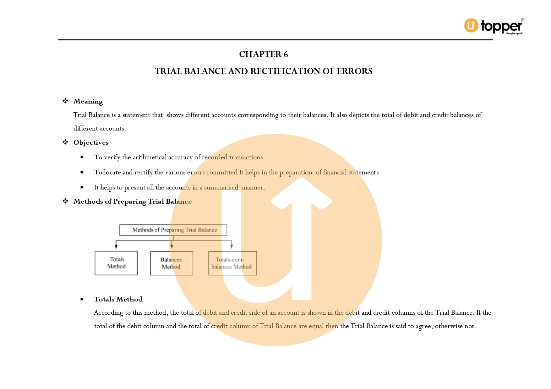 Class 11 Accountancy Study Notes Chapter 6 Pdf – Trial Balance and Rectification of Errors