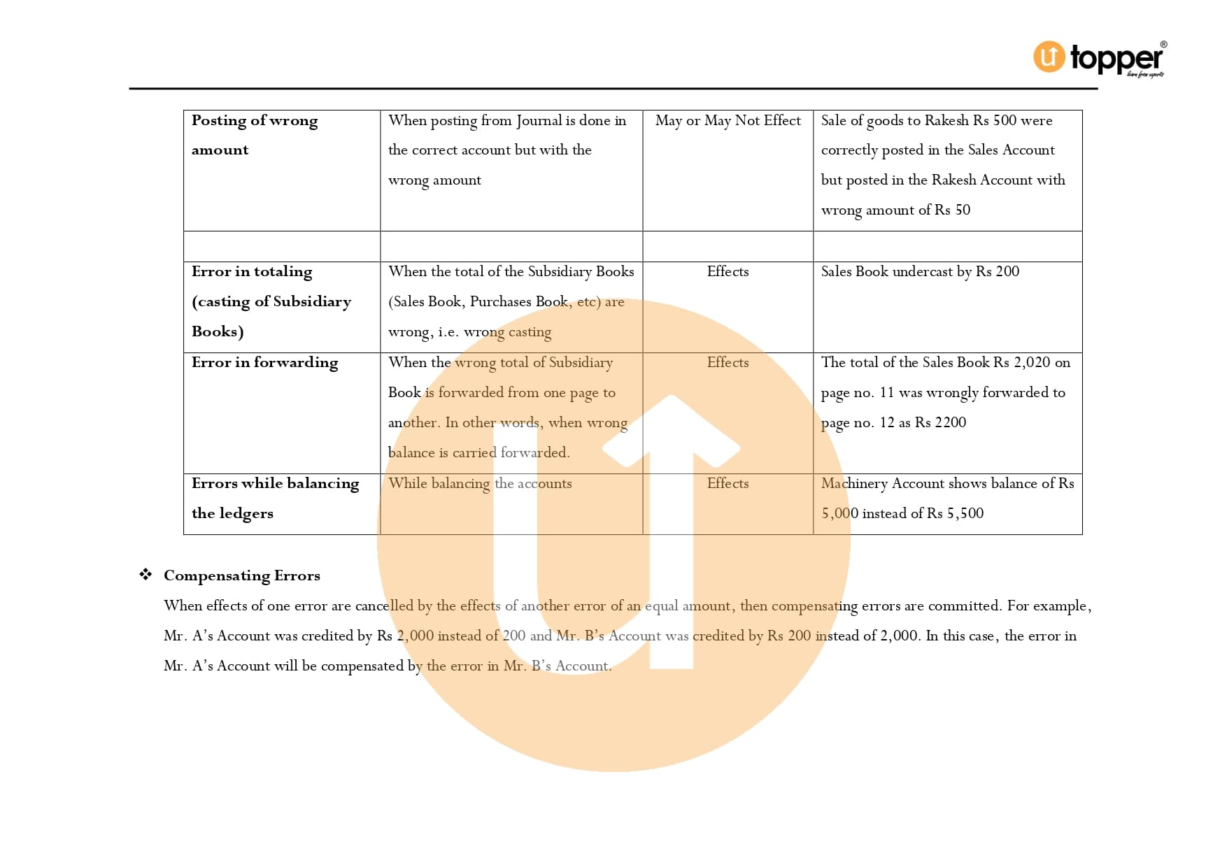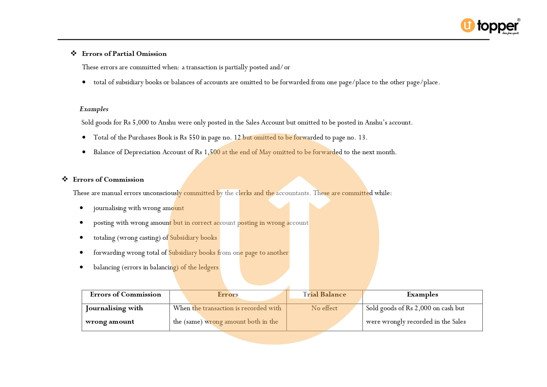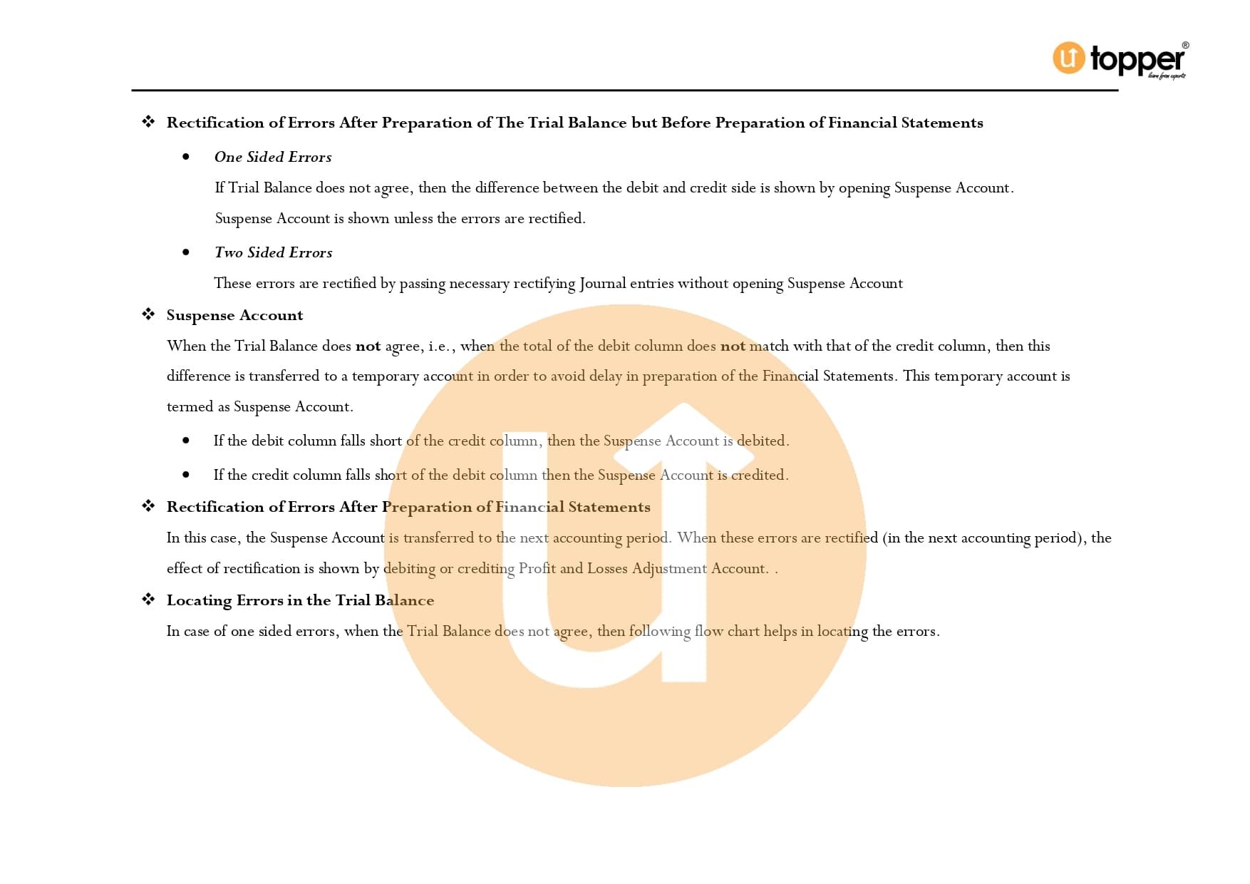 Class 11 Accountancy Study Notes Chapter 6 Pdf – Trial Balance and Rectification of Errors
