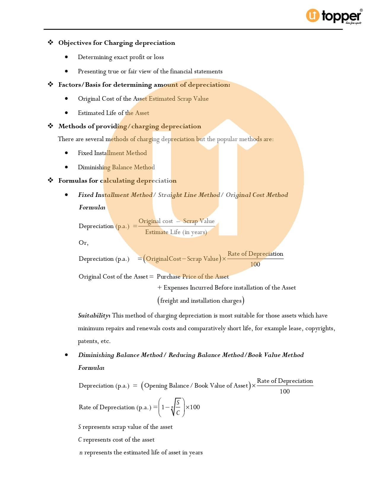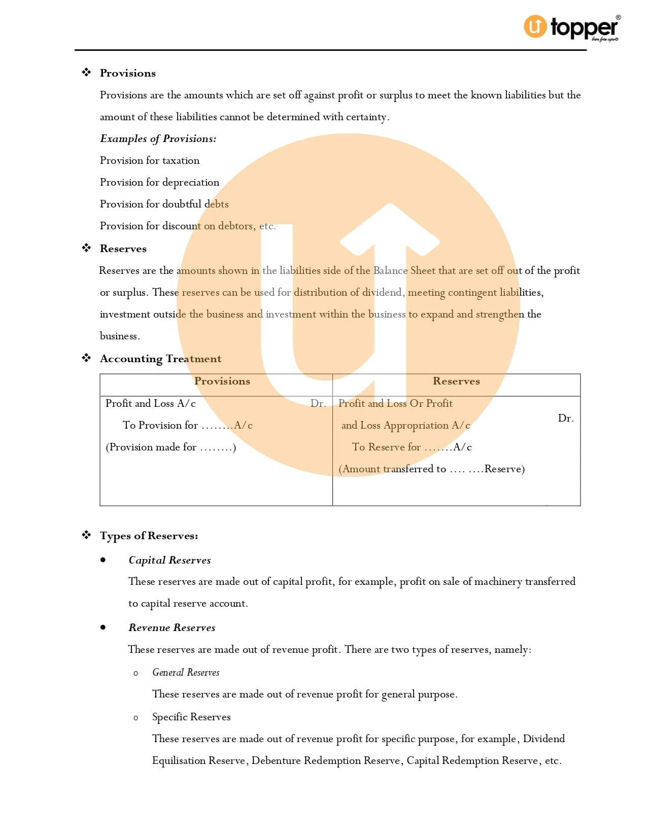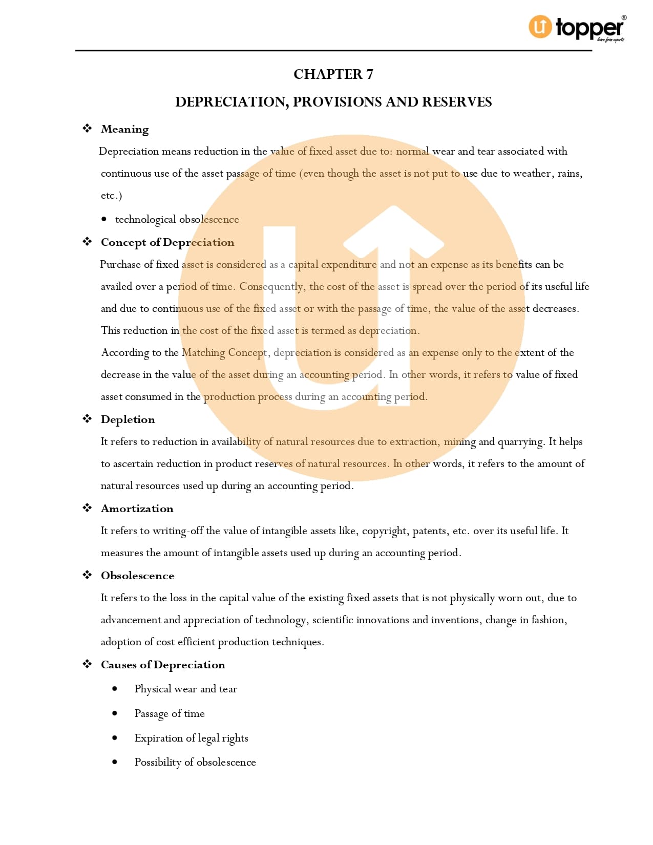 Class 11 Accountancy CBSE Revision Notes 7 – Depreciation, Provisions and Reserves