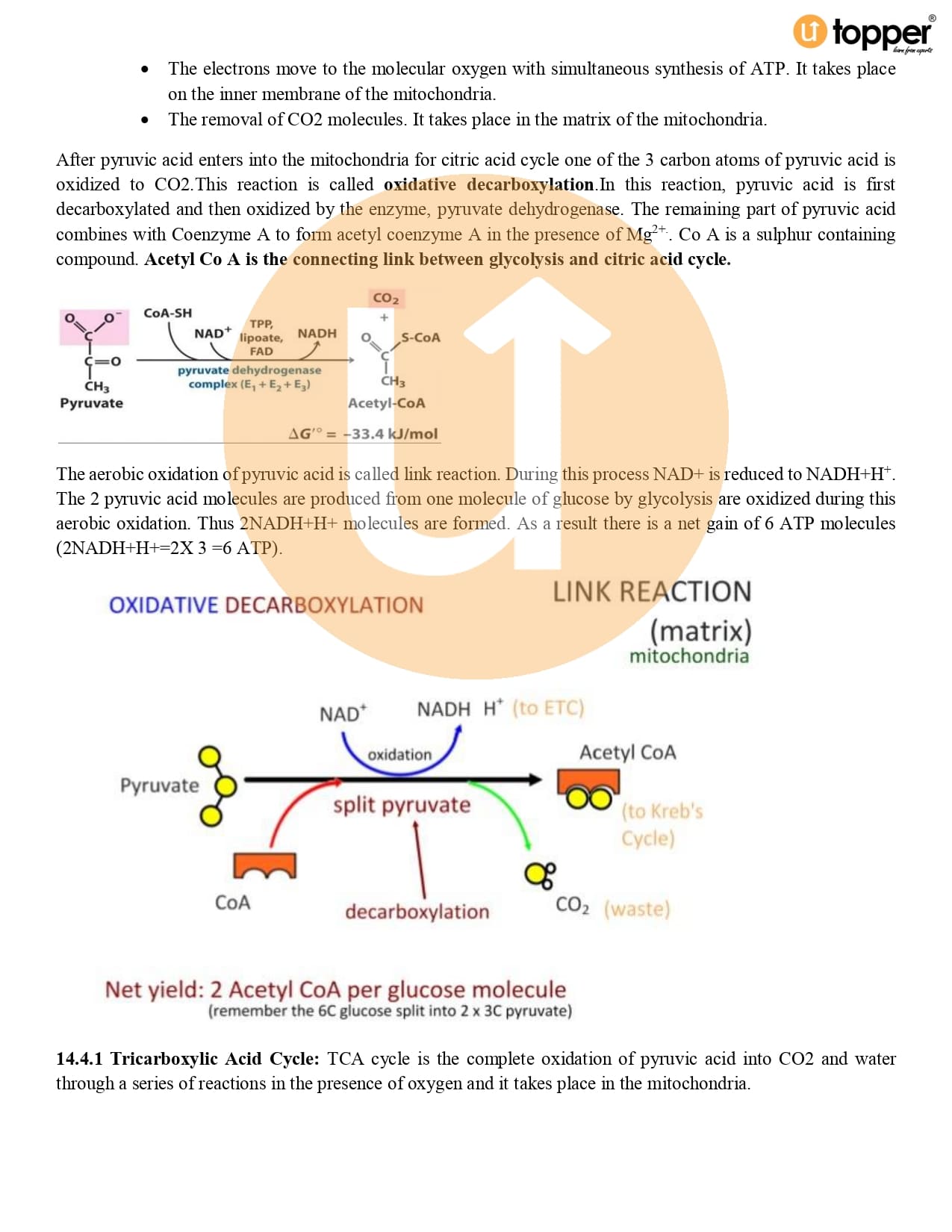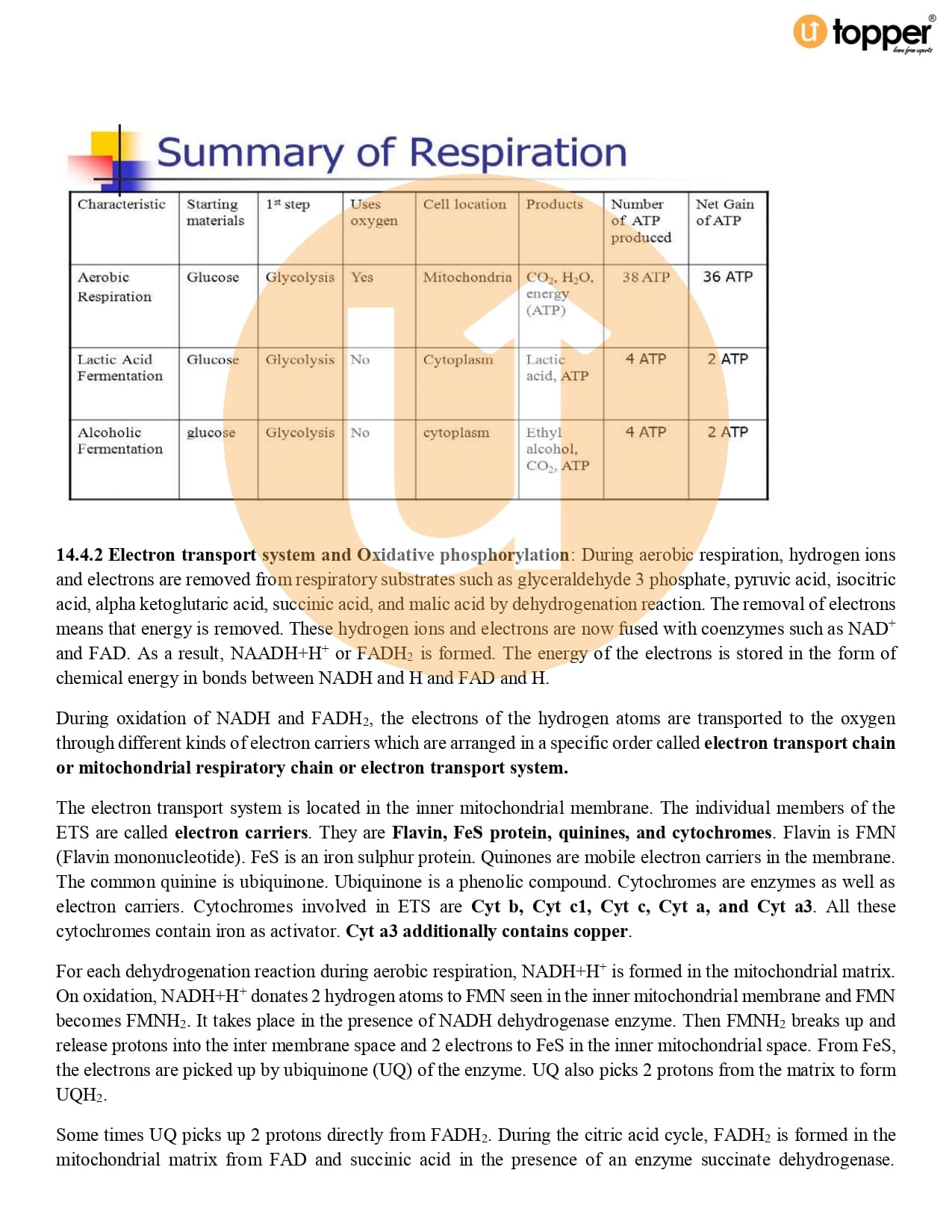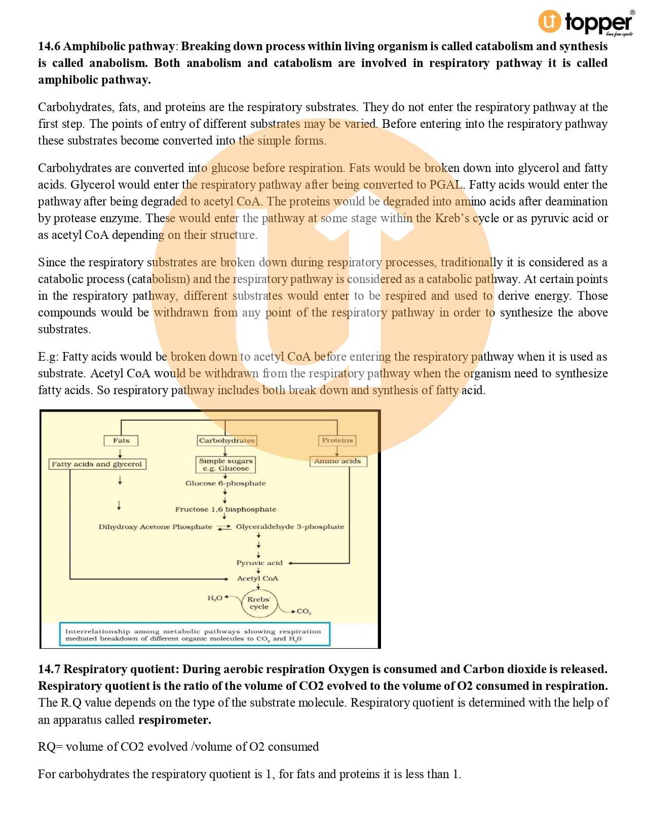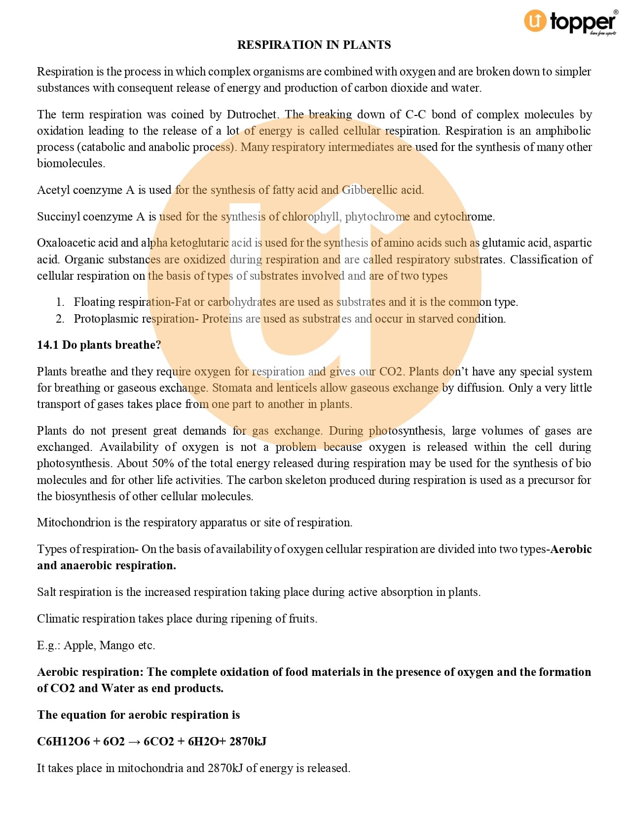Class 11 Biology Notes Chapter 14 Pdf – Respiration in Plants