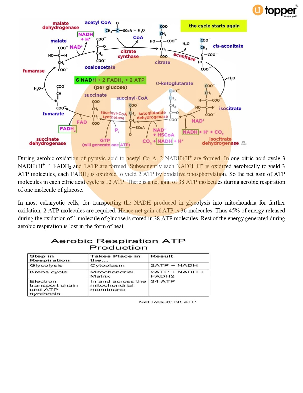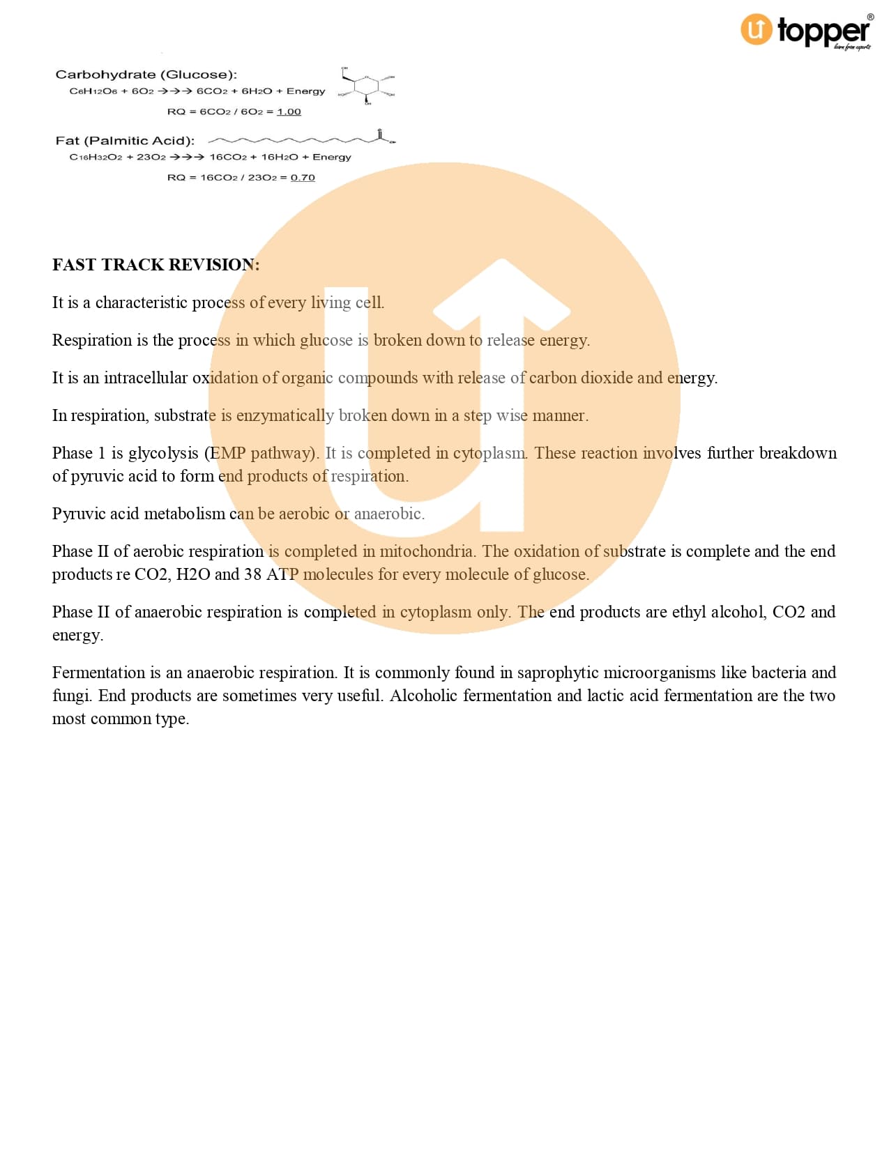 Class 11 Biology CBSE Revision Notes 14 – Respiration in Plants