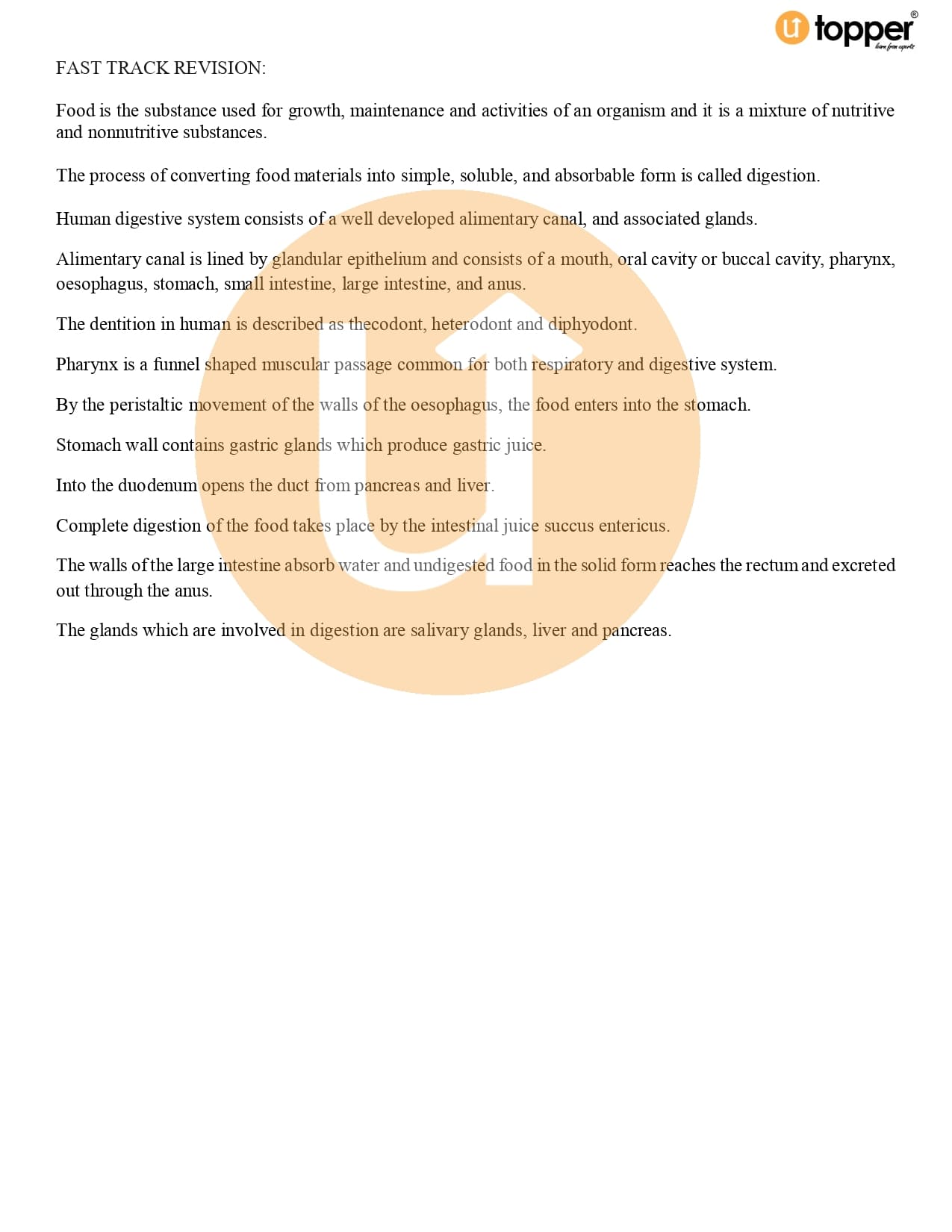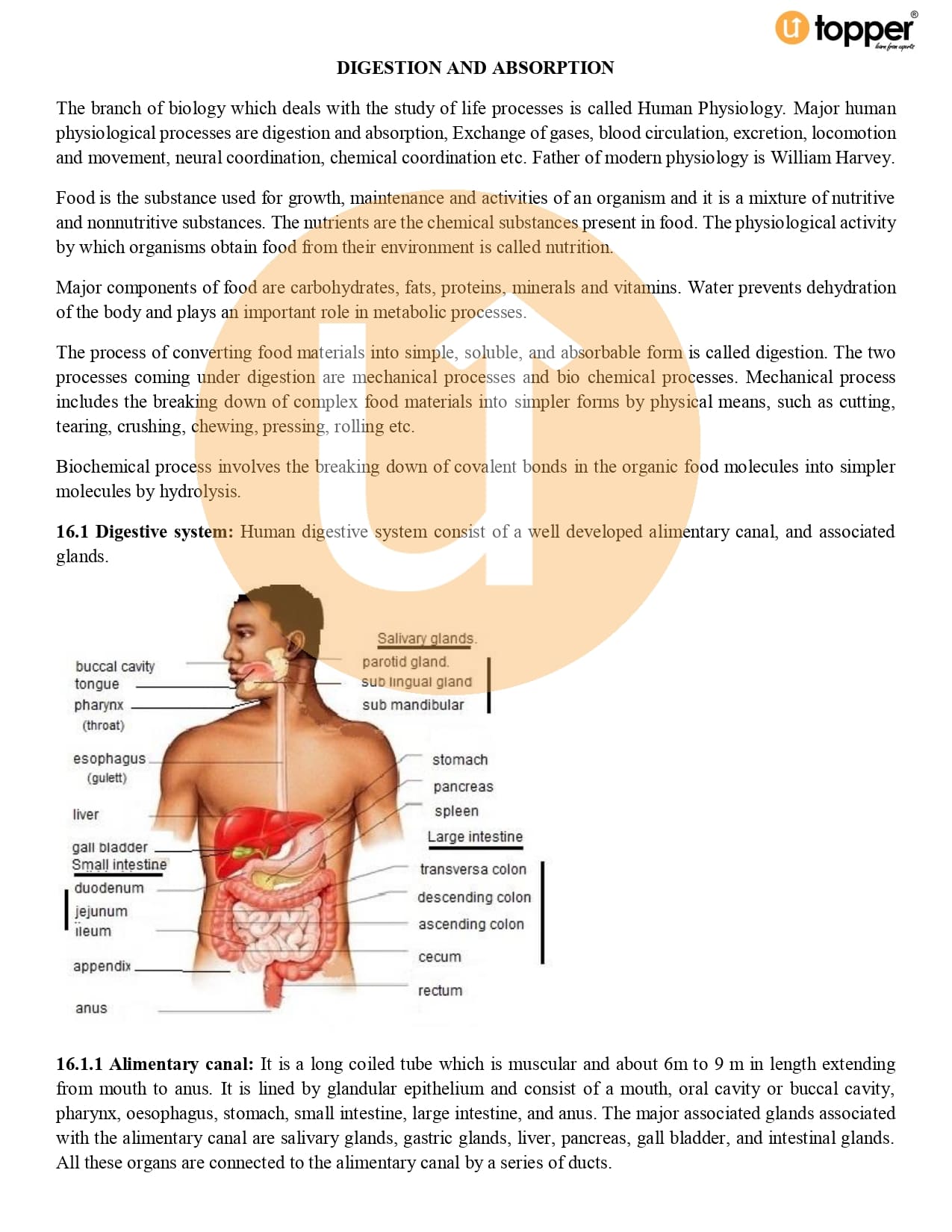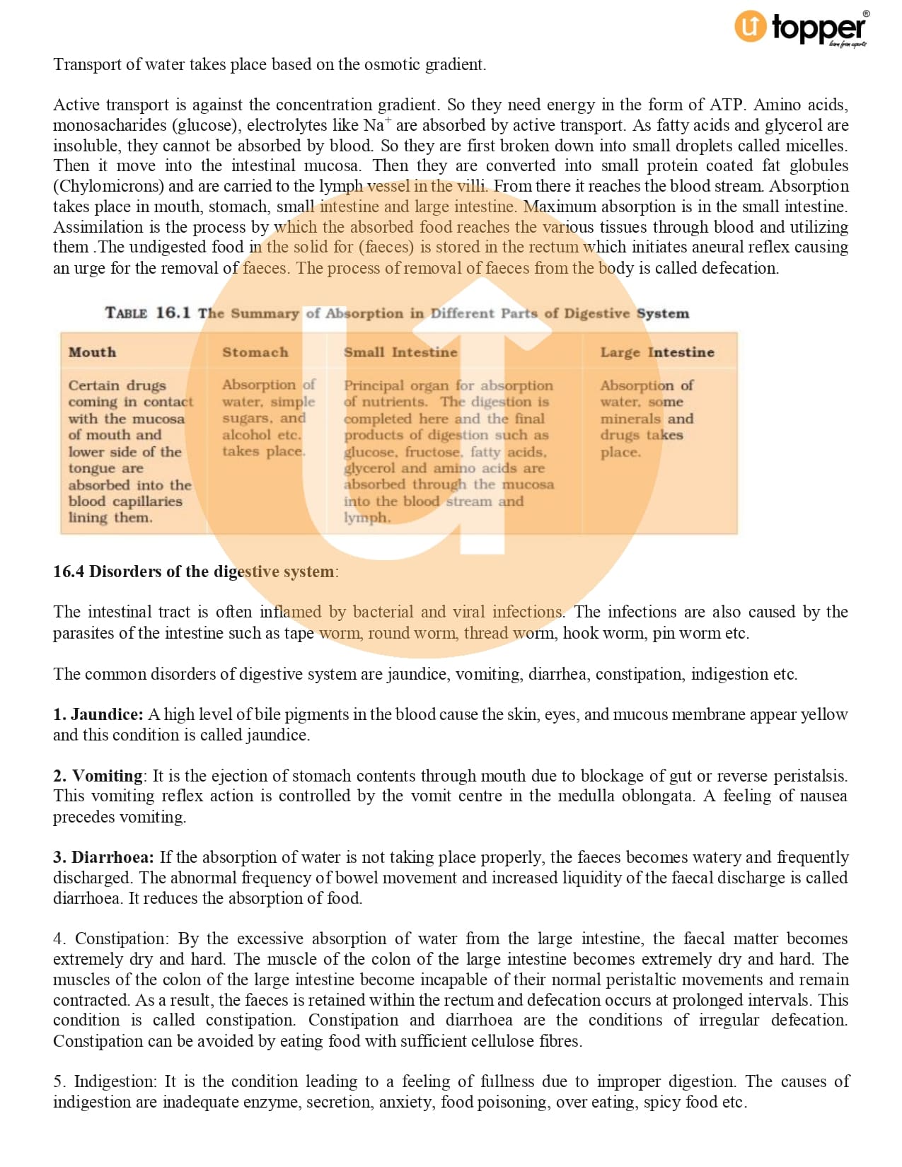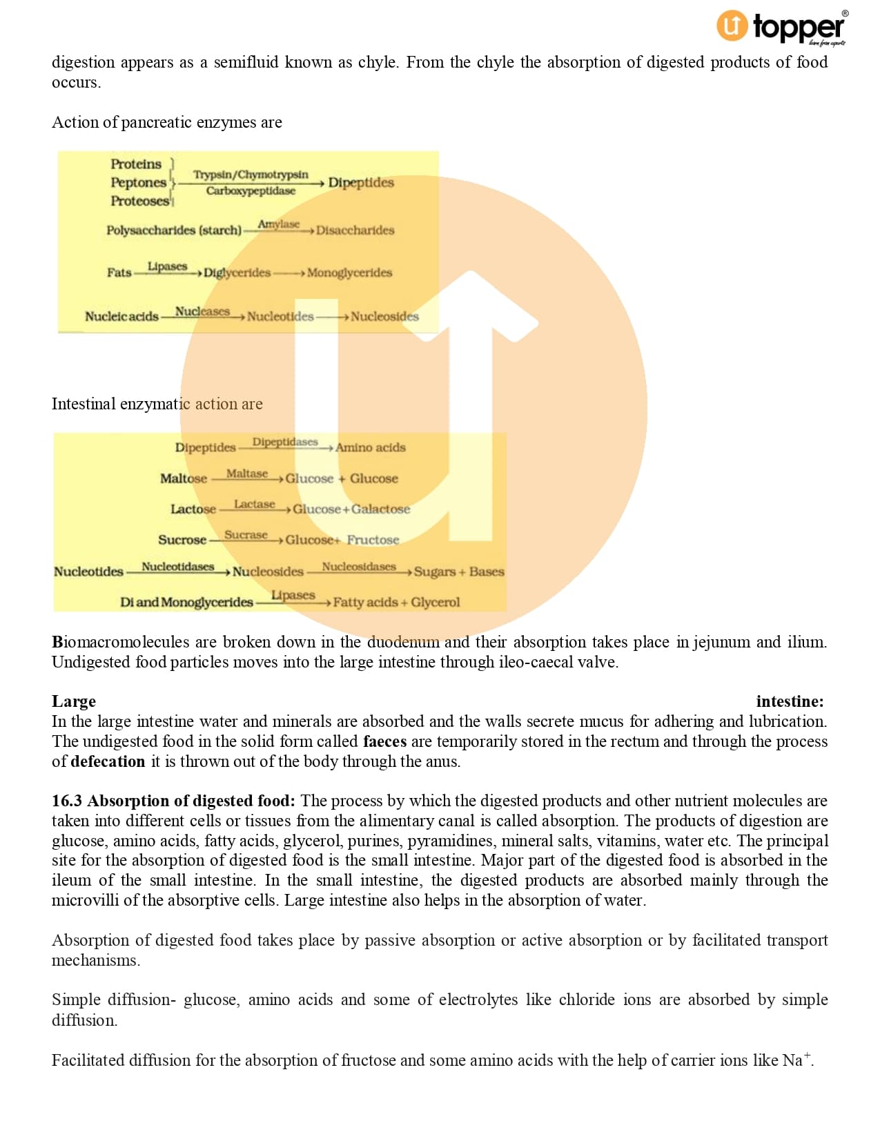 Class 11 Biology CBSE Revision Notes 16 – Digestion and Absorption