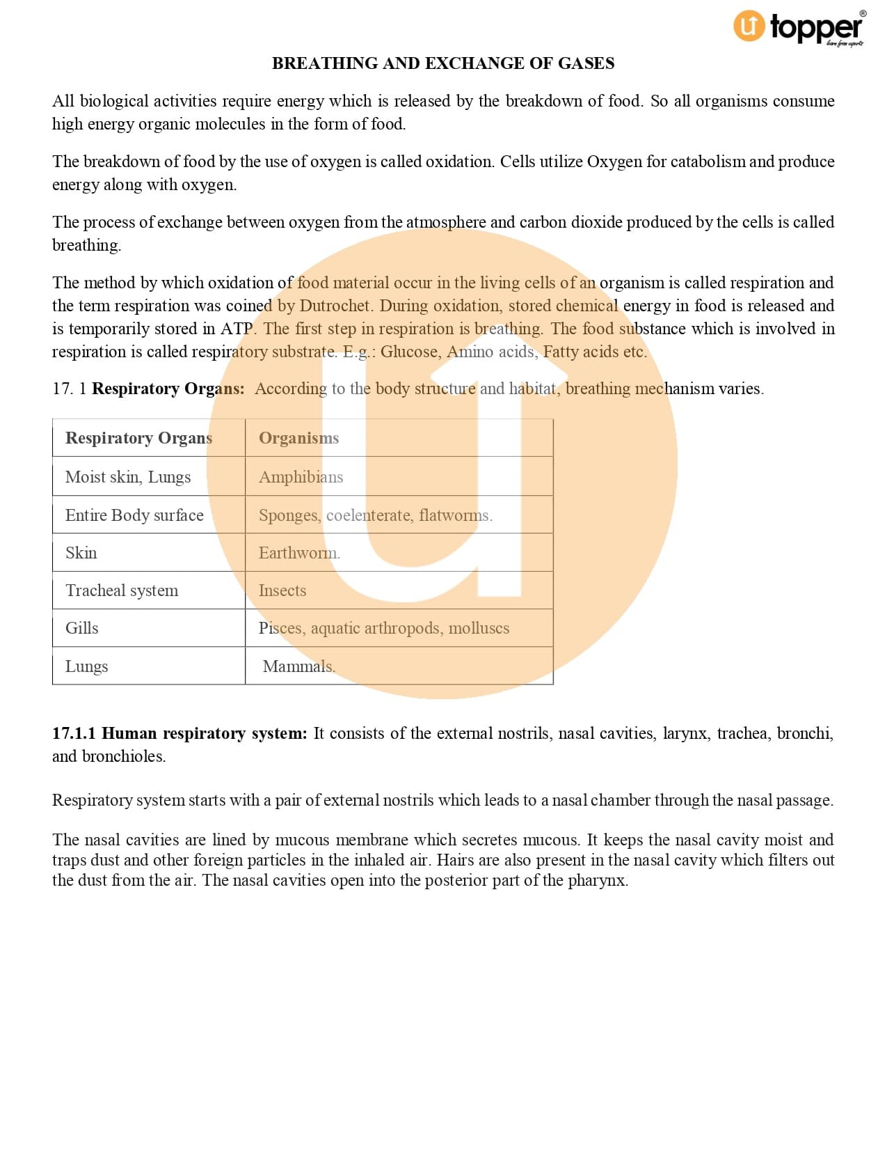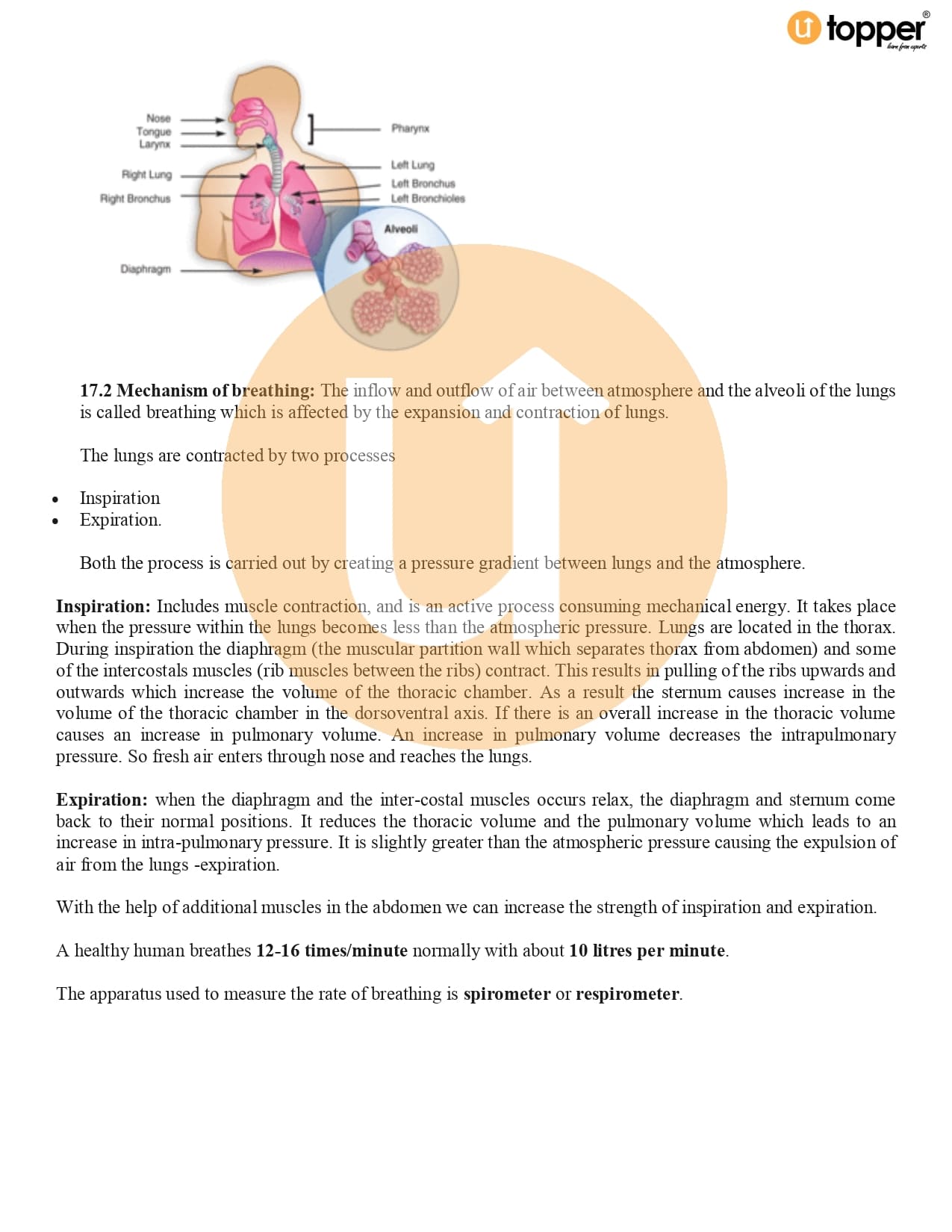 Class 11 Biology Notes Chapter 17 Pdf – Breathing and Exchange of Gases