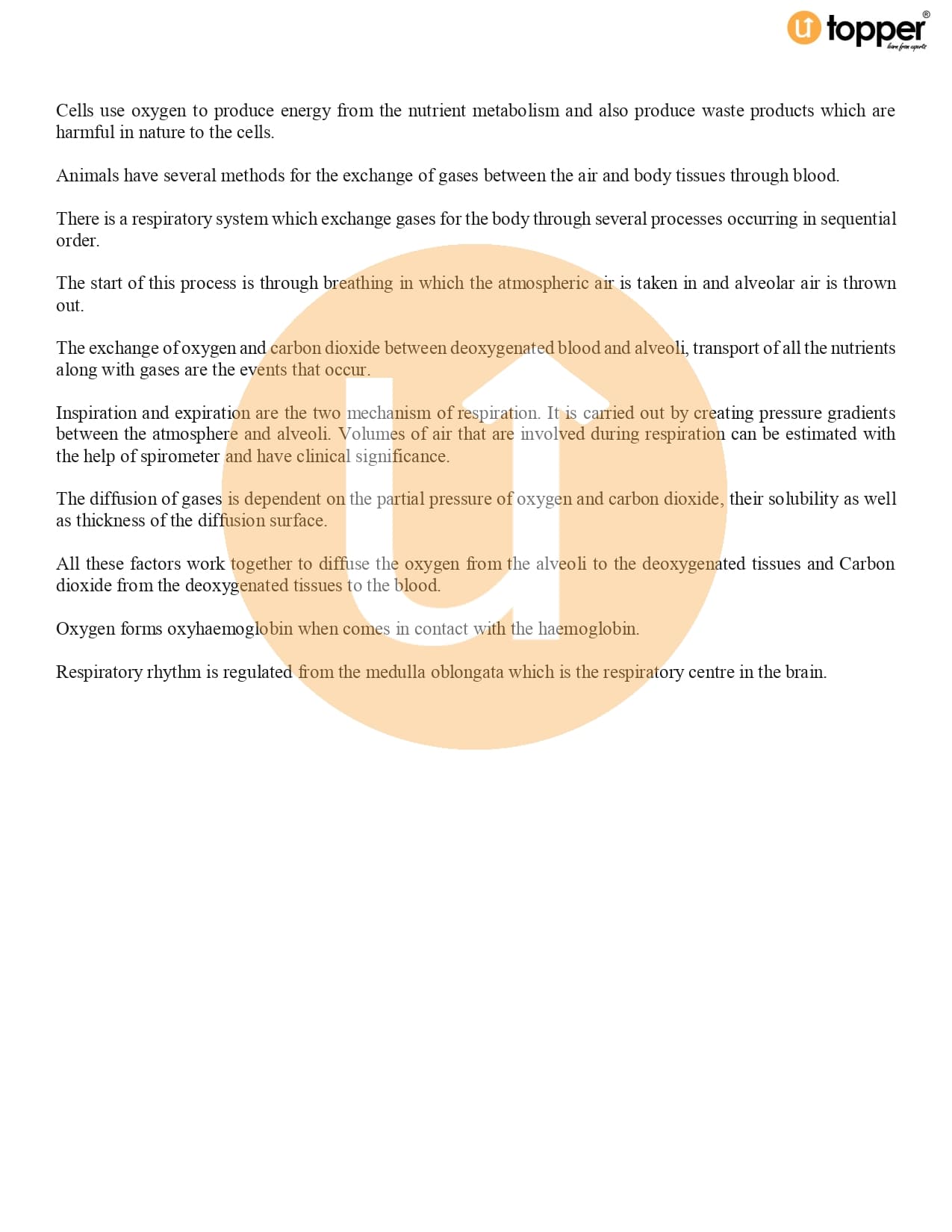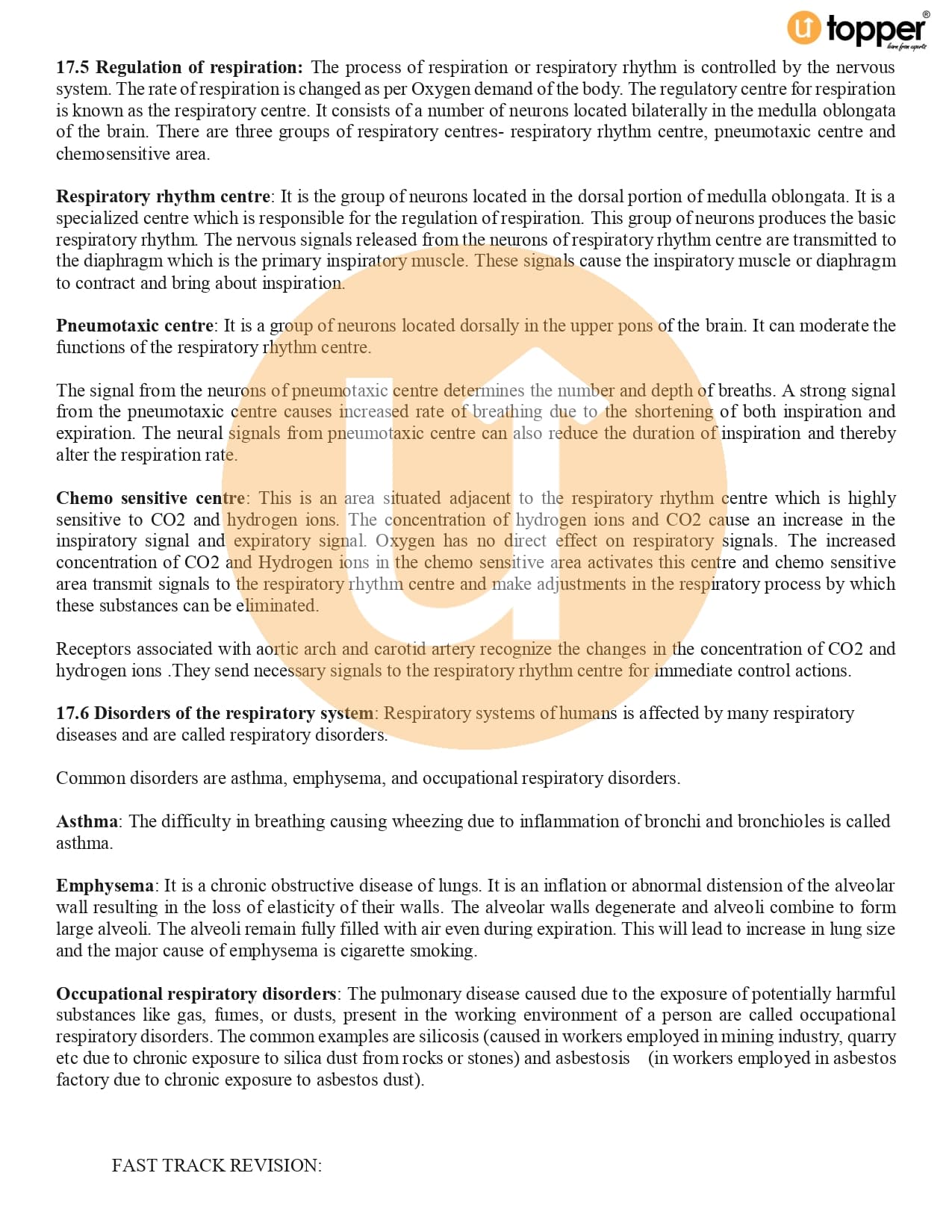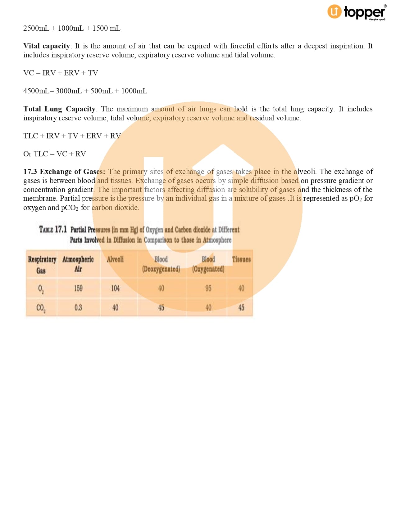 Class 11 Biology CBSE Revision Notes 17 – Breathing and Exchange of Gases