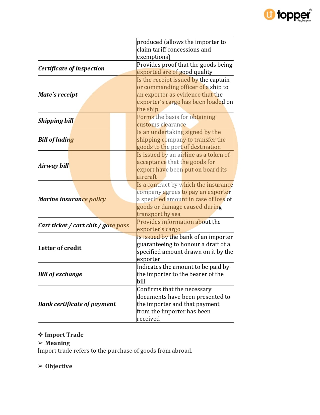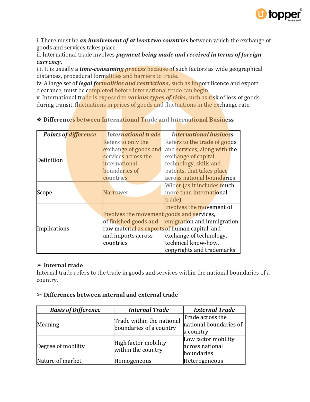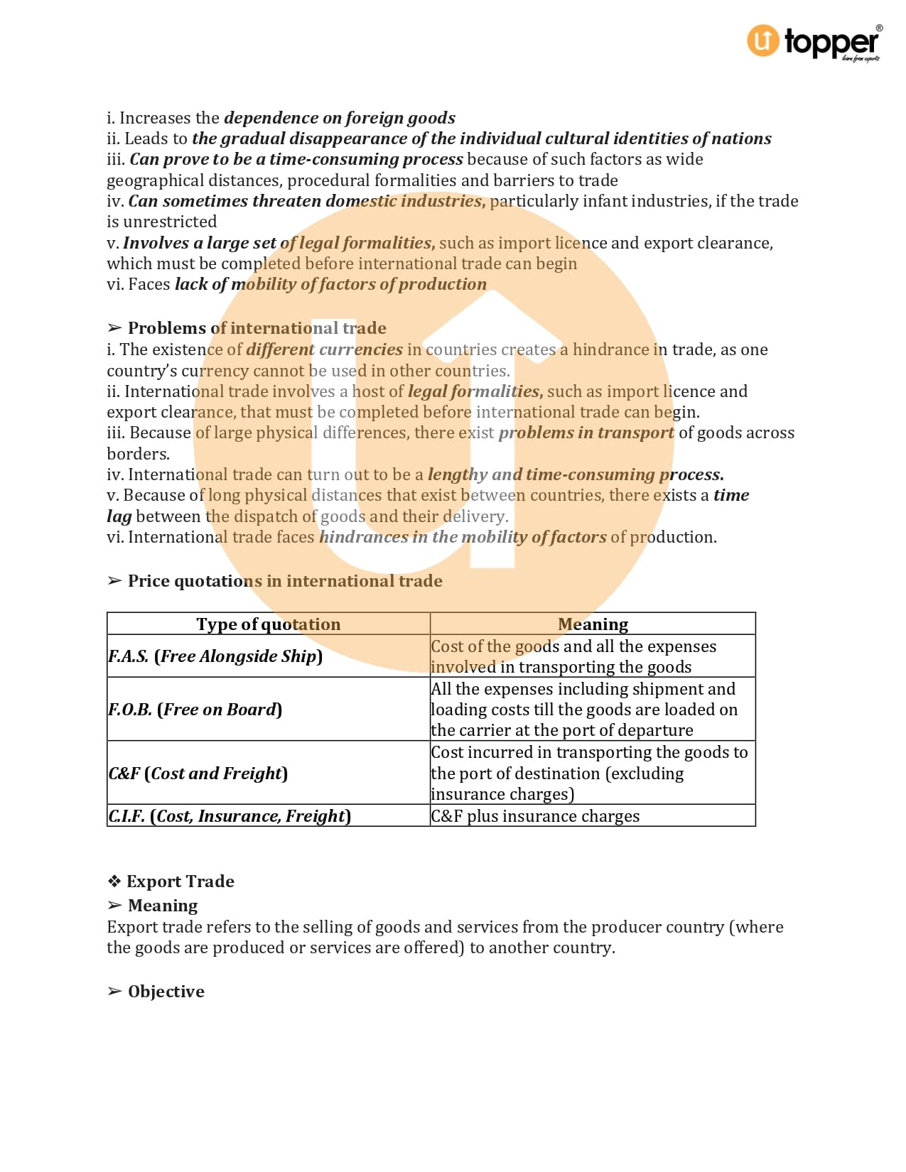 Class 11 Business Studies CBSE Revision Notes 11 – International Business