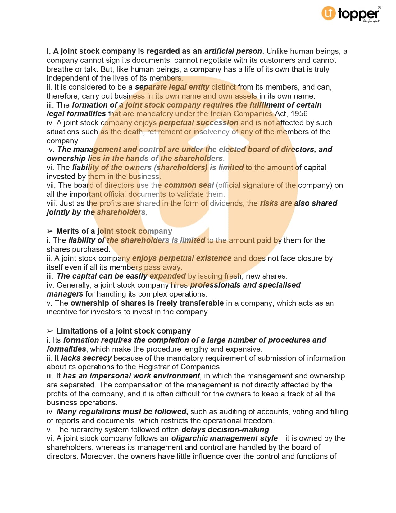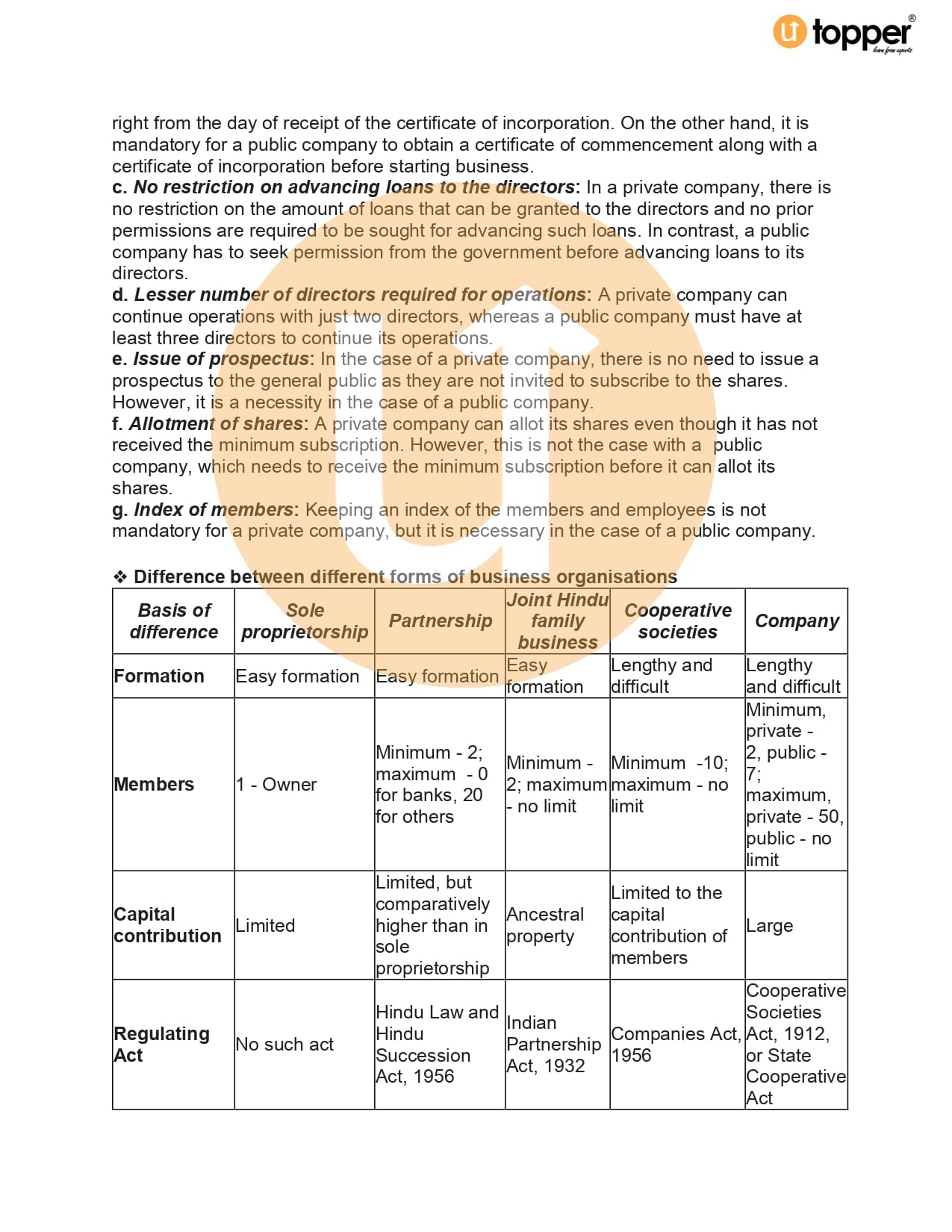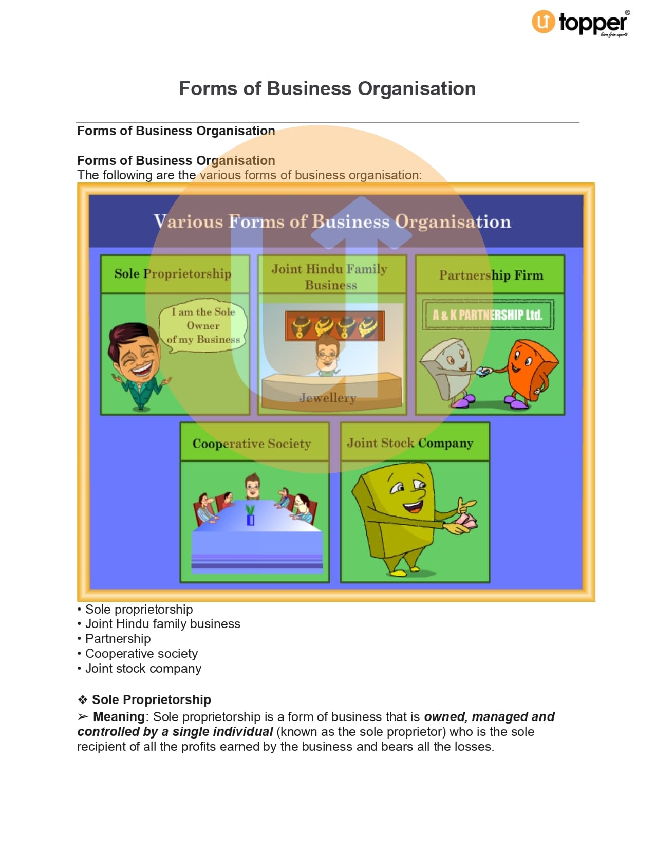 Class 11 Business Studies Notes Chapter 2 Pdf – Forms of Business Organisation