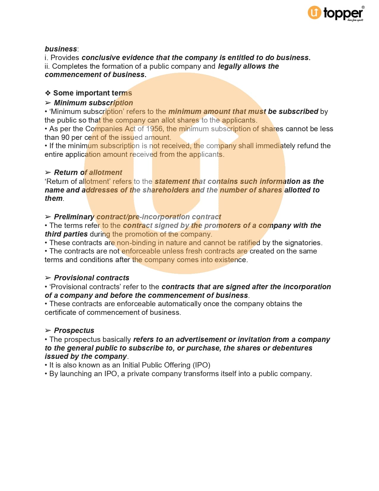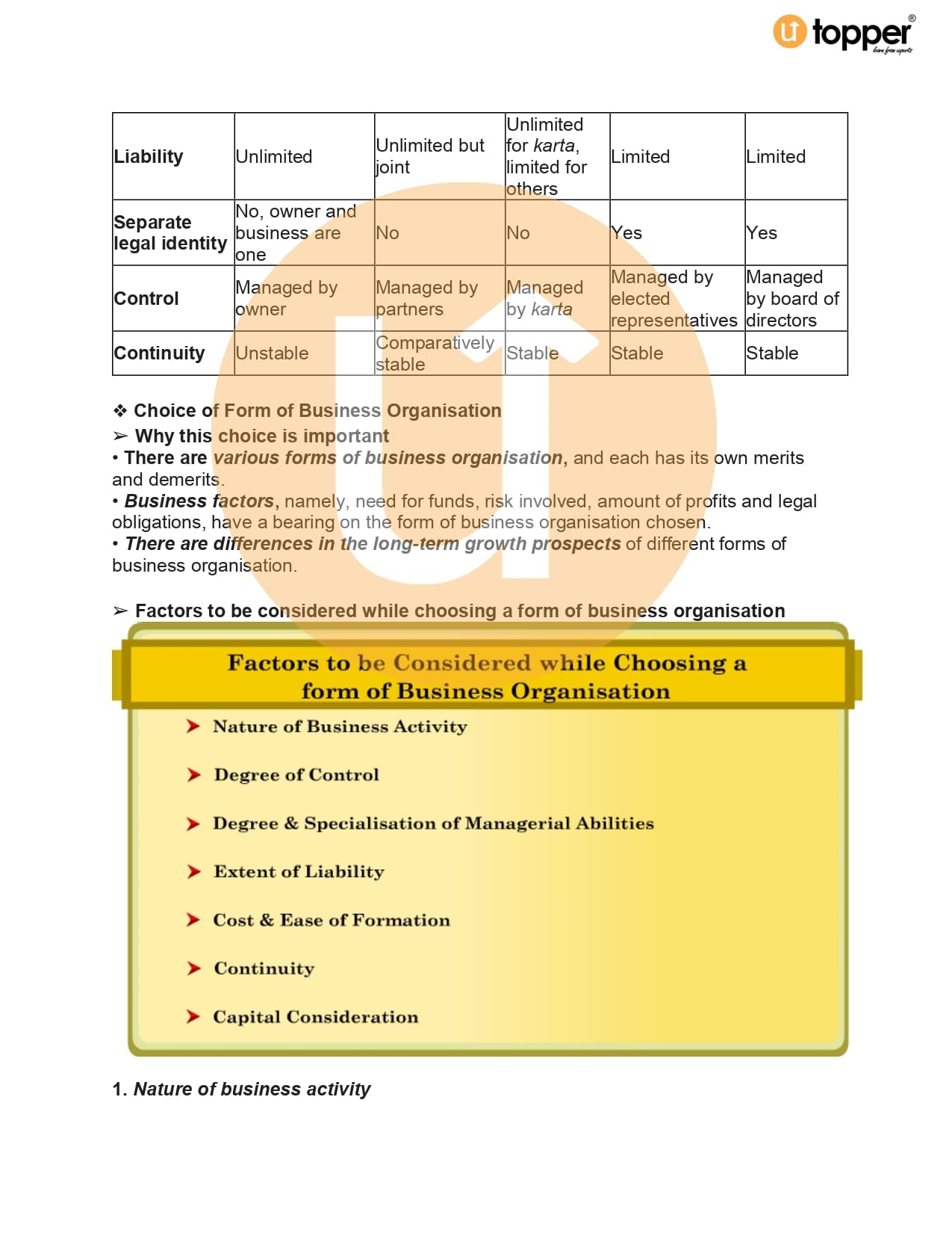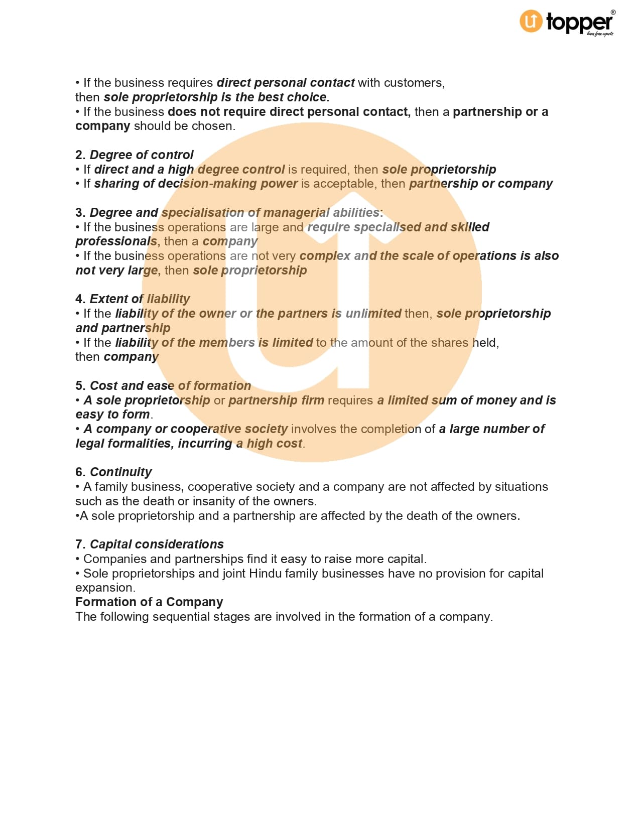 Class 11 Business Studies CBSE Revision Notes 2 – Forms of Business Organisation