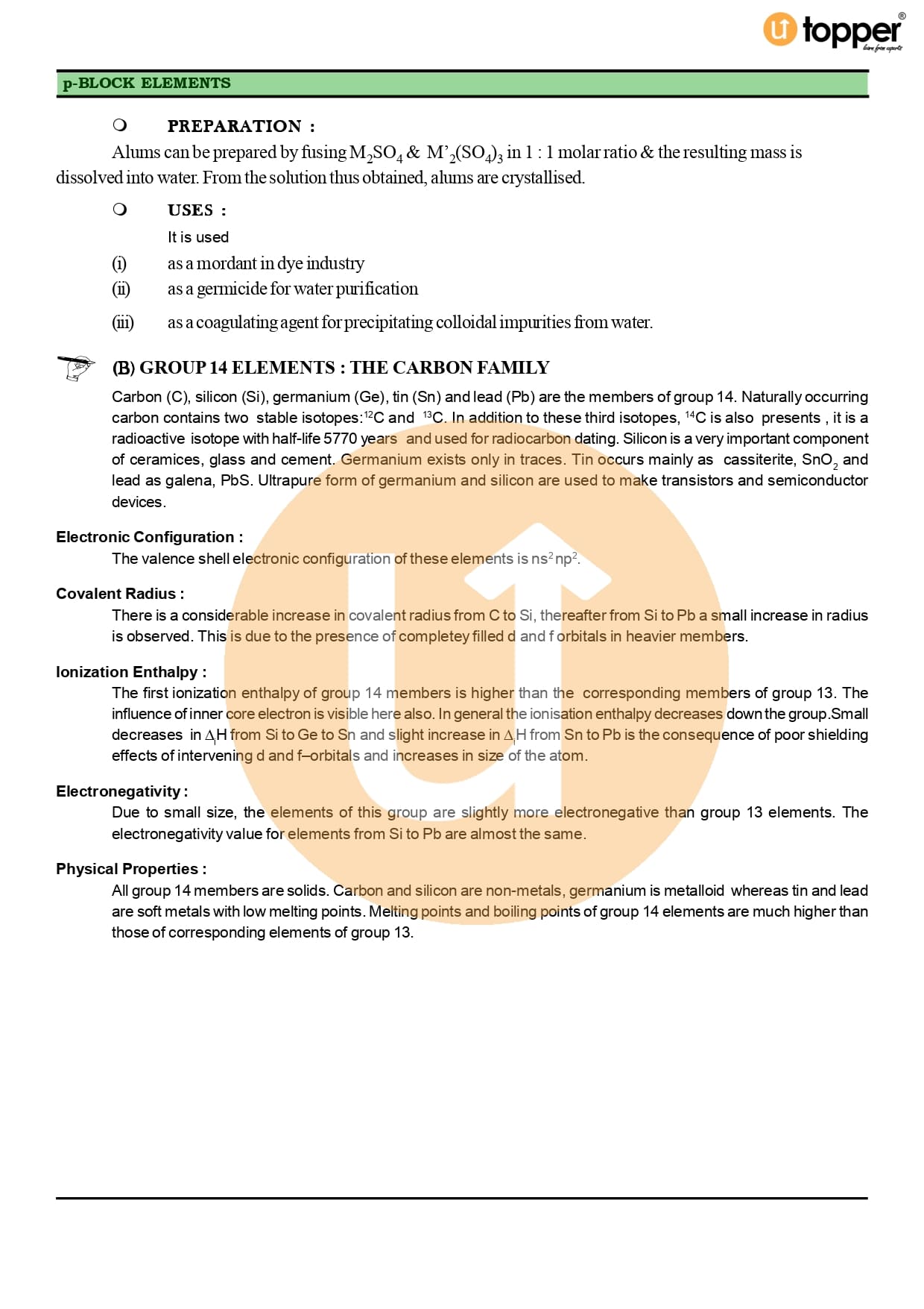 Class 11 Chemistry Notes Chapter 11 Pdf – The P-Block Elements