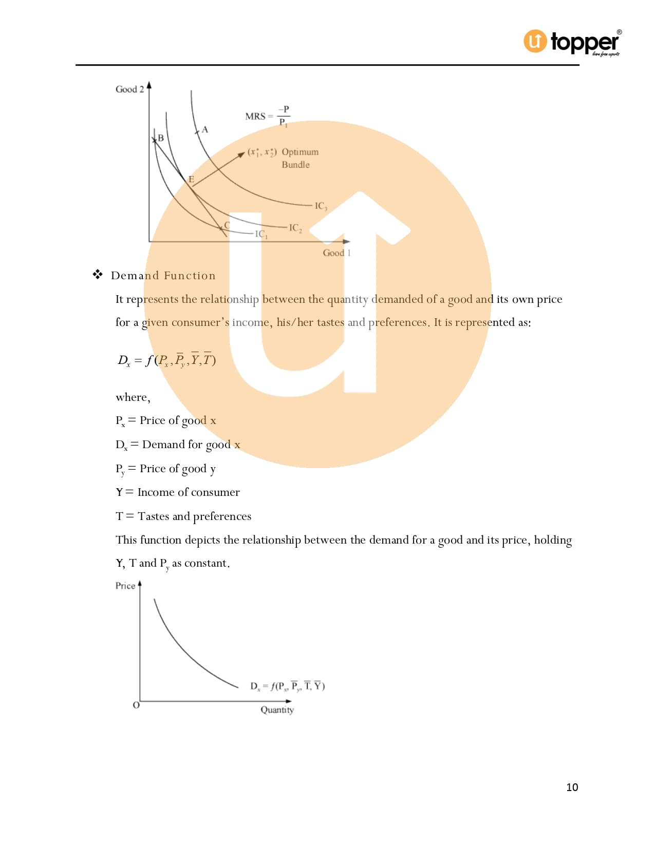 Class 11 Economics CBSE Revision Notes 2 – Theory of Consumer Behaviour
