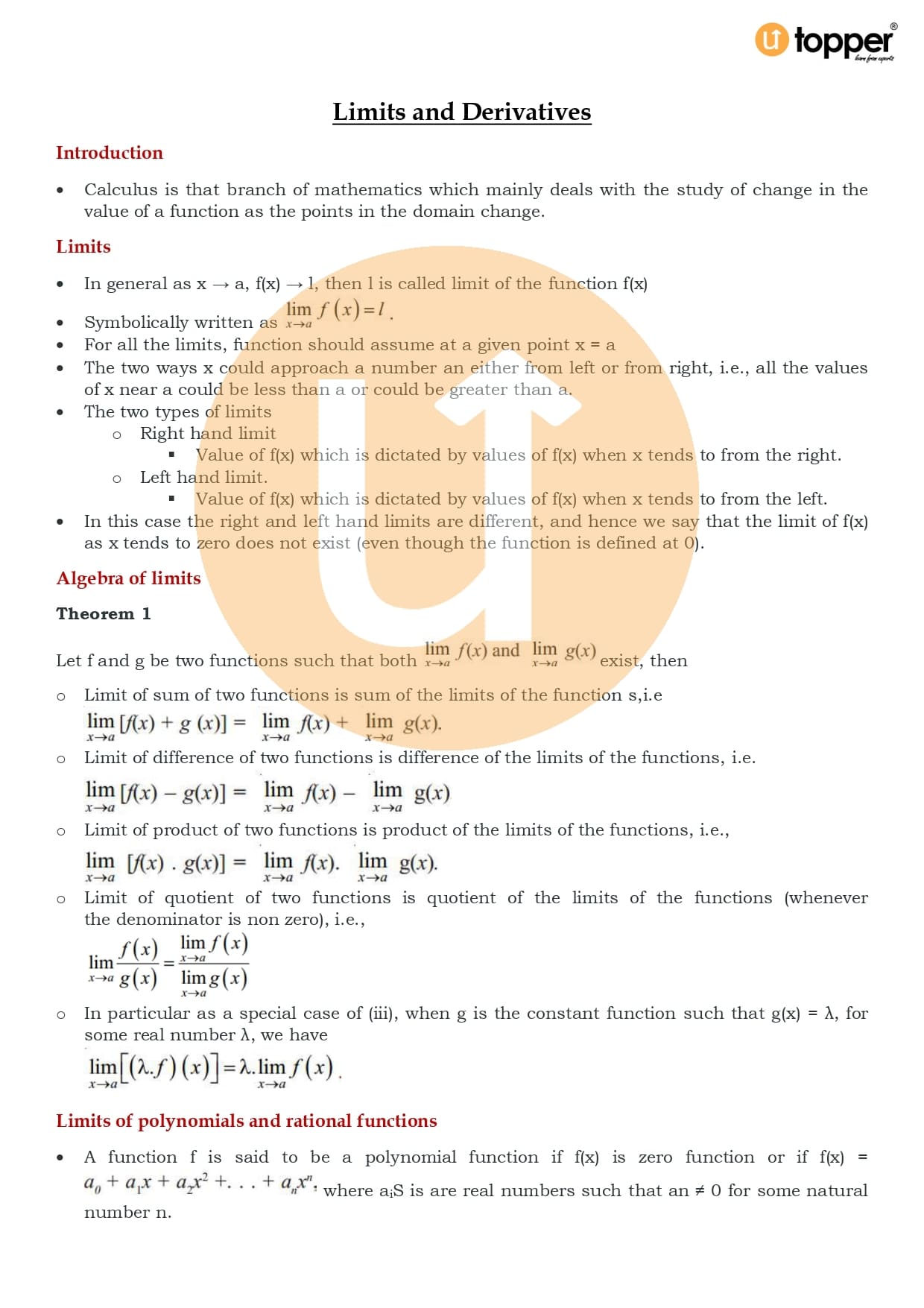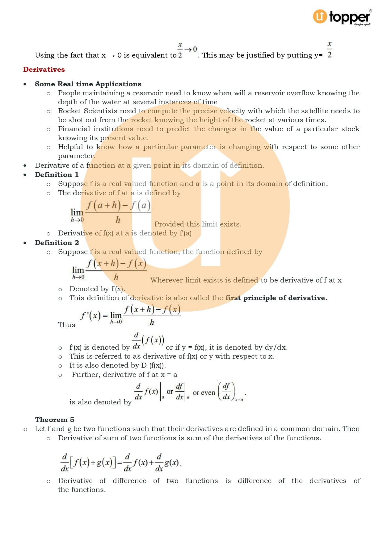 Class 11 Maths Notes Chapter 13 Pdf – Limits and Derivatives