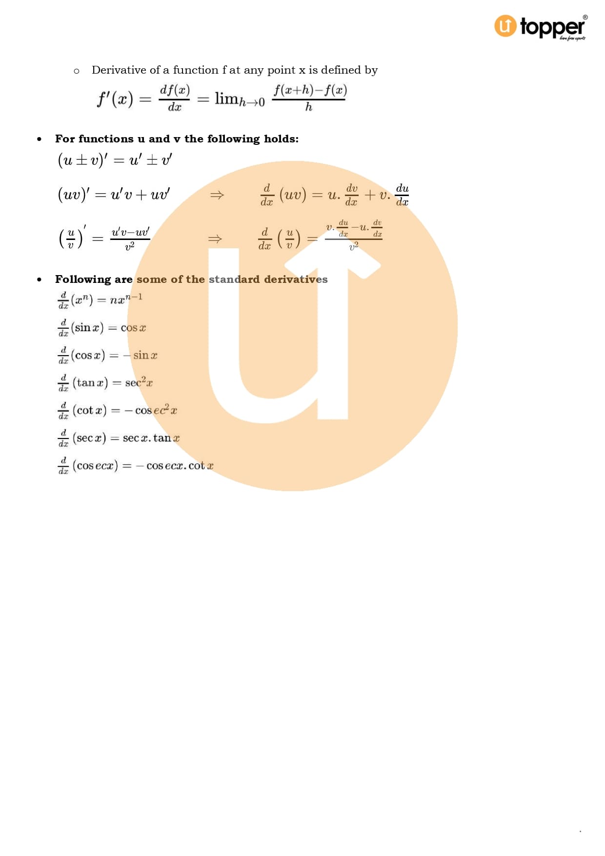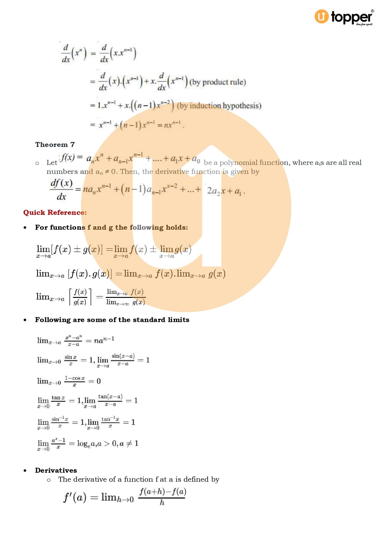 Class 11 Maths CBSE Revision Notes 13 – Limits and Derivatives