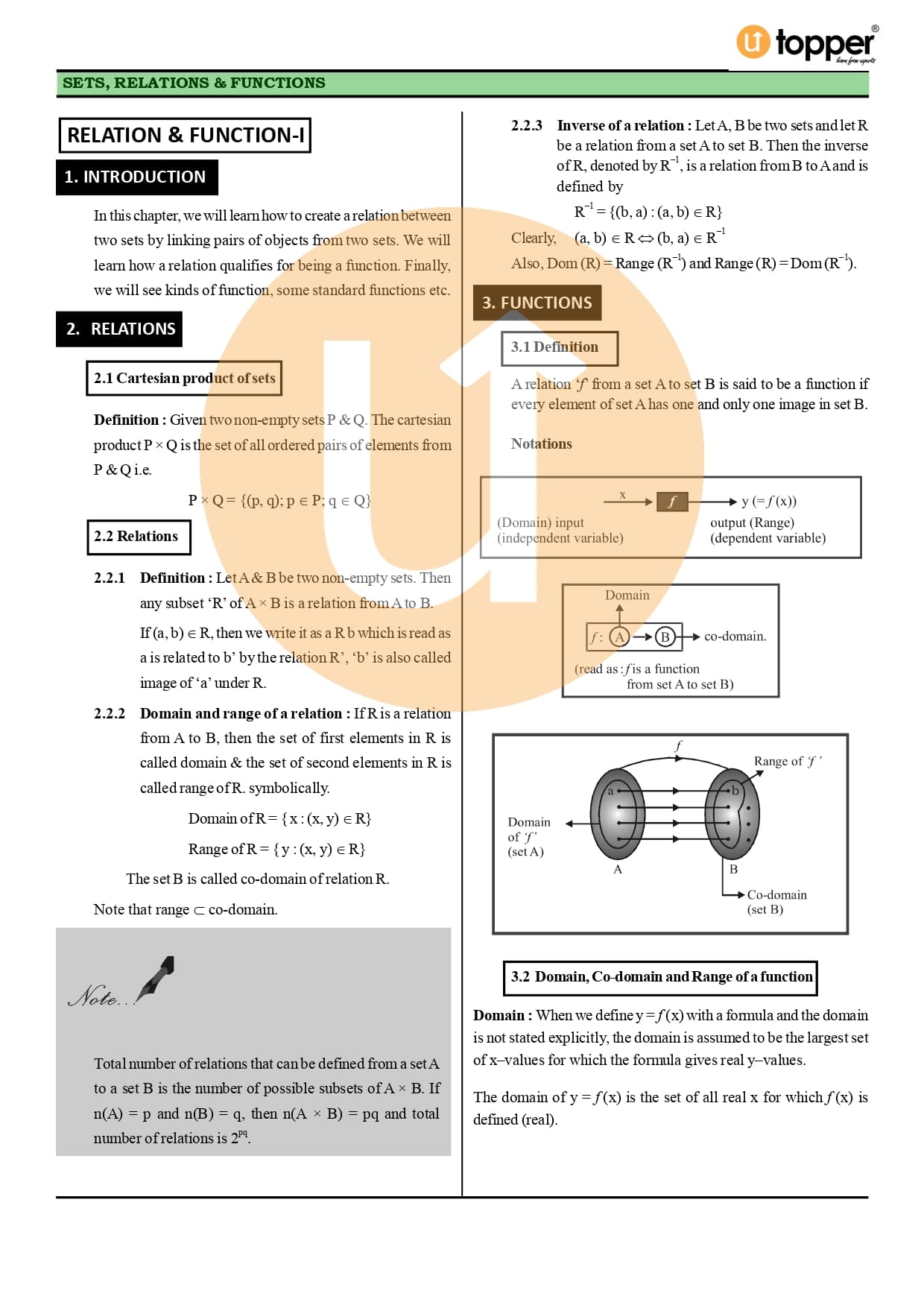 Class 11 Maths CBSE Revision Notes 2 – Relations and Functions