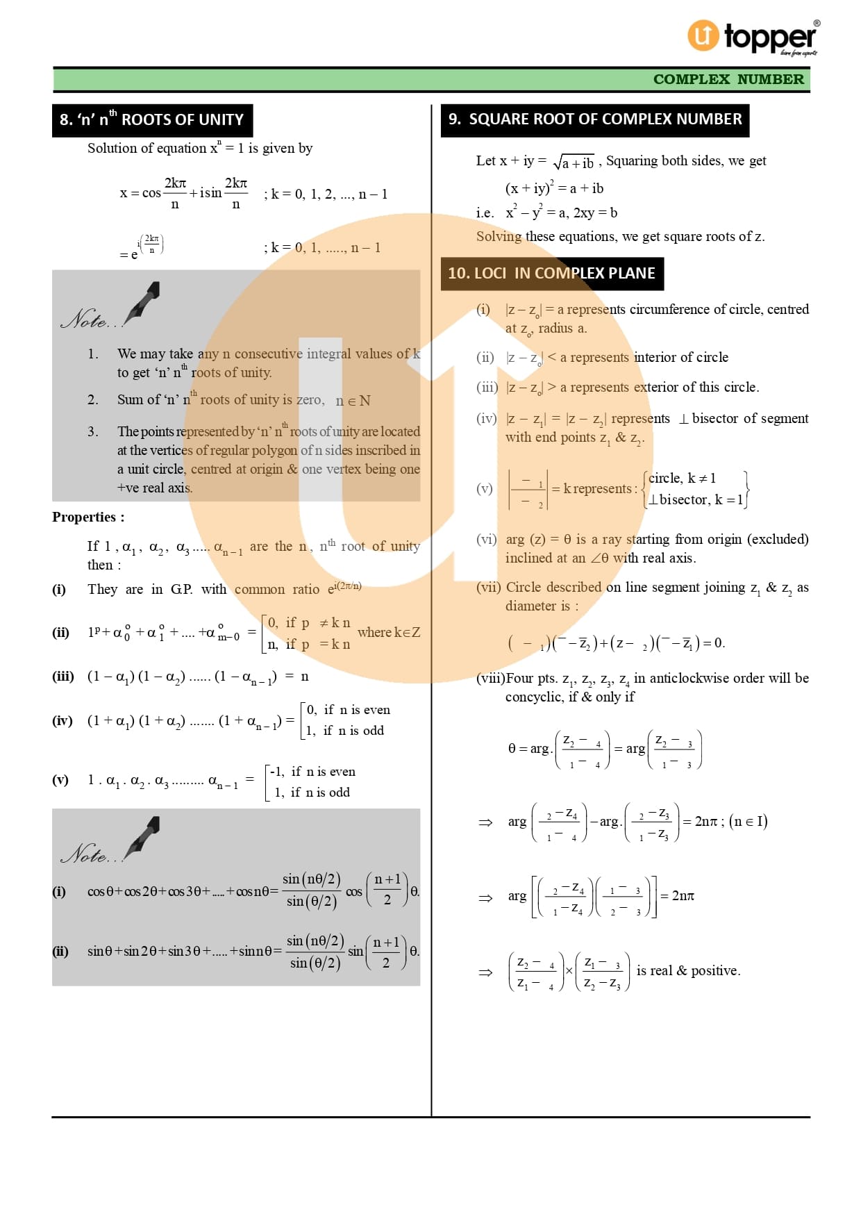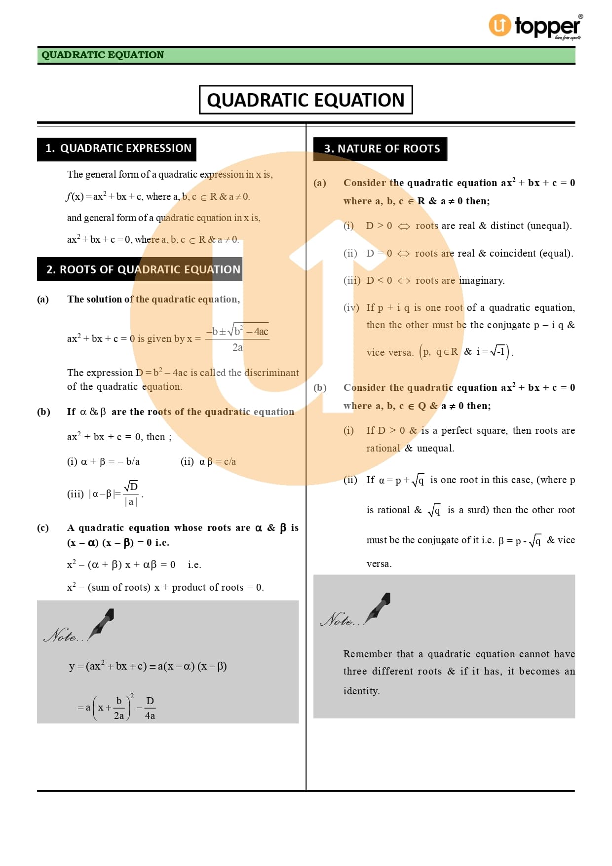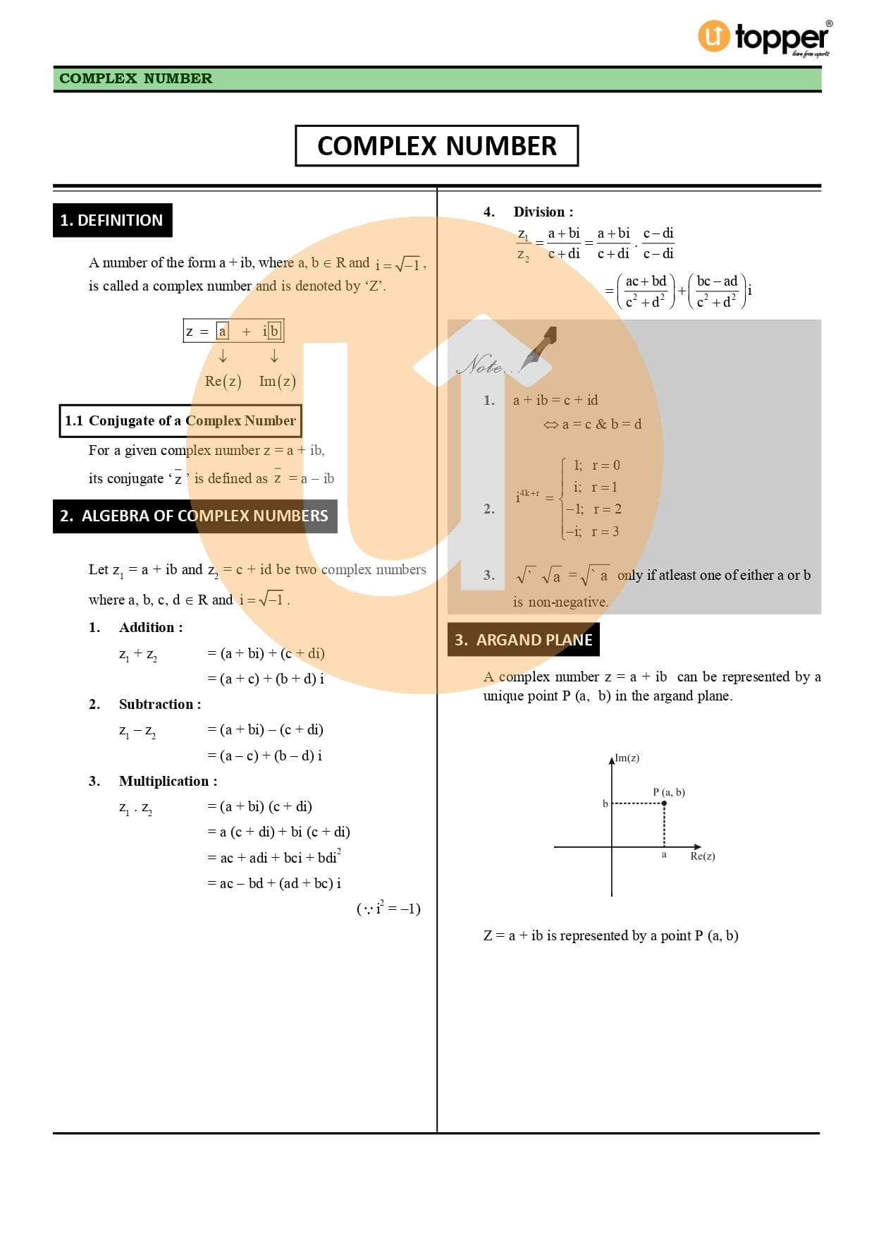 Class 11 Maths CBSE Revision Notes 5 – Complex Numbers and Quadratic Equations