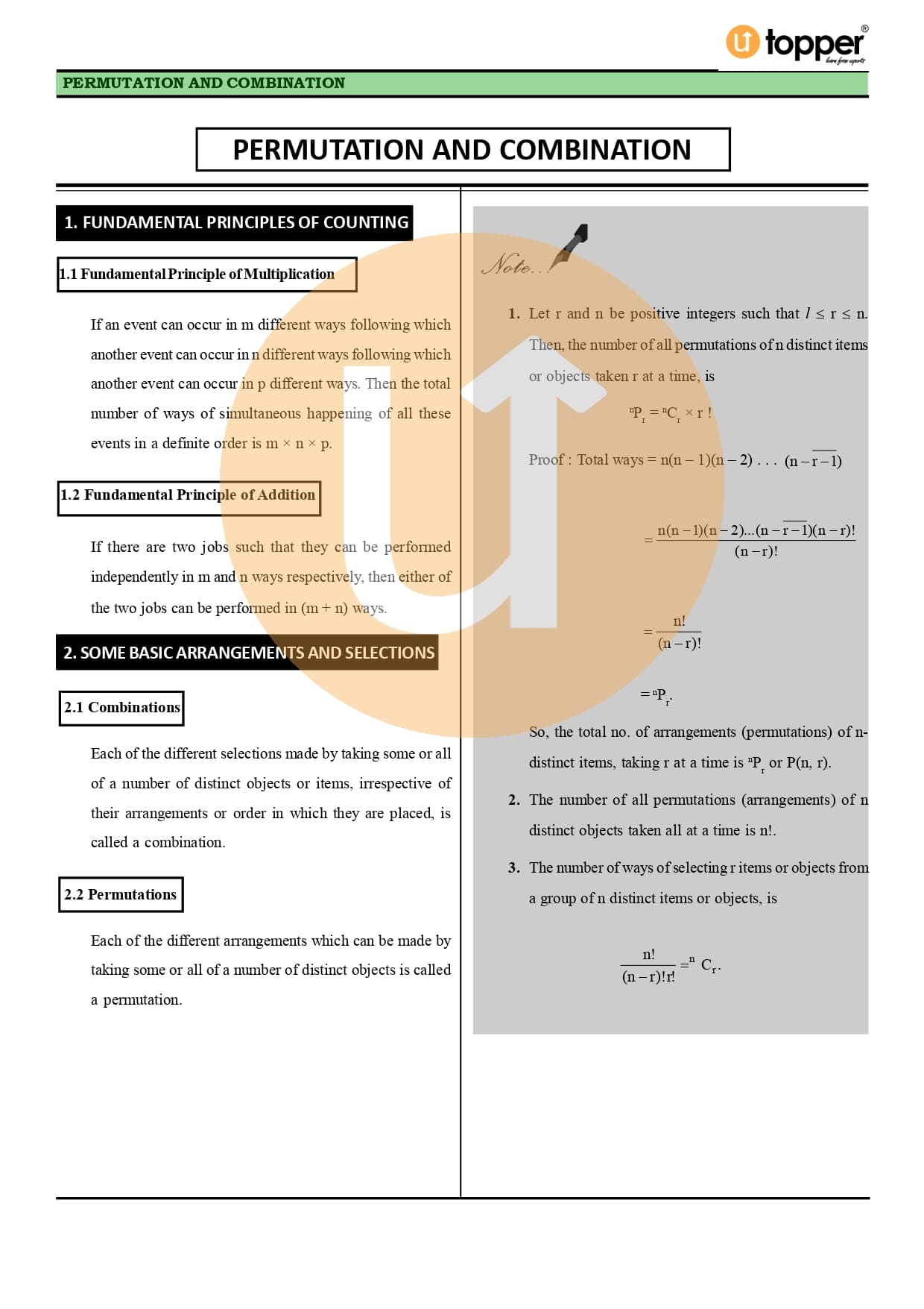 Class 11 Maths Notes Chapter 7 Pdf – Permutations and Combinations